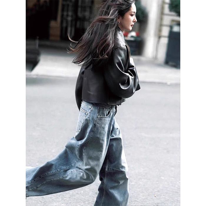 2025 Новый осенне - зимний синий Ян Стен с высокой талией и худыми джинсами с широкими ногами мачете и большими брюками
