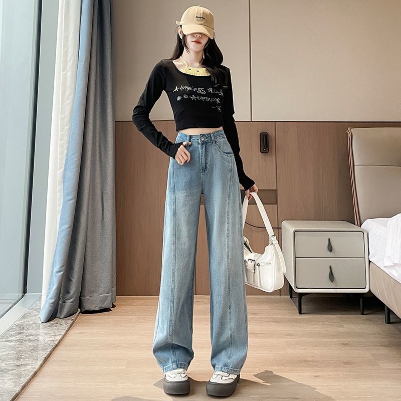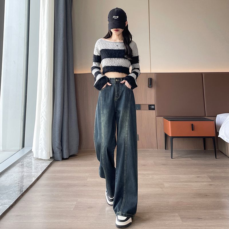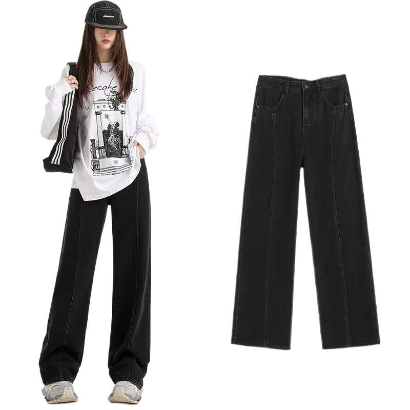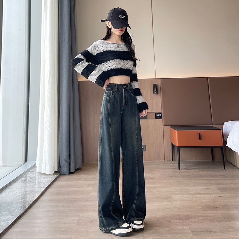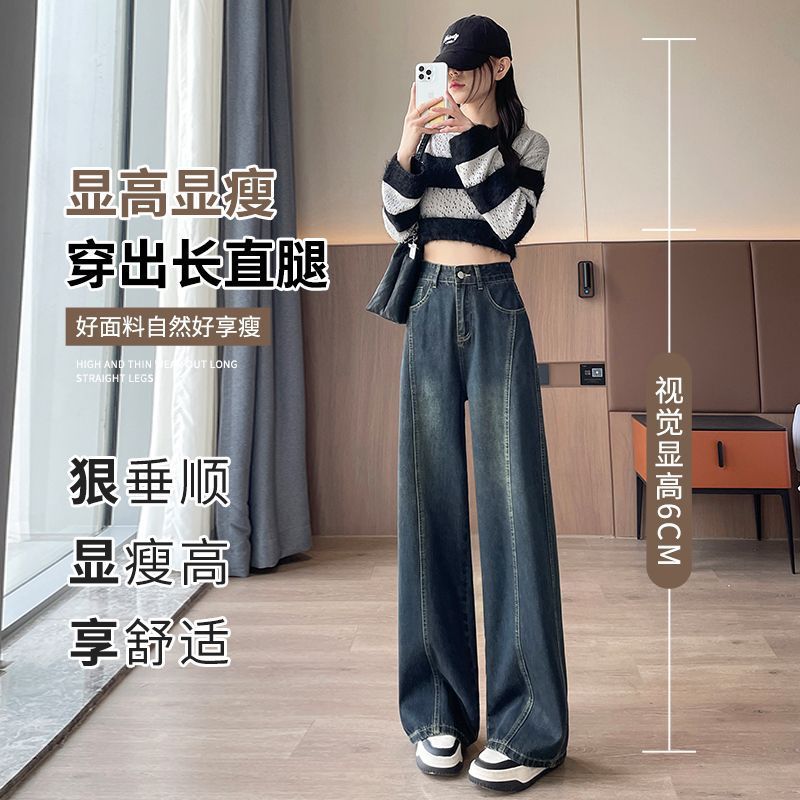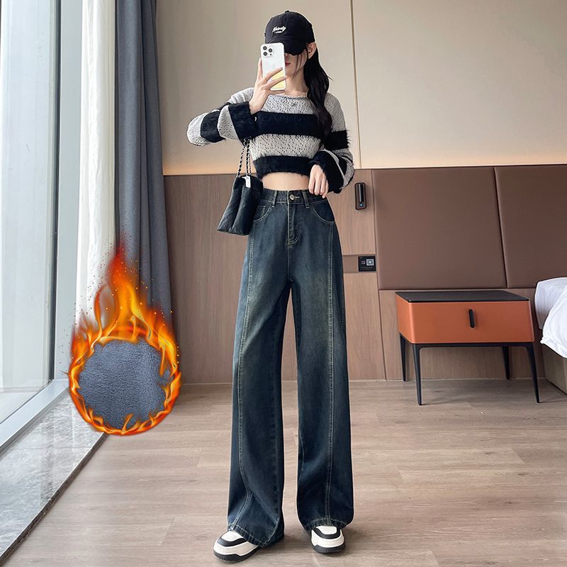 Thick and flannel wide leg jeans for women in autumn and winter 2025, popular pear shaped figure, high waist, narrow version wide leg pants