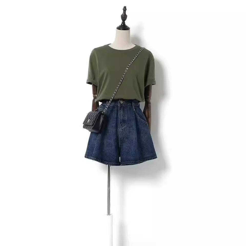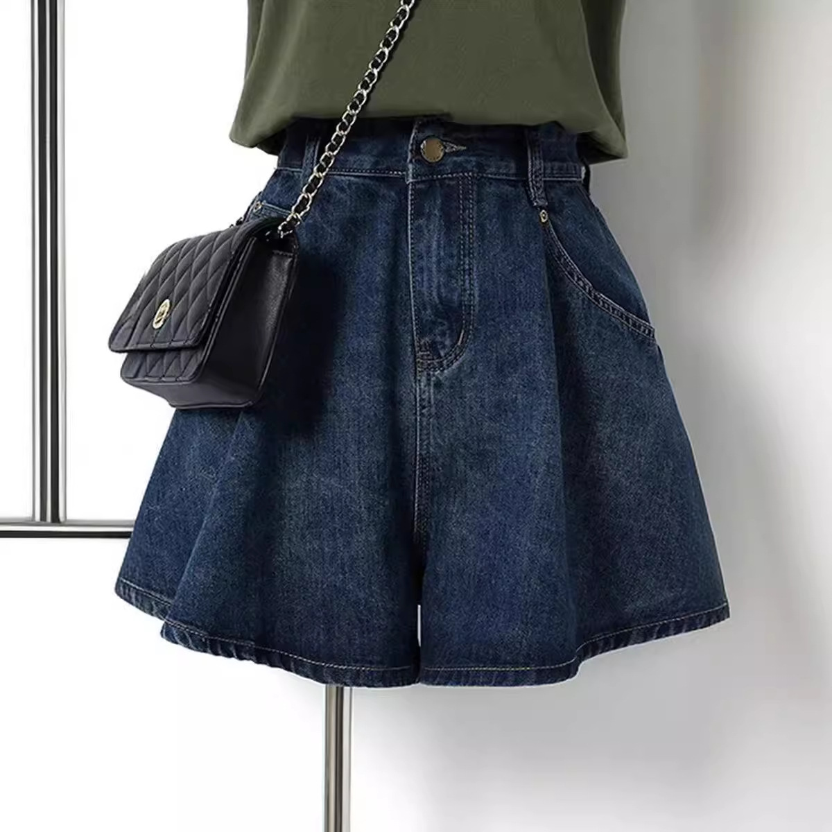 Denim shorts, wide leg shorts, summer new women's clothing, slimming temperament, Hong Kong style, loose and trendy, versatile, high waisted women