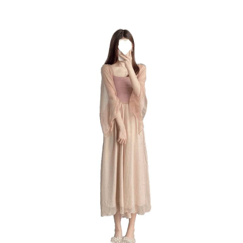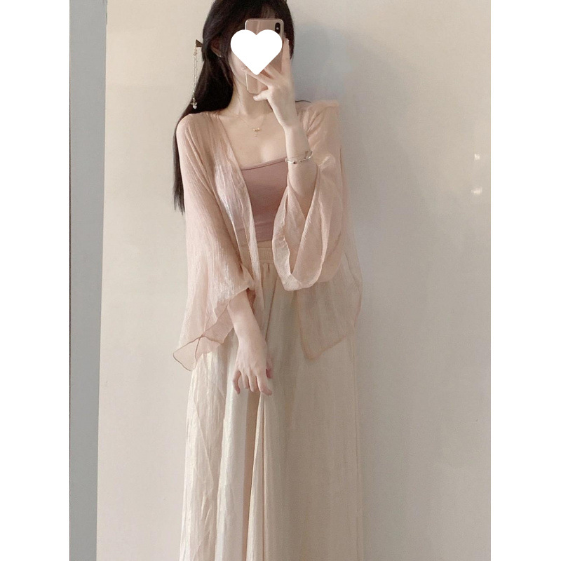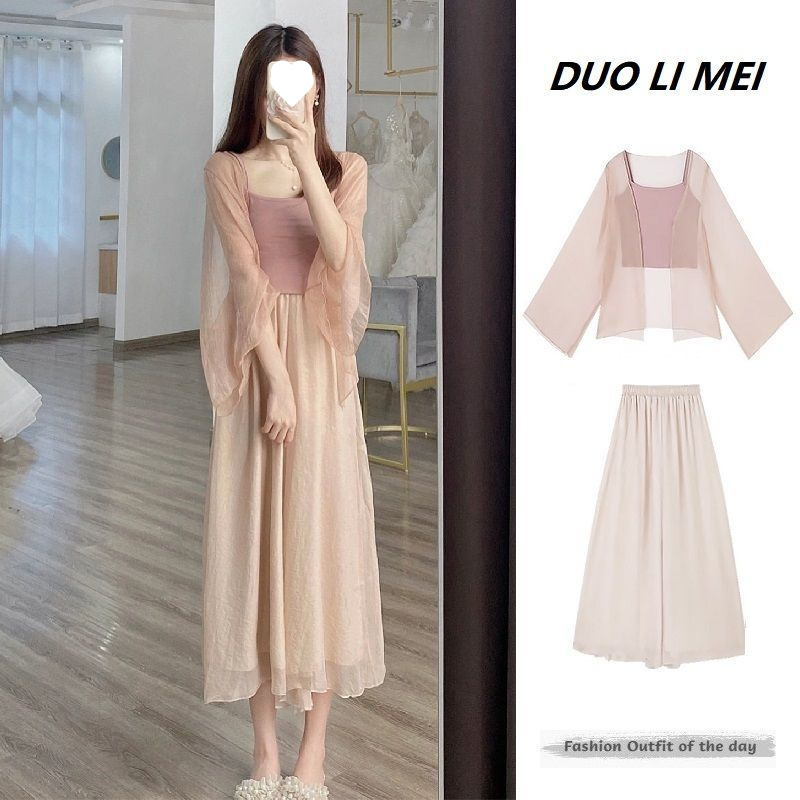Small stature, high-end summer clothing, gentle summer three piece set, Chinese style, Chinese style, women's clothing, sticky style, salty Hanfu, sunscreen set