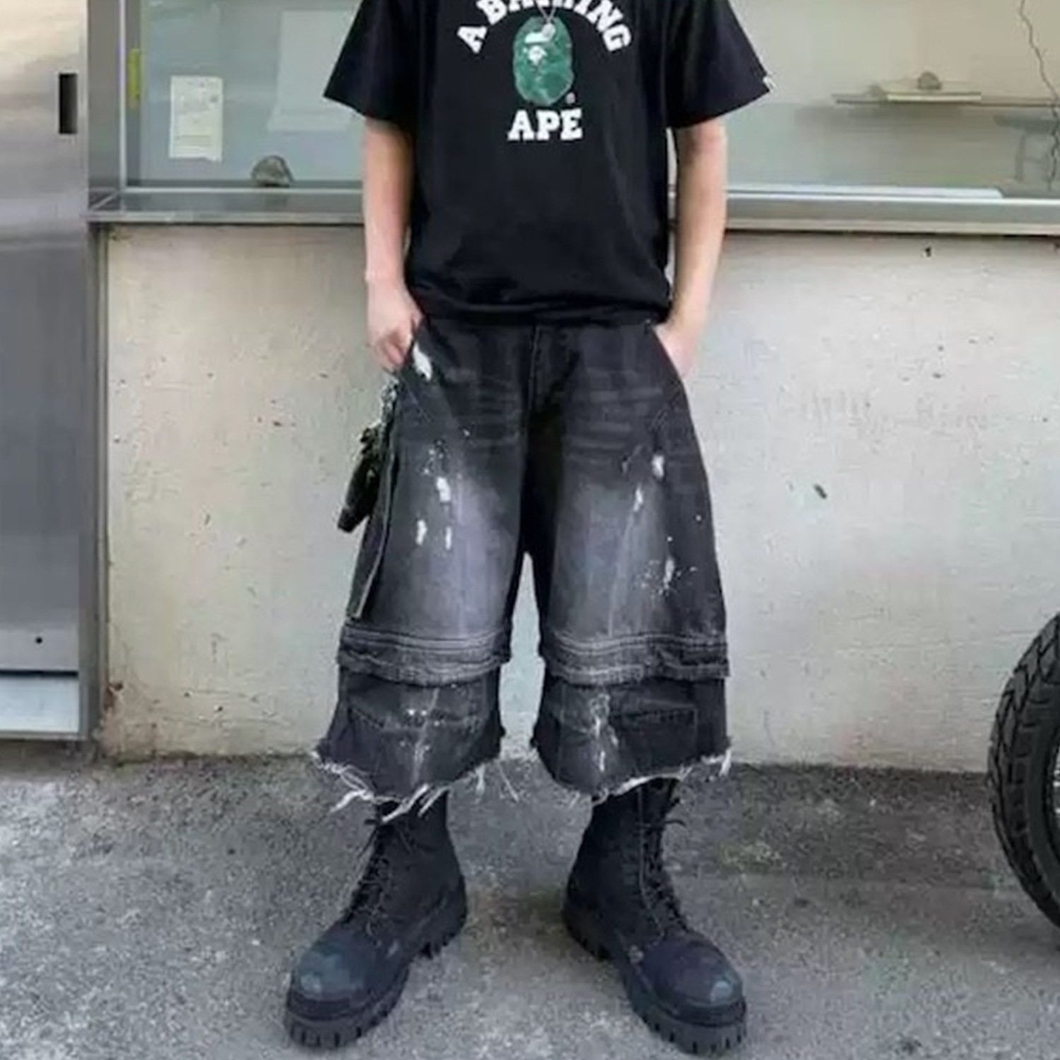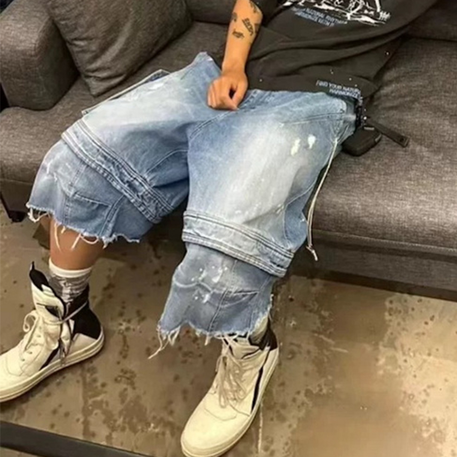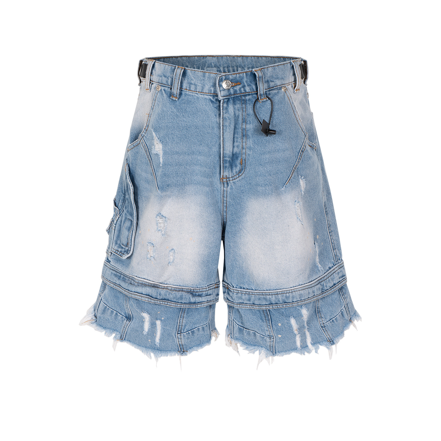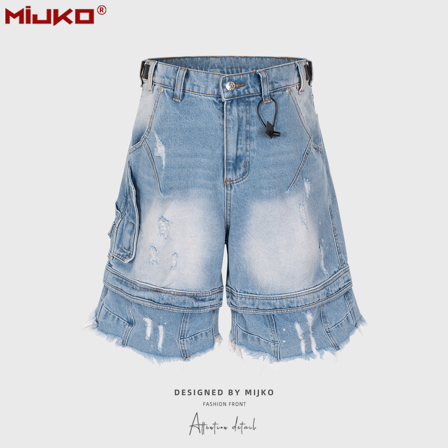 MIJKO Men's and Women's Spring/Summer New Product, Tassel Paratrooper, Seven Point Jeans, Men's and Women's Same Style, Cat Beard, Shattered, Deconstructed, Collapsed