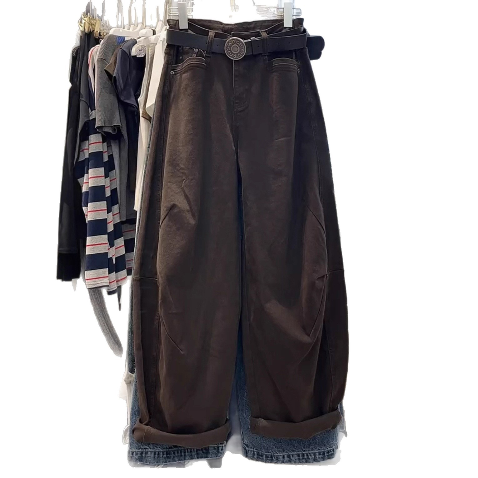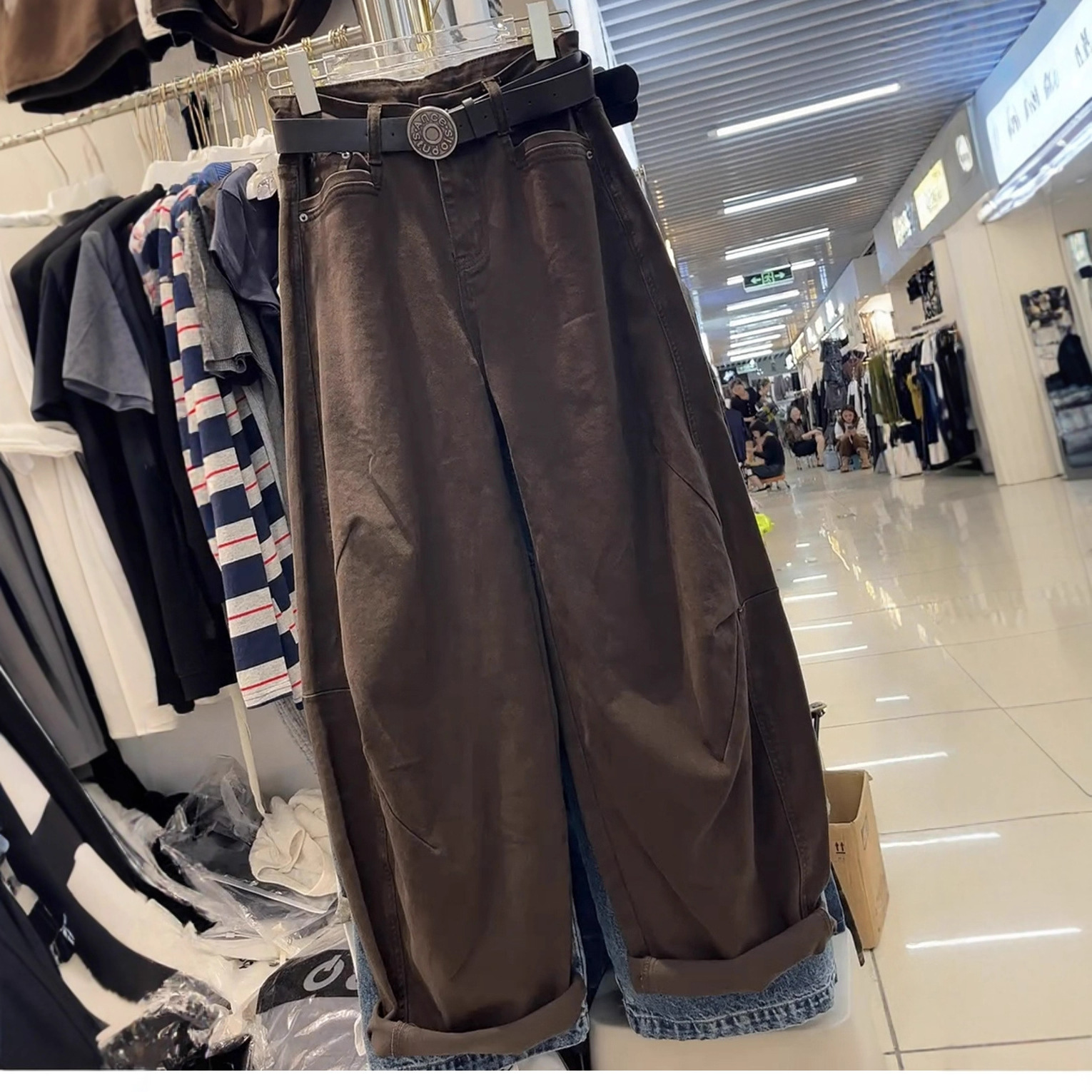 2025 autumn and winter new high waisted retro plus size curved knife jeans women's fat mm Korean version slimming loose wide leg pants