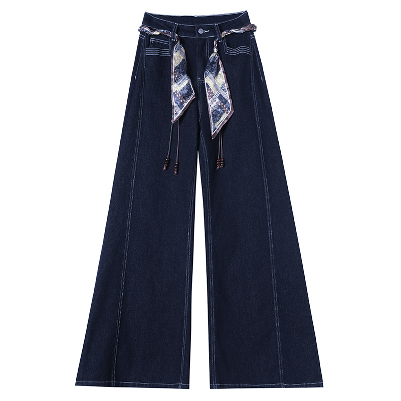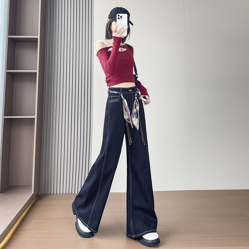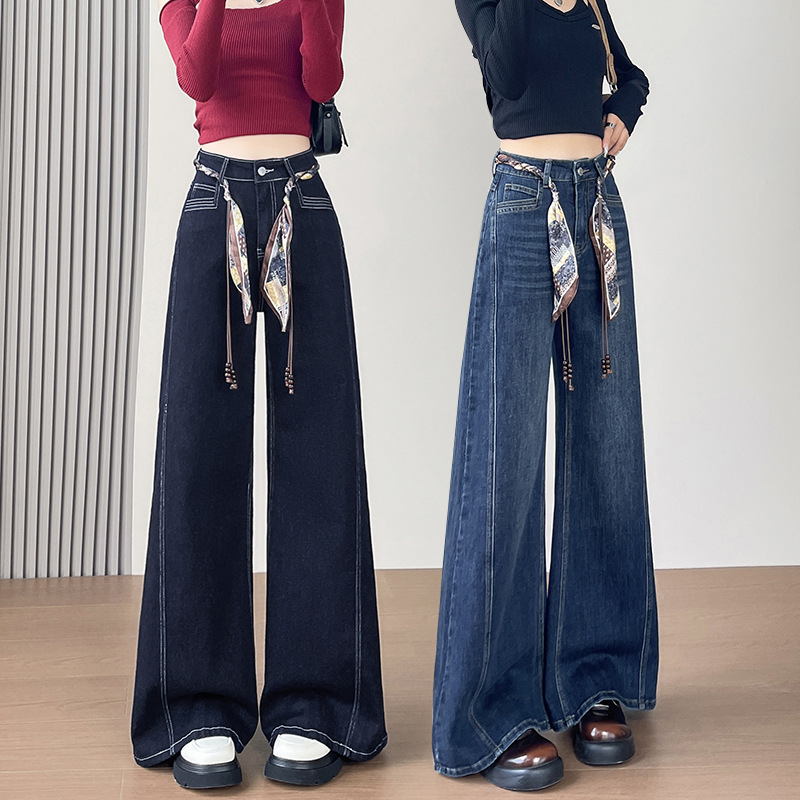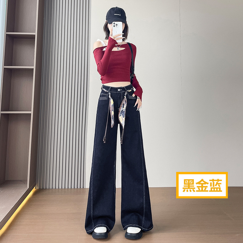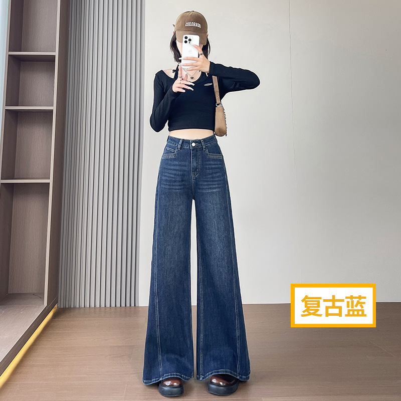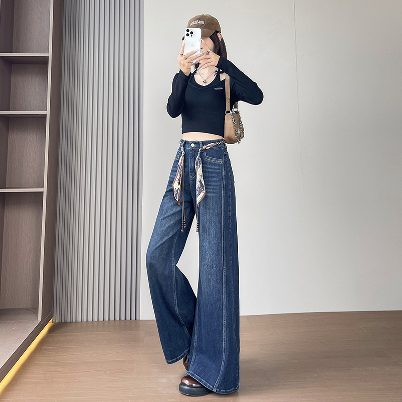 Daning синие джинсы с высокой талией женская осень 2025 новый эластичный цилиндр маленький тащил широкие брюки