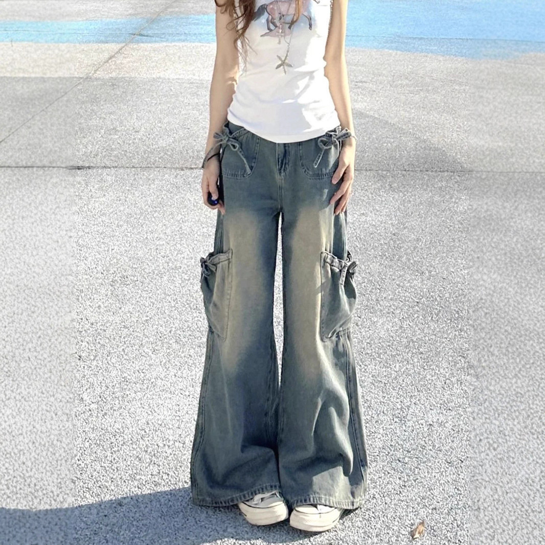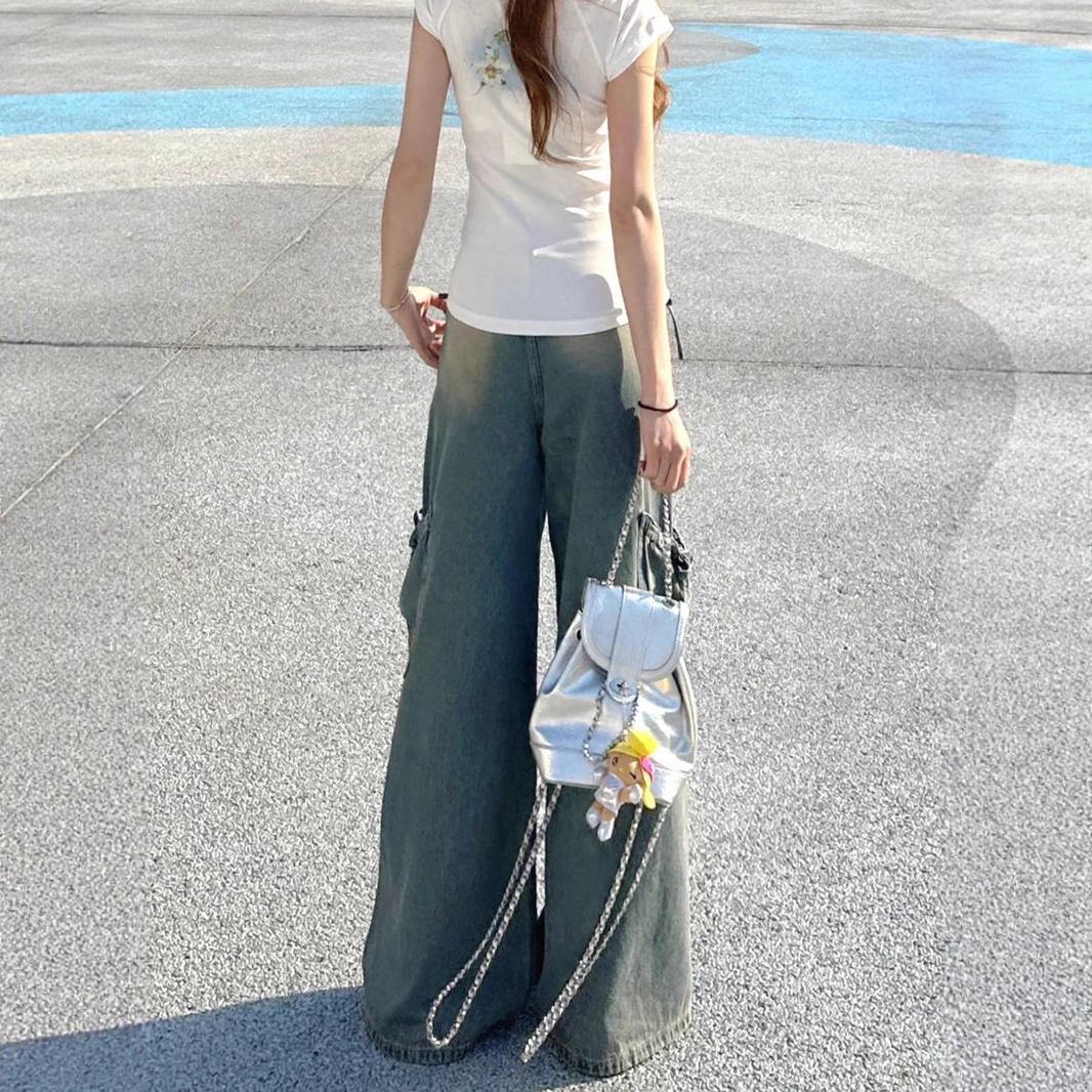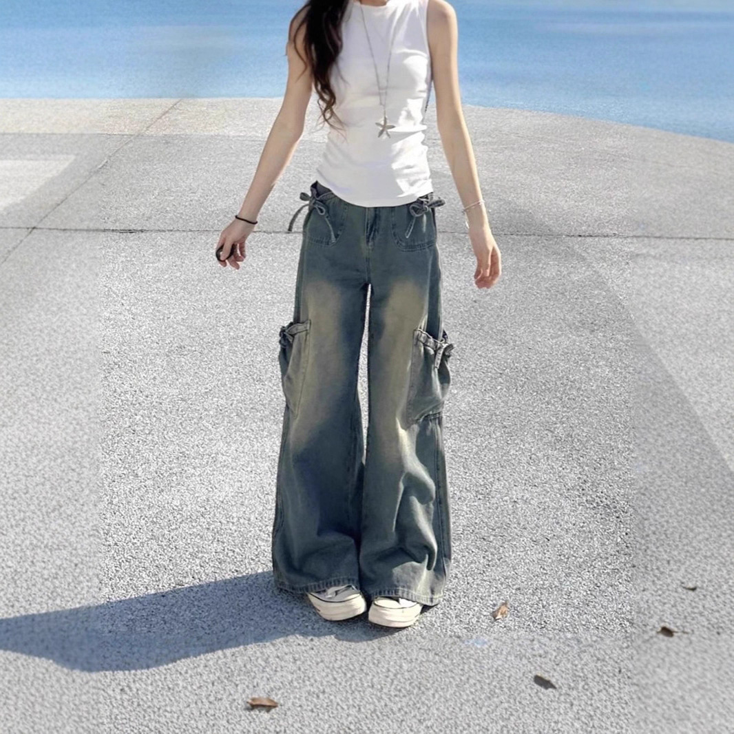 American retro wide leg jeans for women's summer 2025 new workwear design, high waist slimming straight leg dragging women's pants