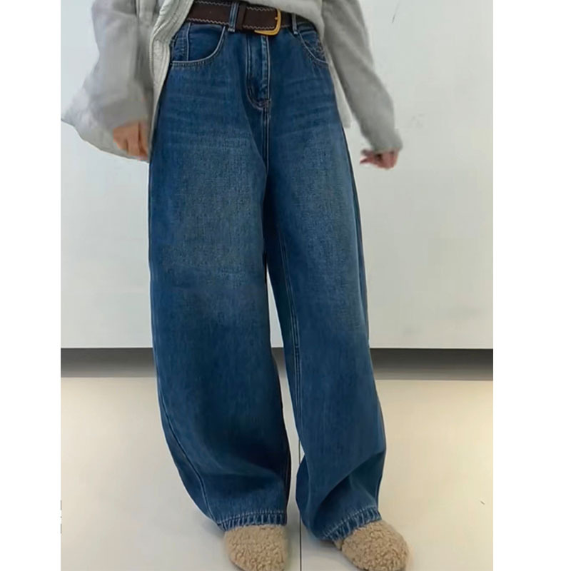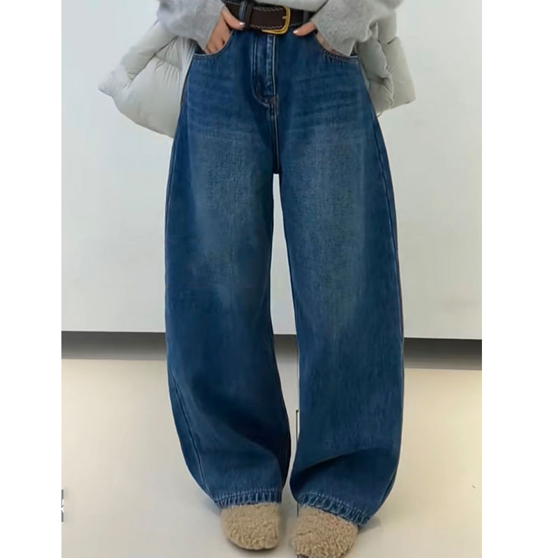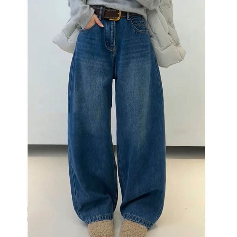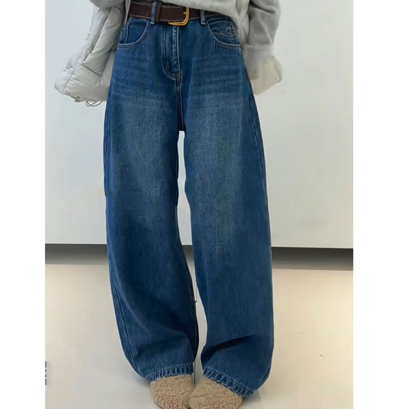 Retro high waisted wide leg jeans for women in winter, versatile and slimming straight leg pants, 2025 new women's casual style