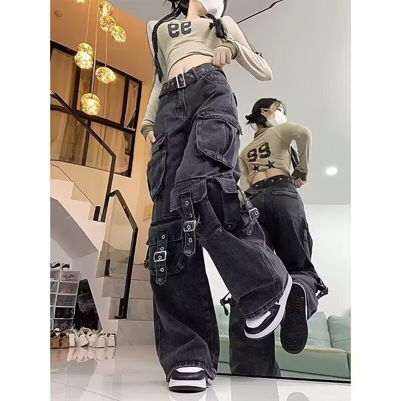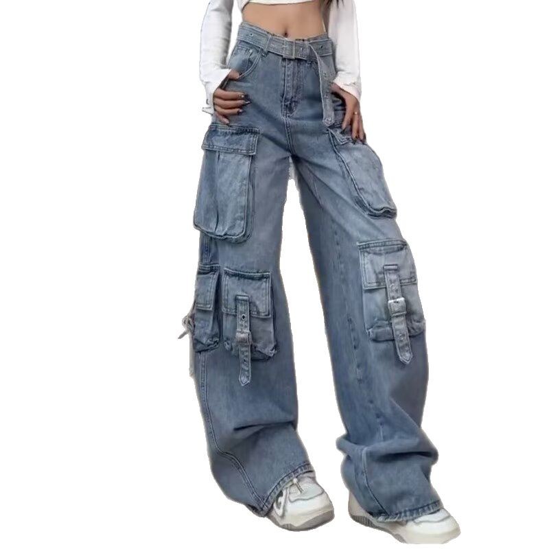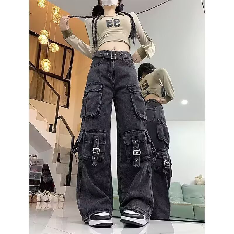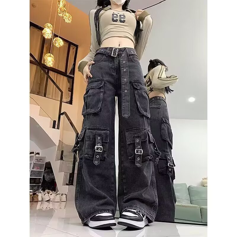 美式复古高街工装牛仔裤女阔腿休闲裤2025年新款时尚潮流ins长裤
