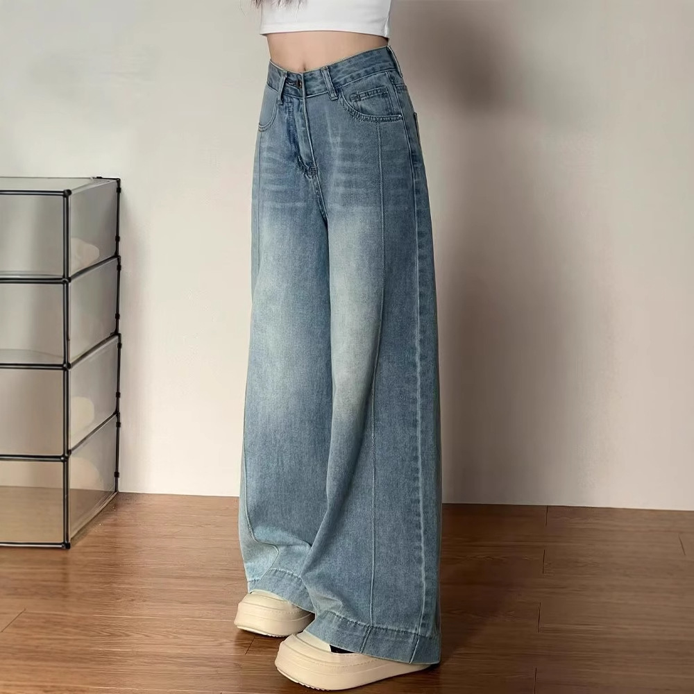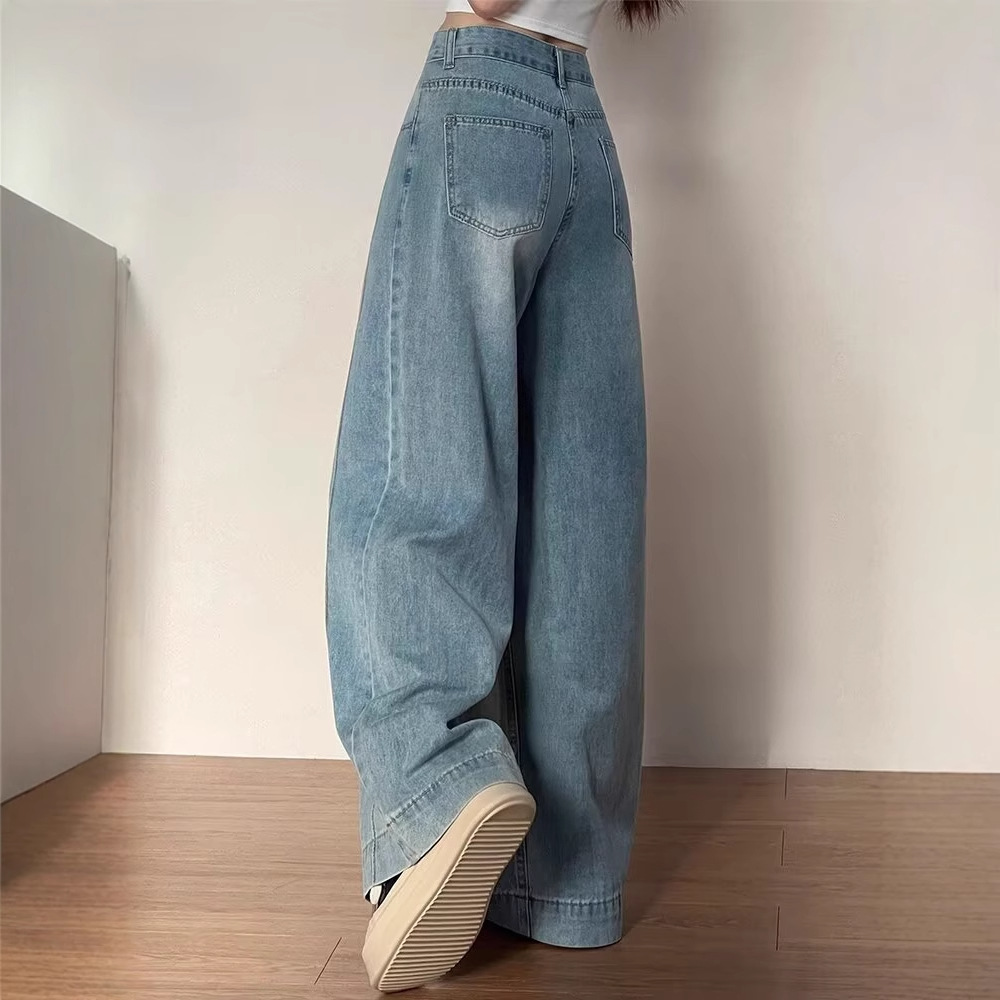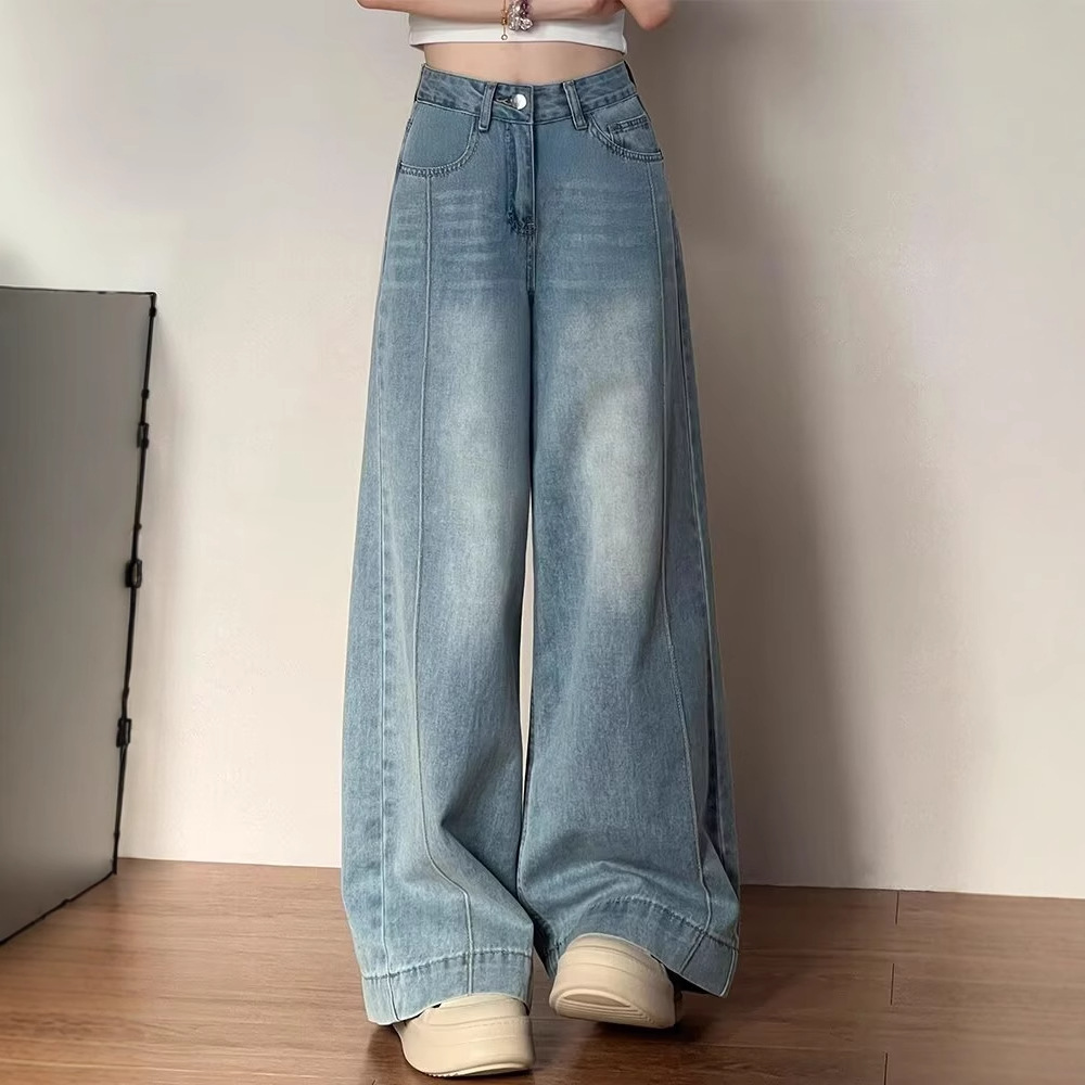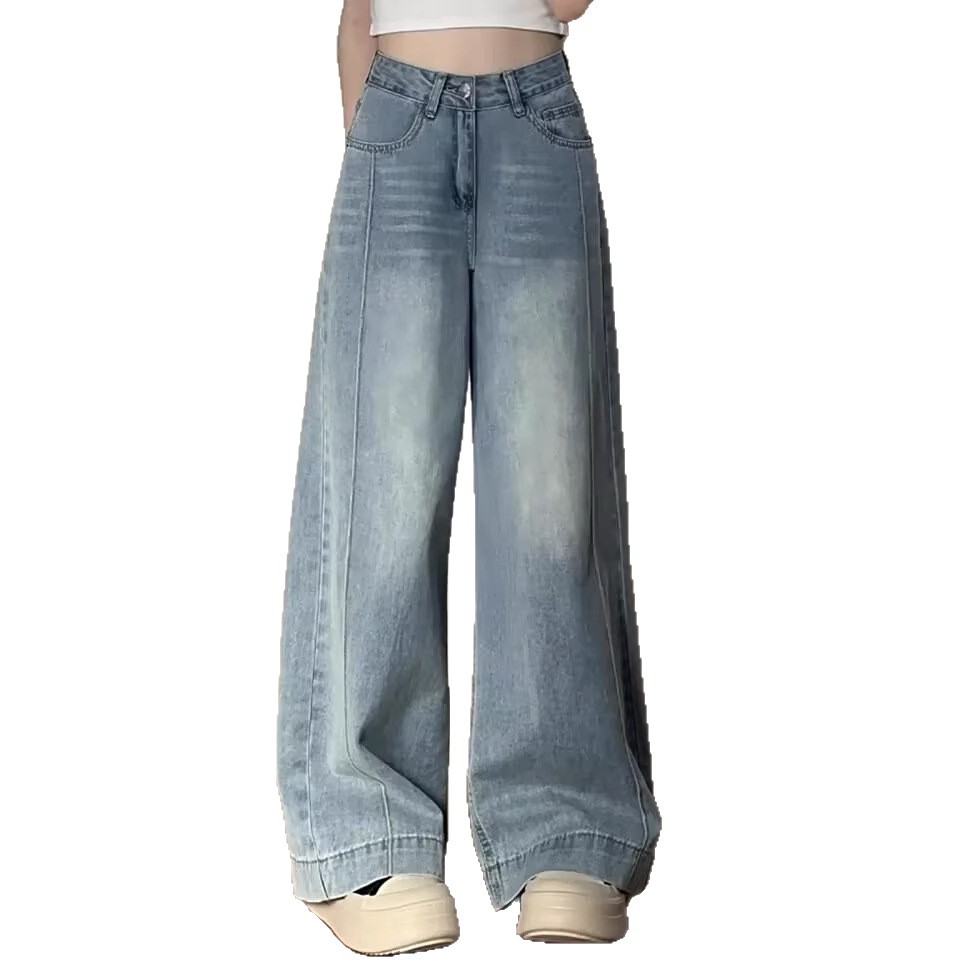 Retro Blue Wide Leg Jeans for Women in Summer, Thin Size, Large Size, Fat MM, High Waist, Loose and Skinny, Pear Shaped Body, Straight Leg Pants