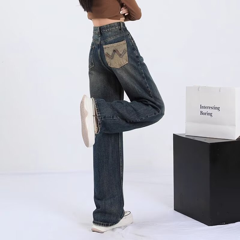 Женские джинсы с высокой талией и широкими ногами 2024 Новый весенний и осенний сезон Маленькие американские брюки