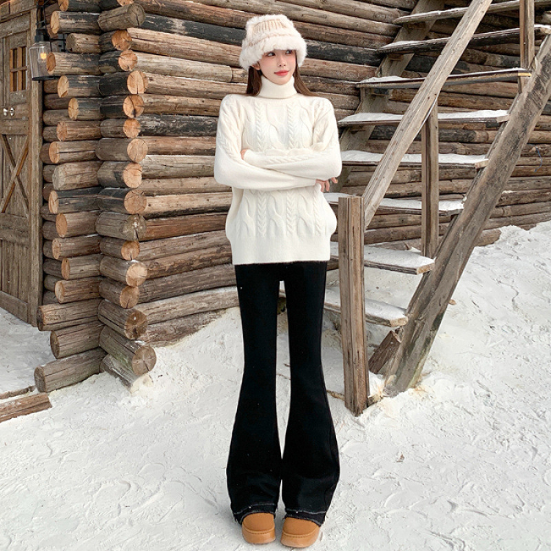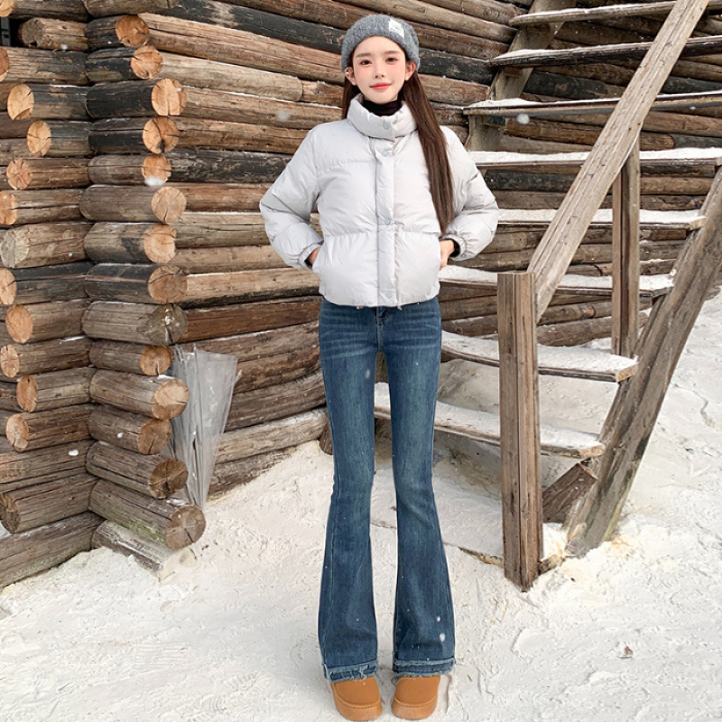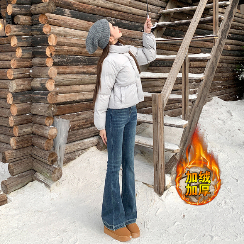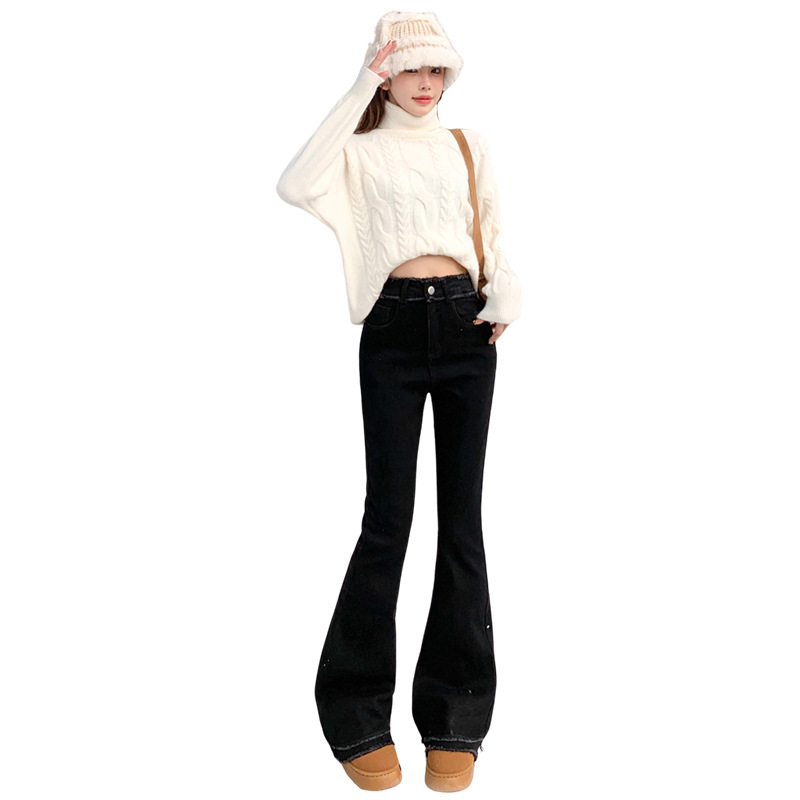 加绒微喇牛仔裤女秋冬2025新款高腰修身美式复古加厚马蹄喇叭裤子