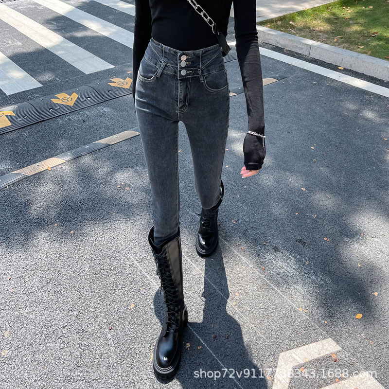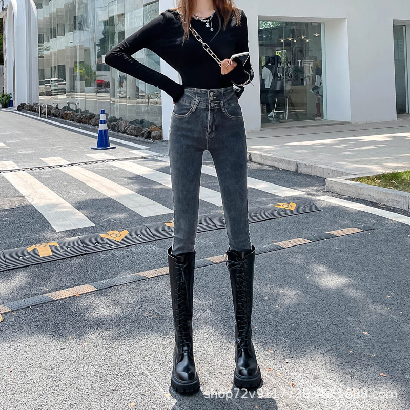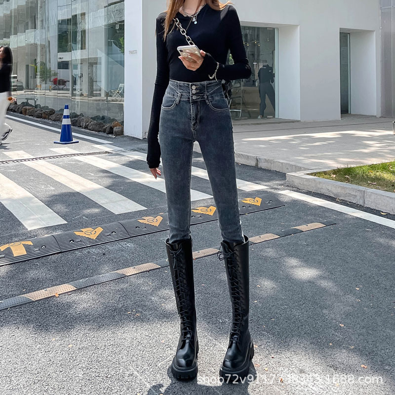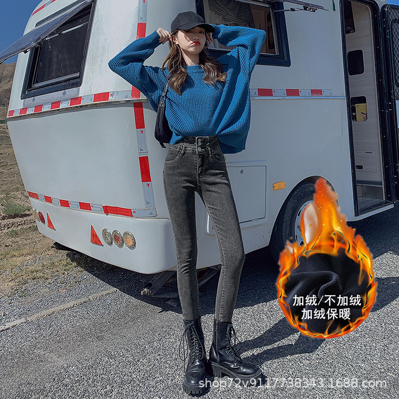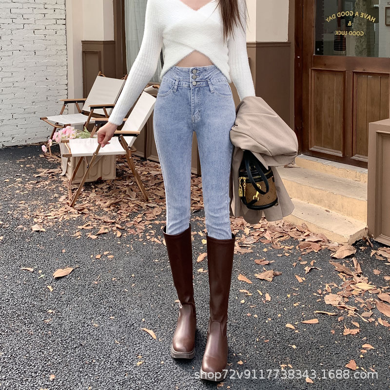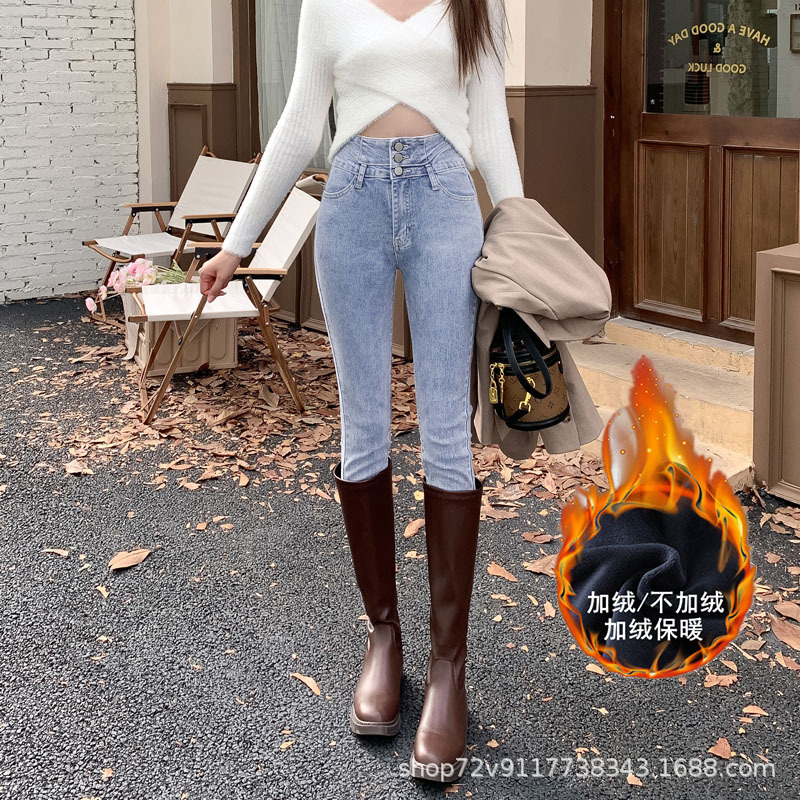 Autumn and Winter Plush New Ultra High Waist Tight Jeans for Women, Small and Thin, High Elasticity, Pencil Pants for Women