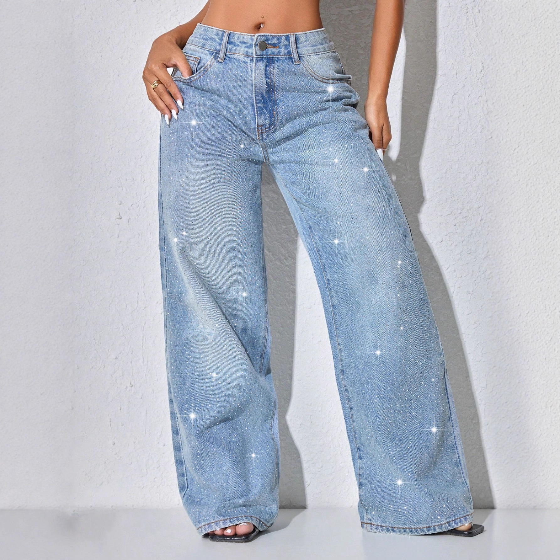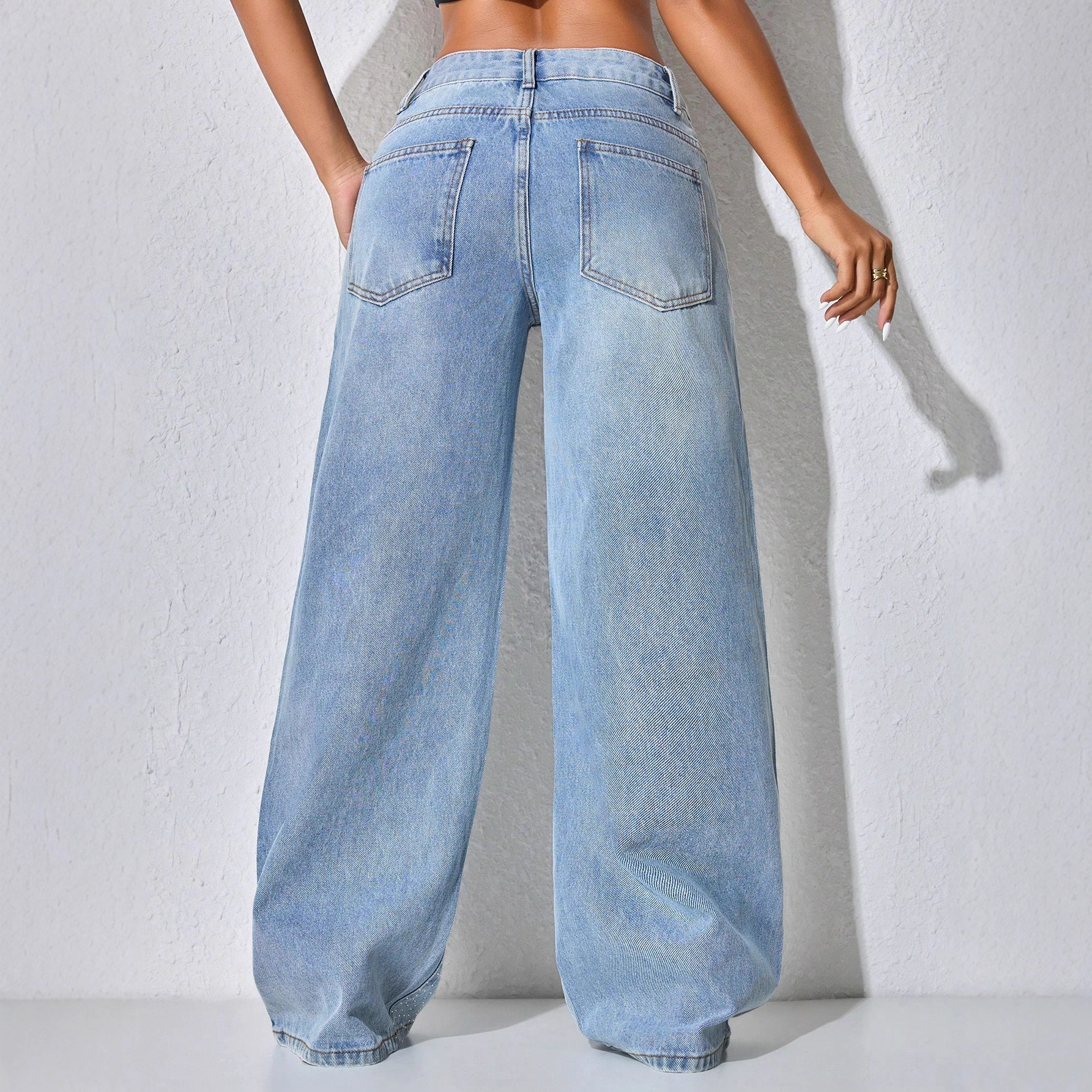 Foreign Trade Europe and America Cross border Women's Hot Diamond Washed Jeans Large Size Low Waist Loose Button Straight Tube Denim Pants Women