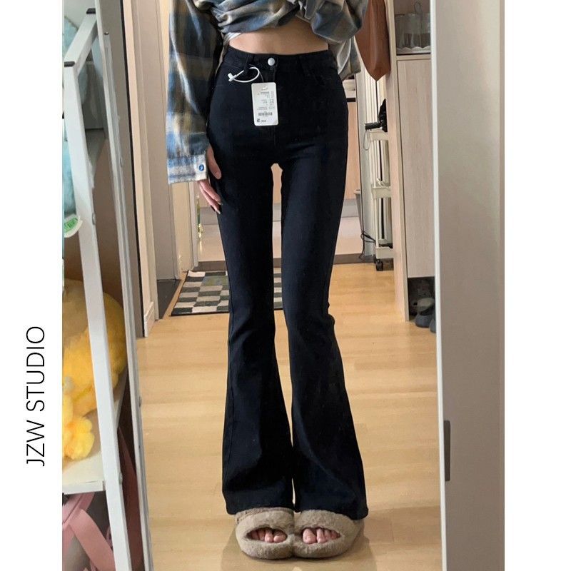 Micro flared jeans for women in spring and autumn, black slim fit, slim and tall, elongated version, high waist elastic horseshoe pants