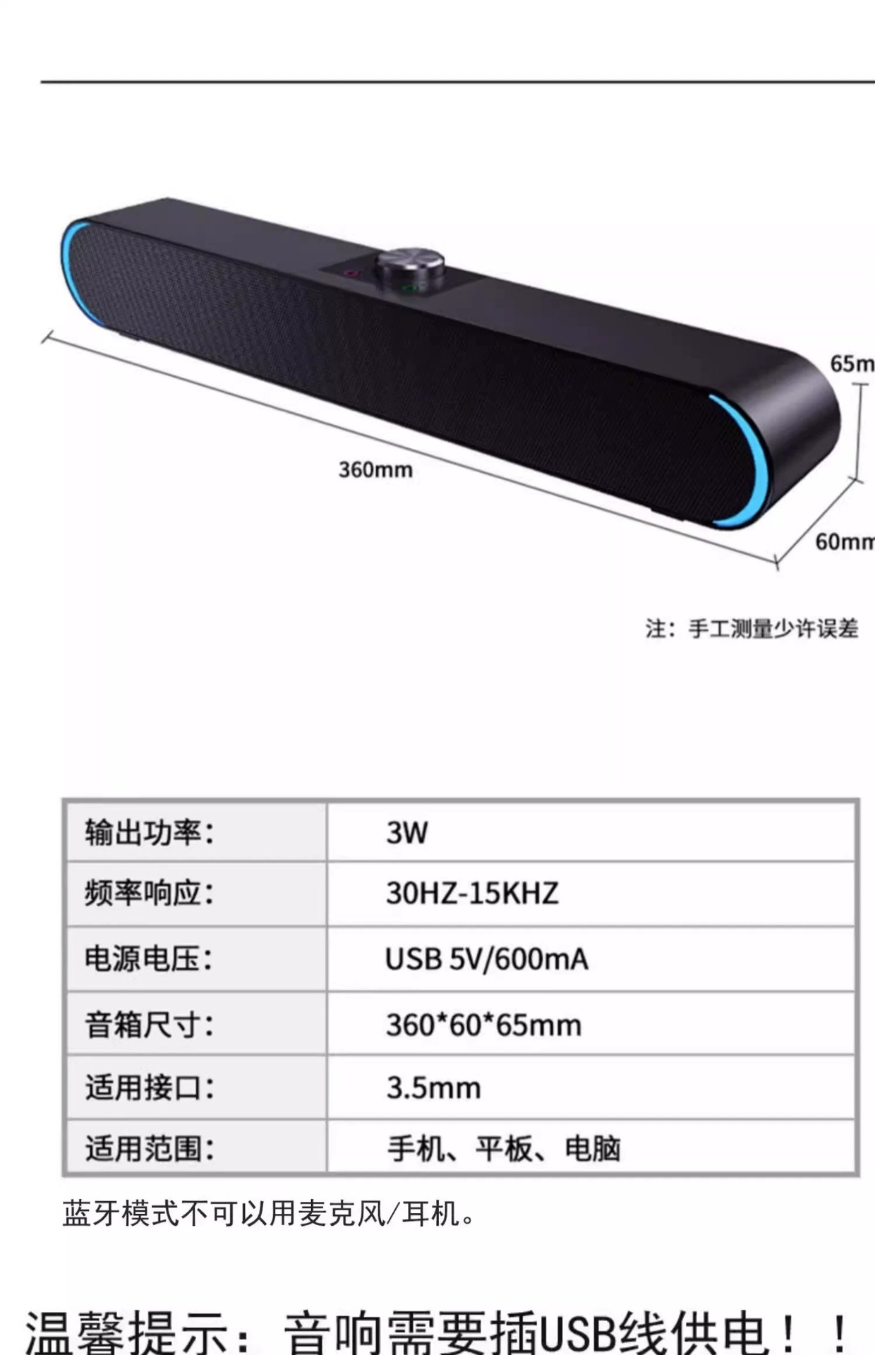 音响尺寸: 360*60*65mm