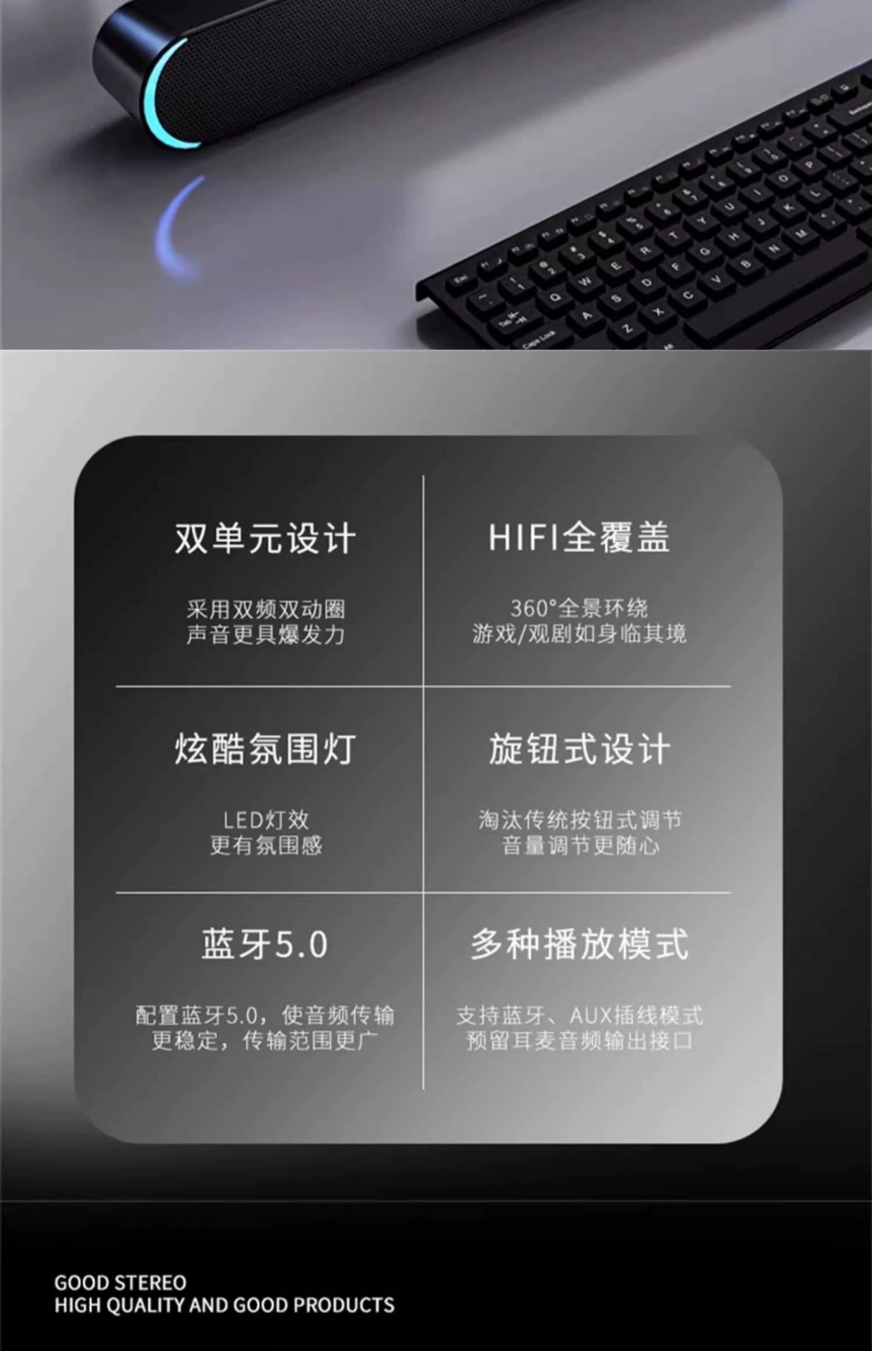 | 音响适用场景 | 有线音箱桌面台式电脑音箱重低音炮 小音响 寝室 办公室 家庭摆件 |
