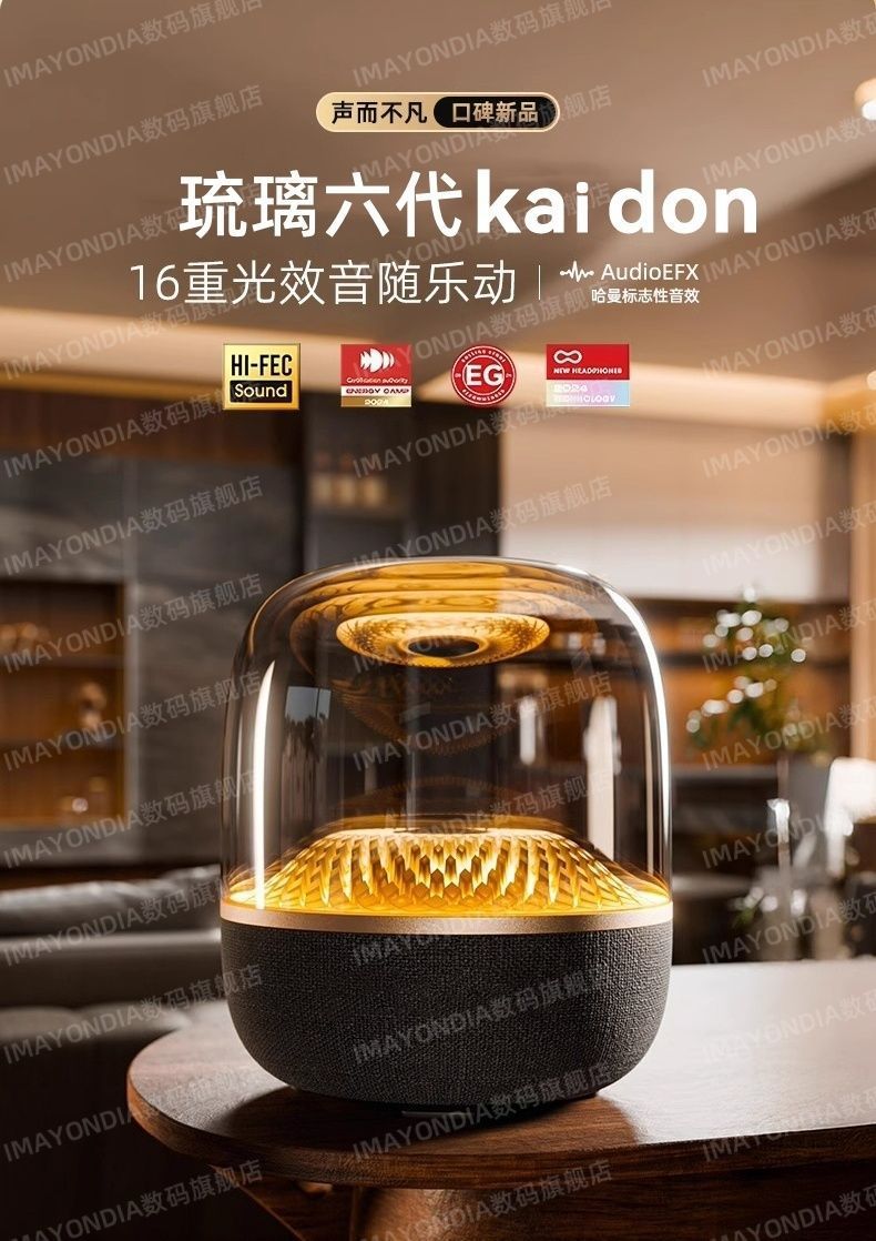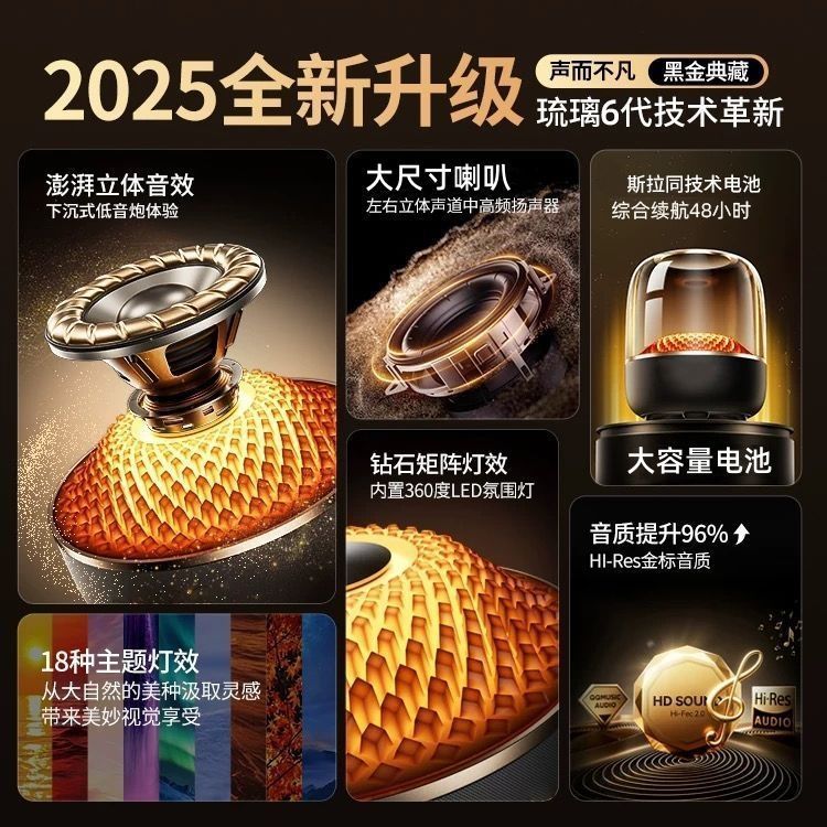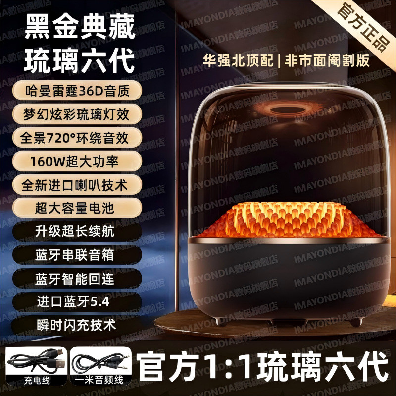 Huaqiangbei 2025 Top of the line Harman Glass 6th Generation Wireless Bluetooth Speaker Home Desktop Smart Speaker