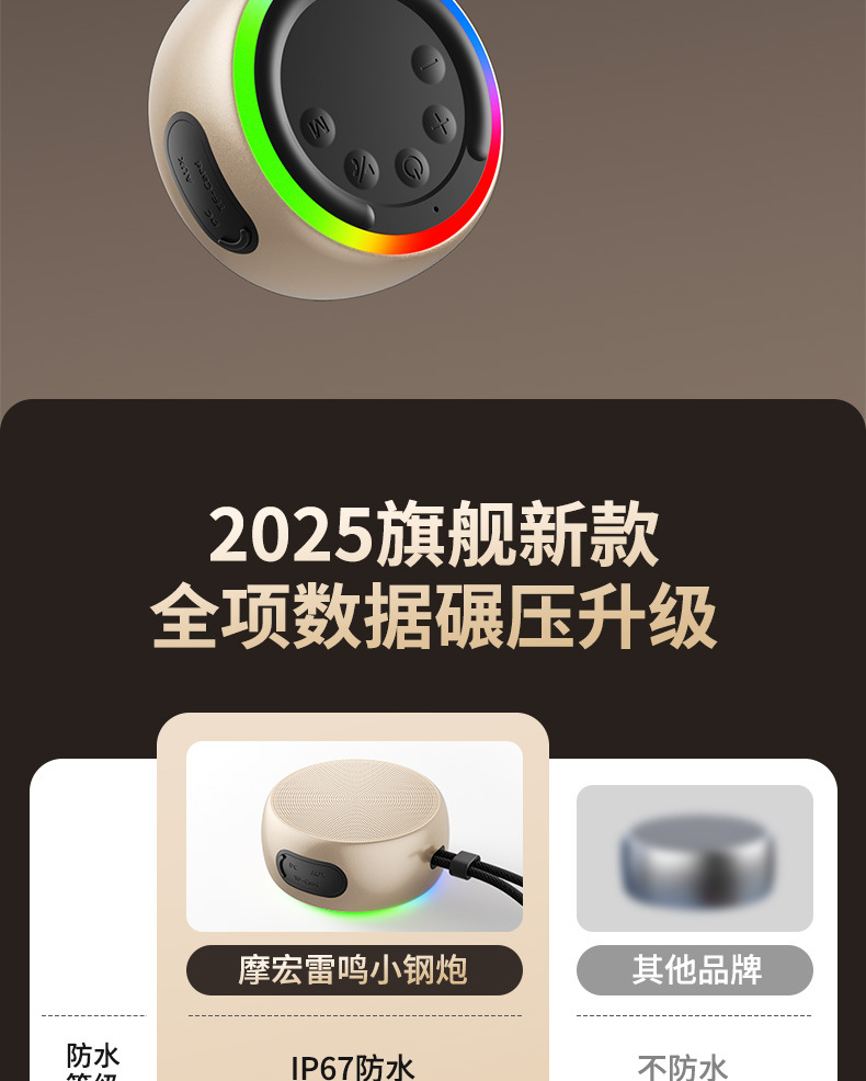 | Additional features | insert the card;waterproof;lighting;360 ° surround sound effect;Hi Fi sound effects;Mode switching;Collection and broadcasting;RGB lighting effects;TWS pairing;Adaptive sound effects |