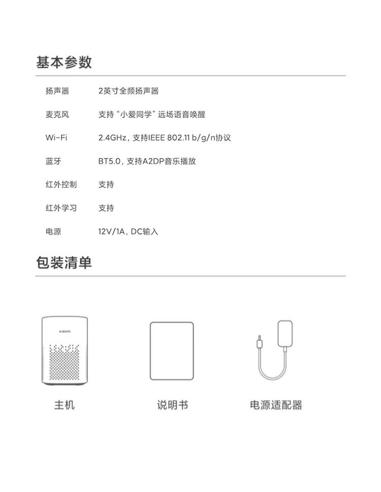 包装清单音箱*1 说明书*1 电源适配器*1