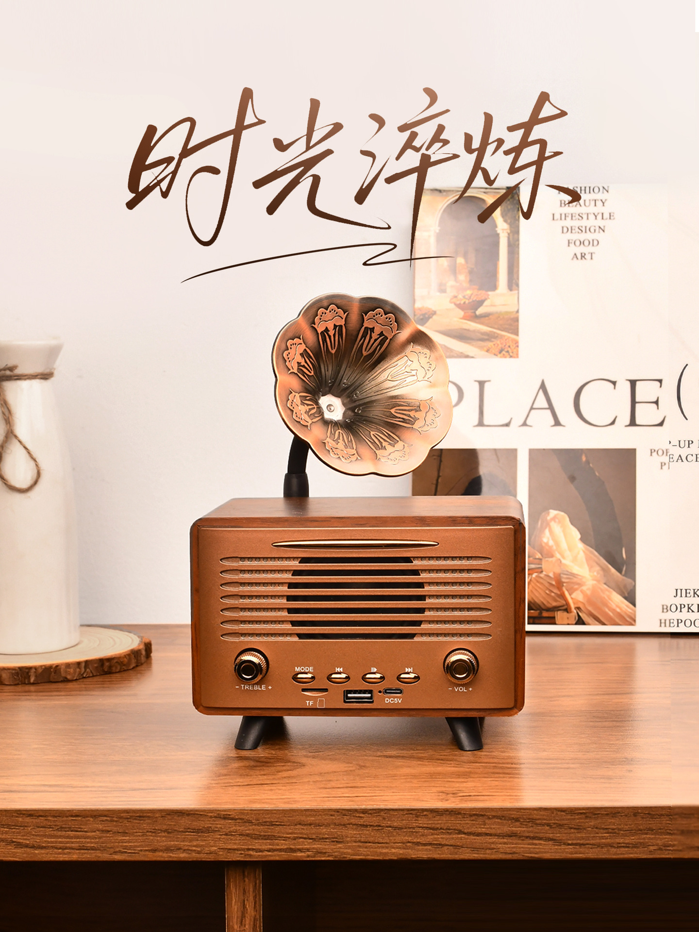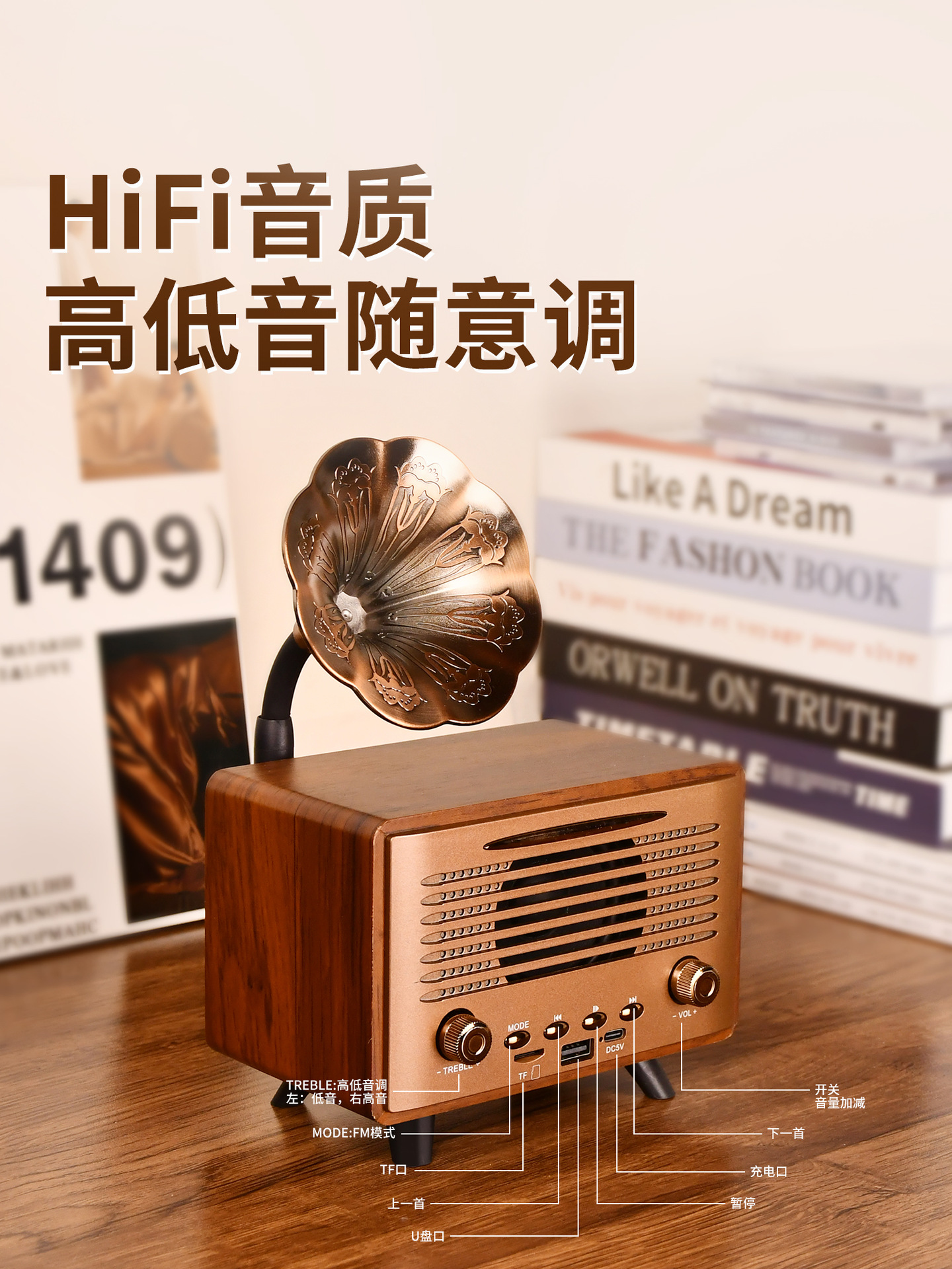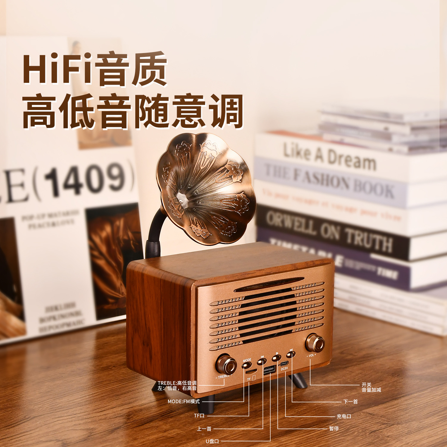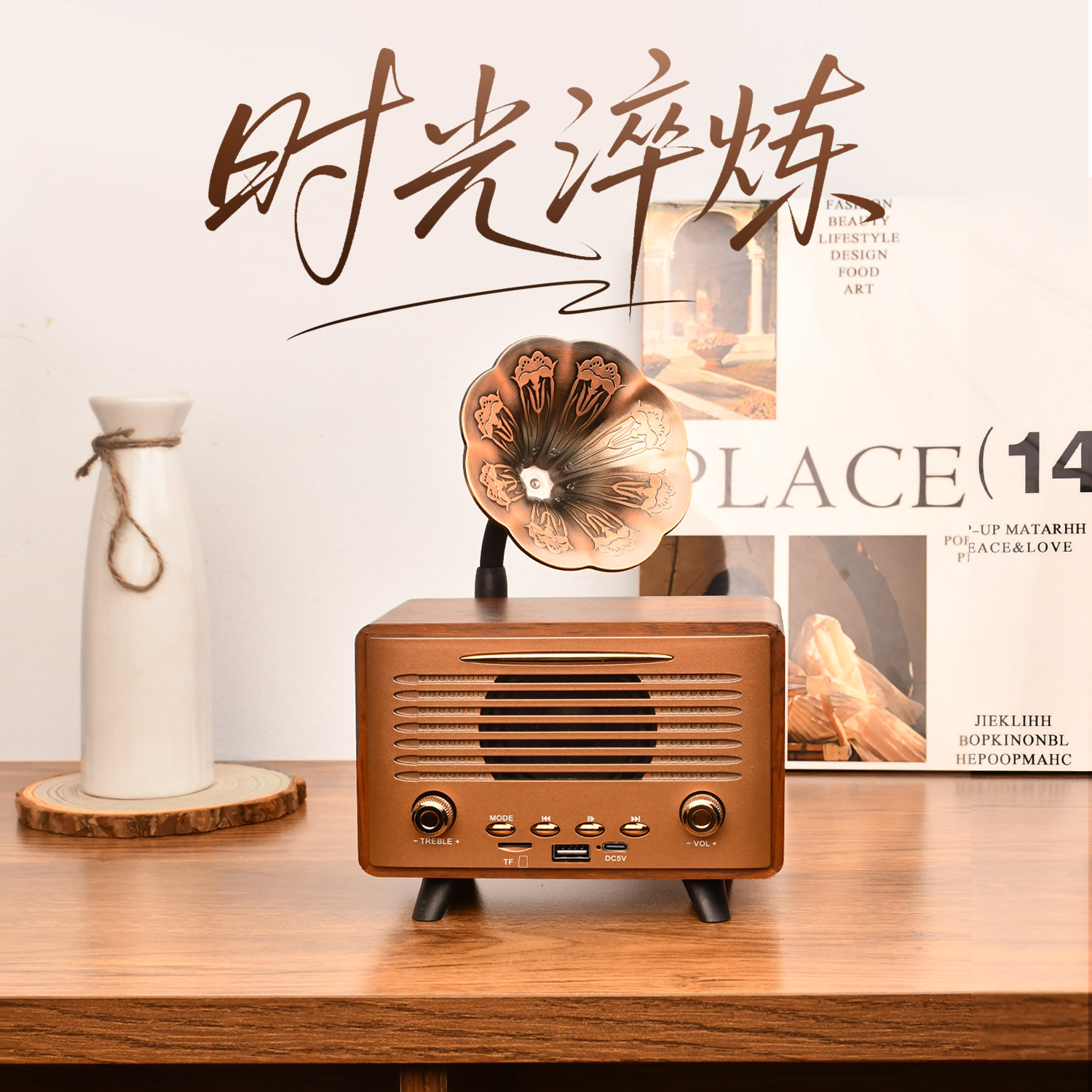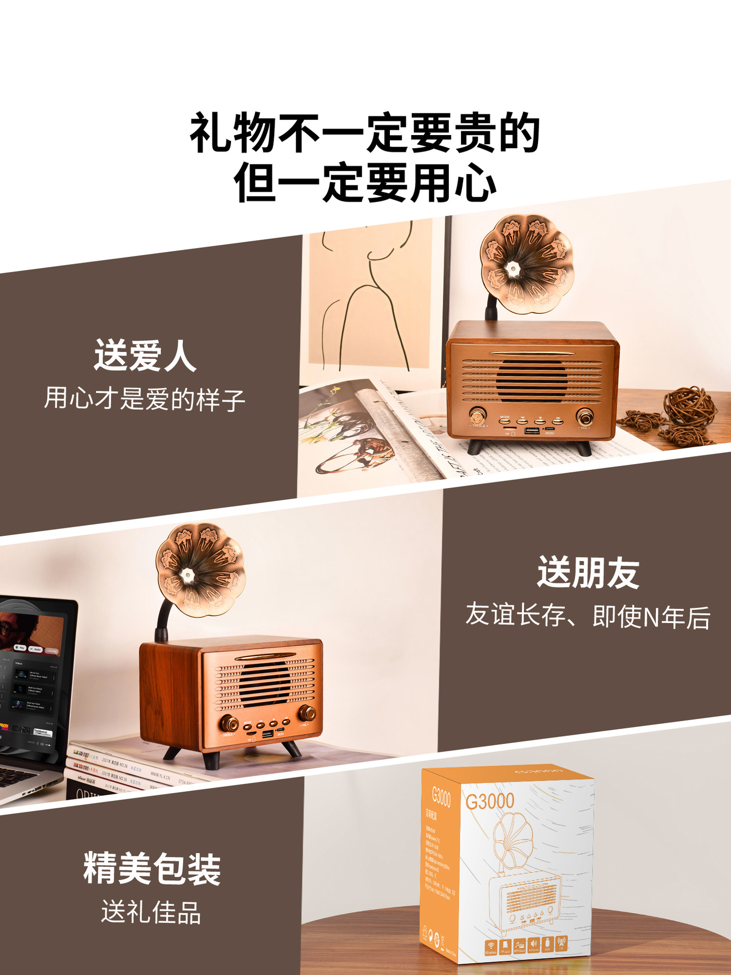 G3000 Bluetooth Speaker Mini Wireless High Range Low Sound Retro Desktop Wooden Insert Card U Disk Play High Sound Quality