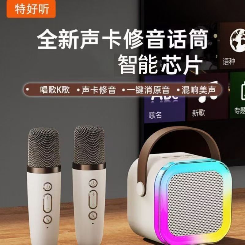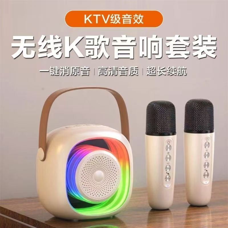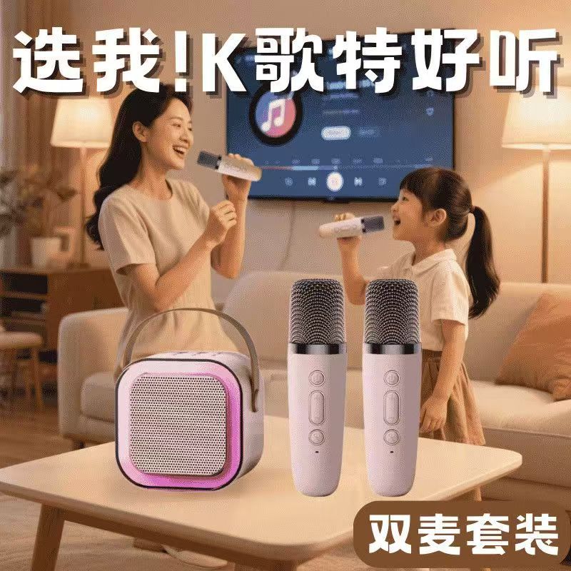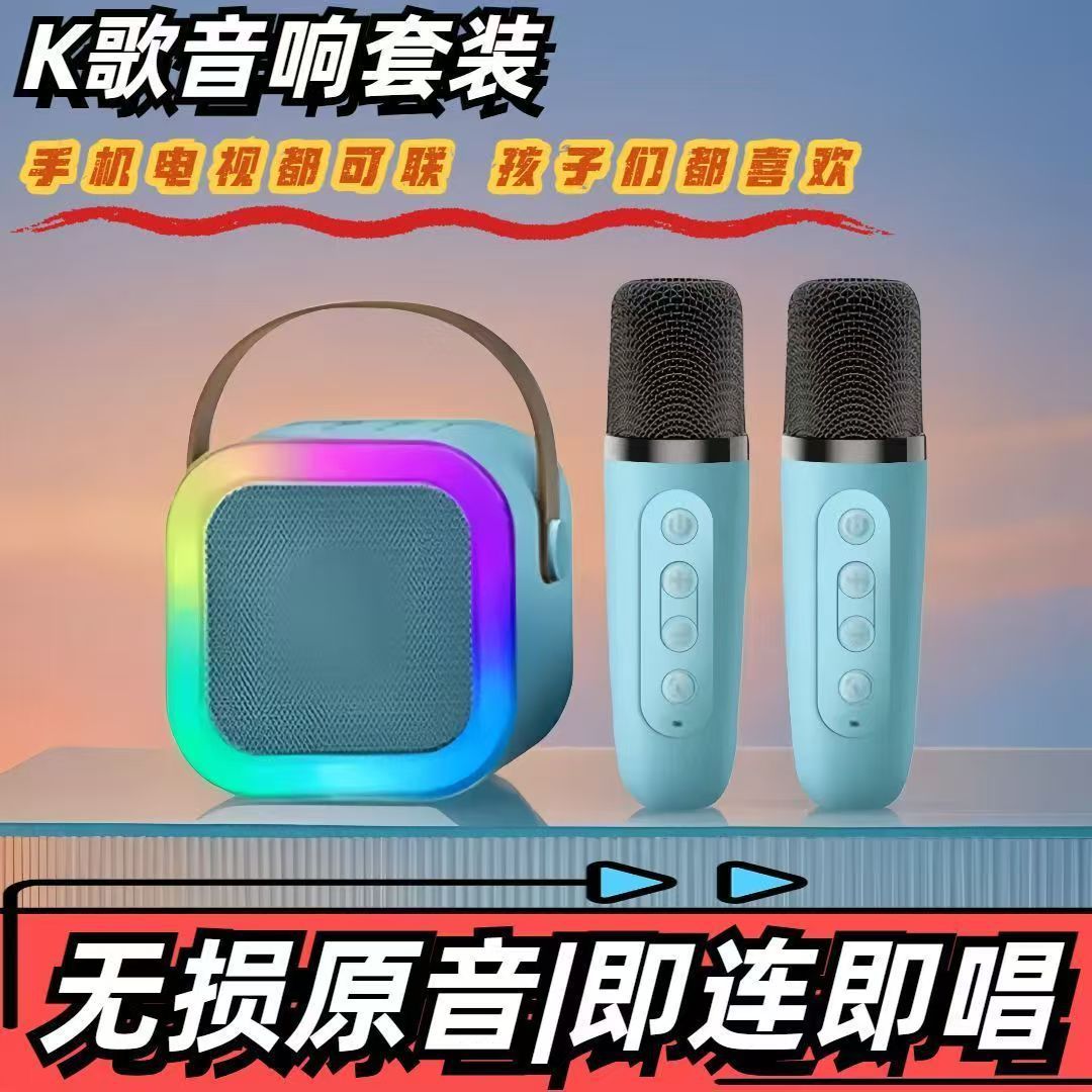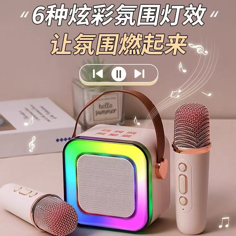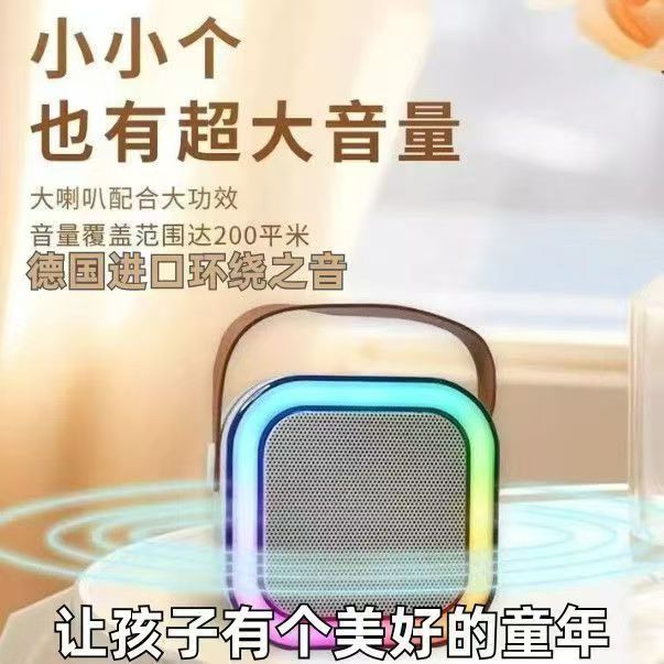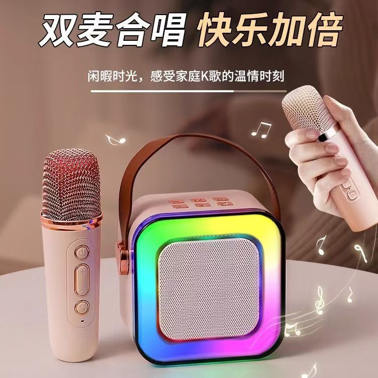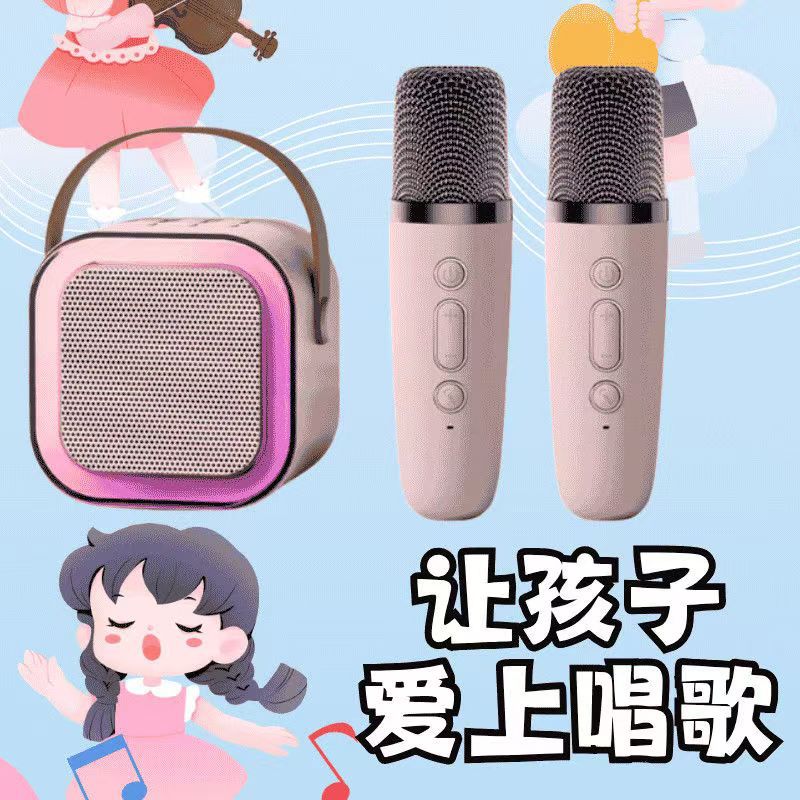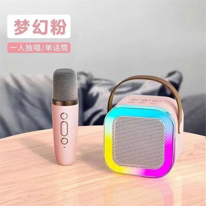 Cross border K12 Bluetooth speaker, outdoor portable small speaker, karaoke card insertion wireless microphone, home KTV, children's toys