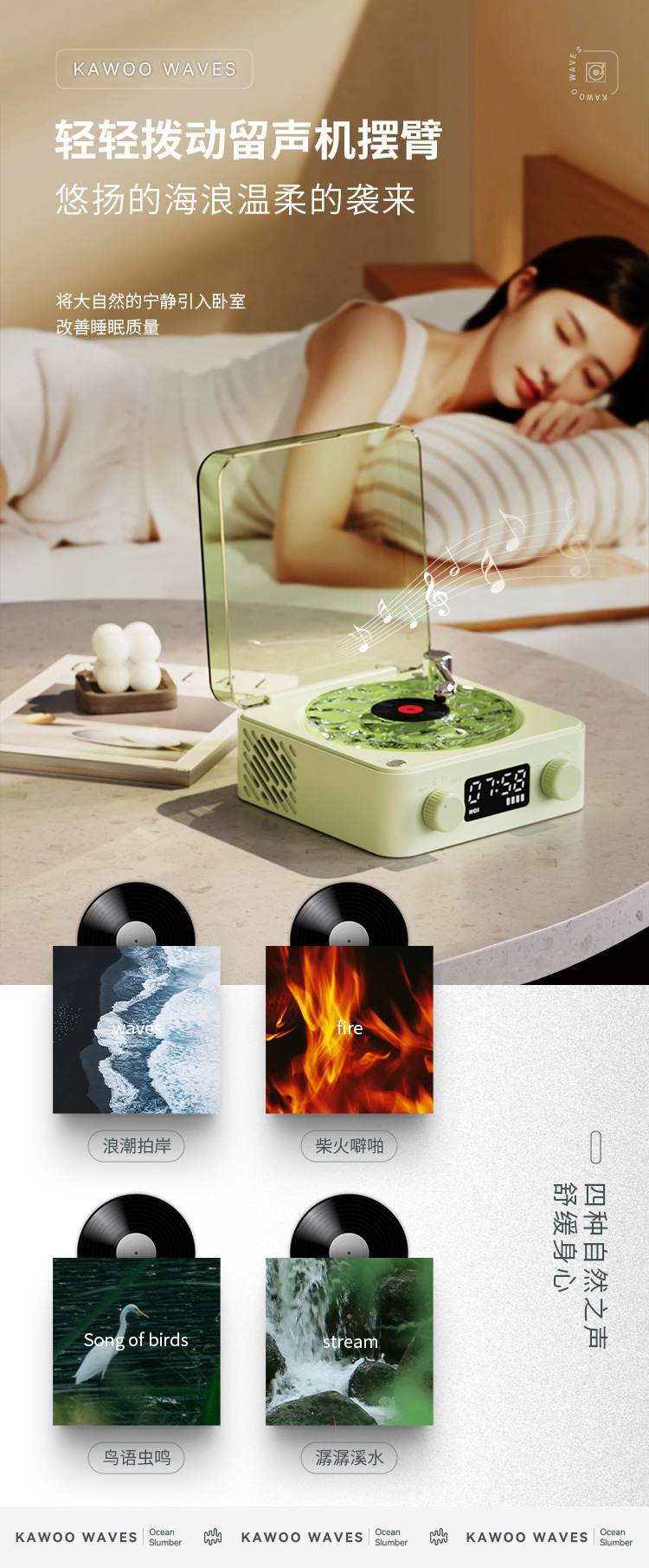 Factory direct sales of foreign trade new product KAWOO Tinghai wireless small retro Bluetooth speaker white noise speaker for bedroom use