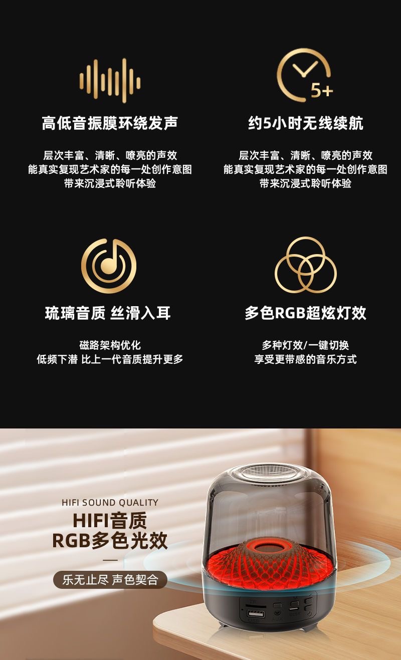 【哈曼音效】新款琉璃无线蓝牙音响环绕音低音炮蓝牙音箱低音环绕
