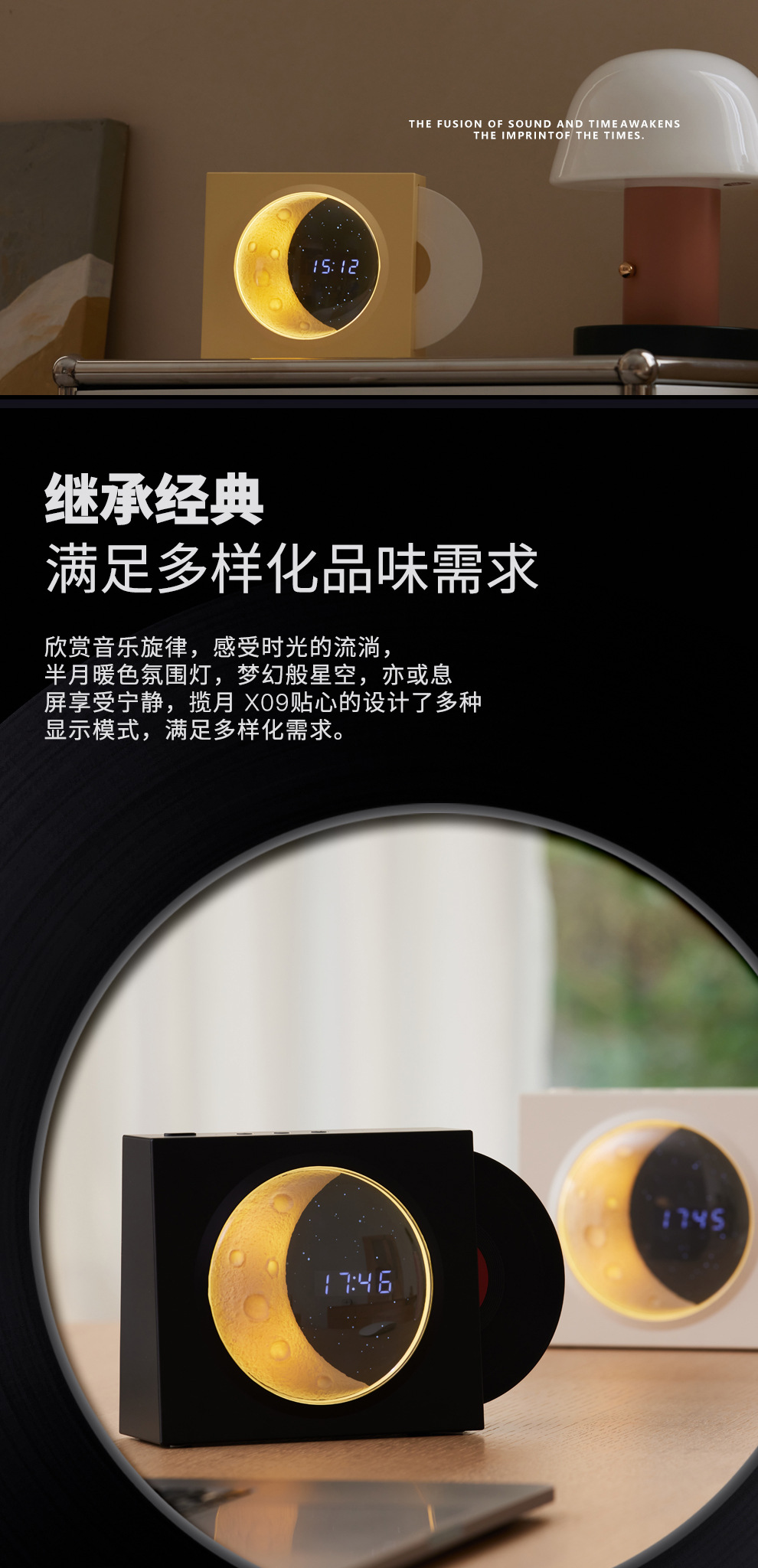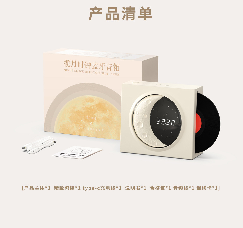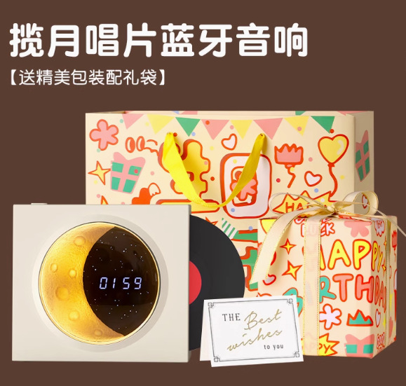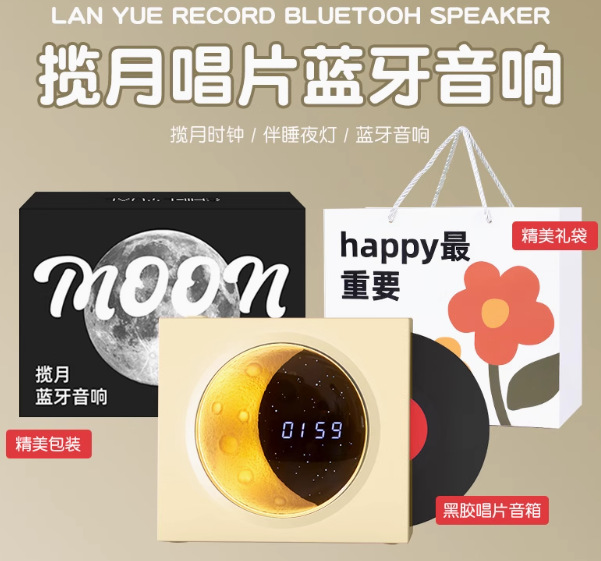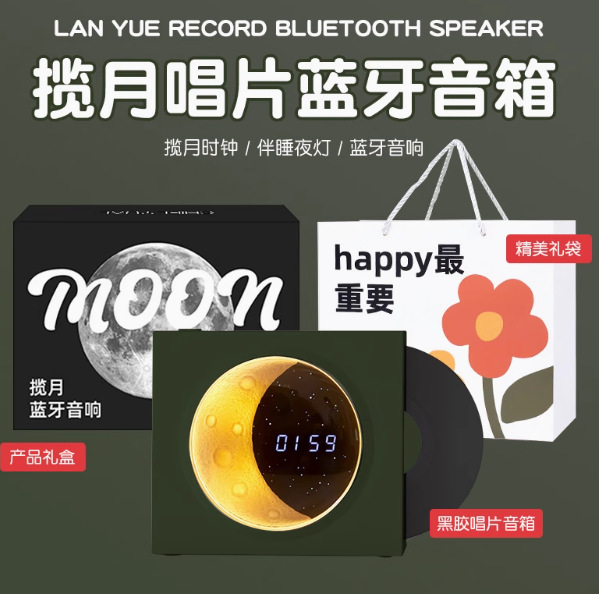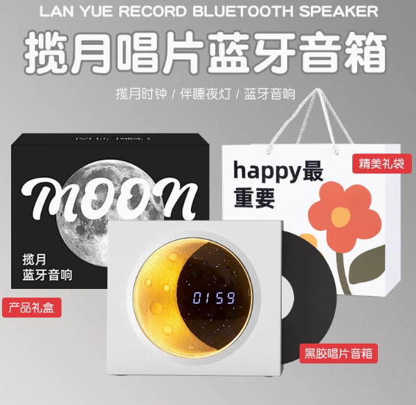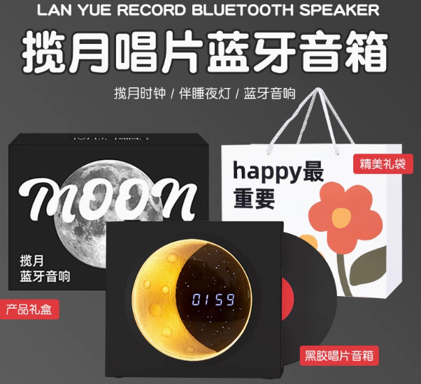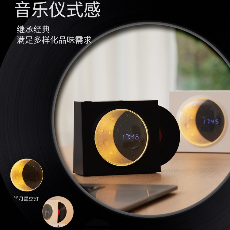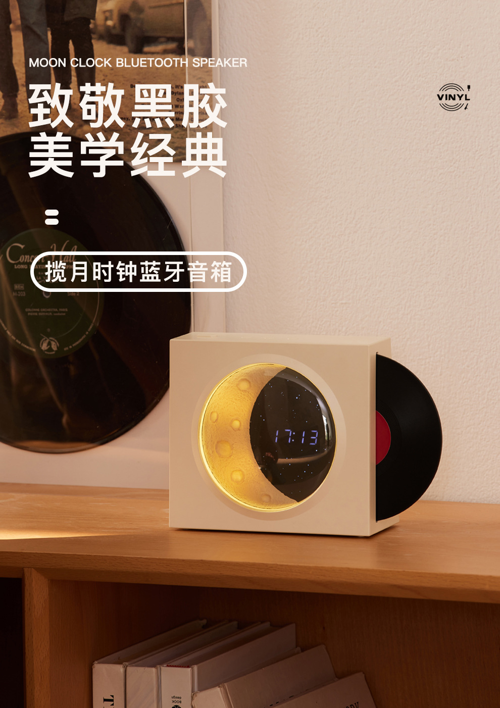 Range Moon Clock Wireless Bluetooth Speaker Retro Vinyl Record Machine Desktop Outdoor Portable Atmosphere Light Small Speaker