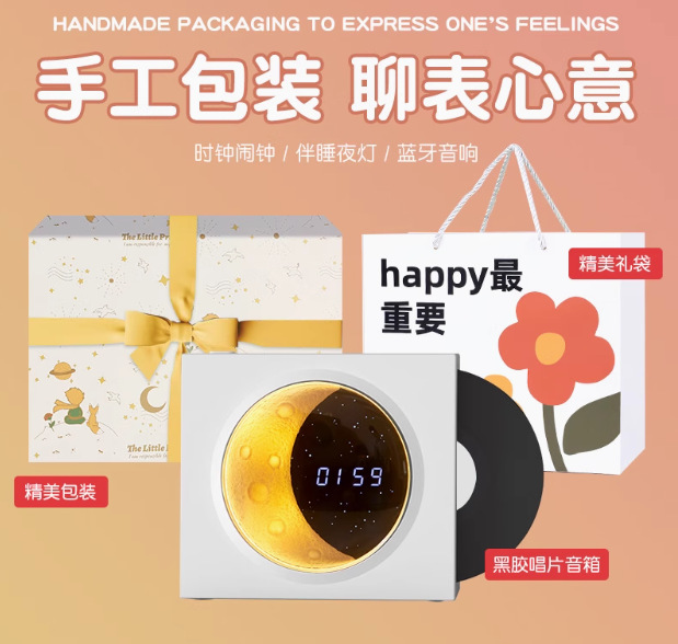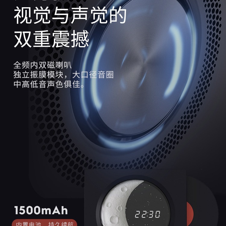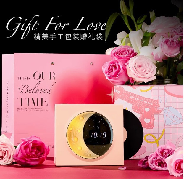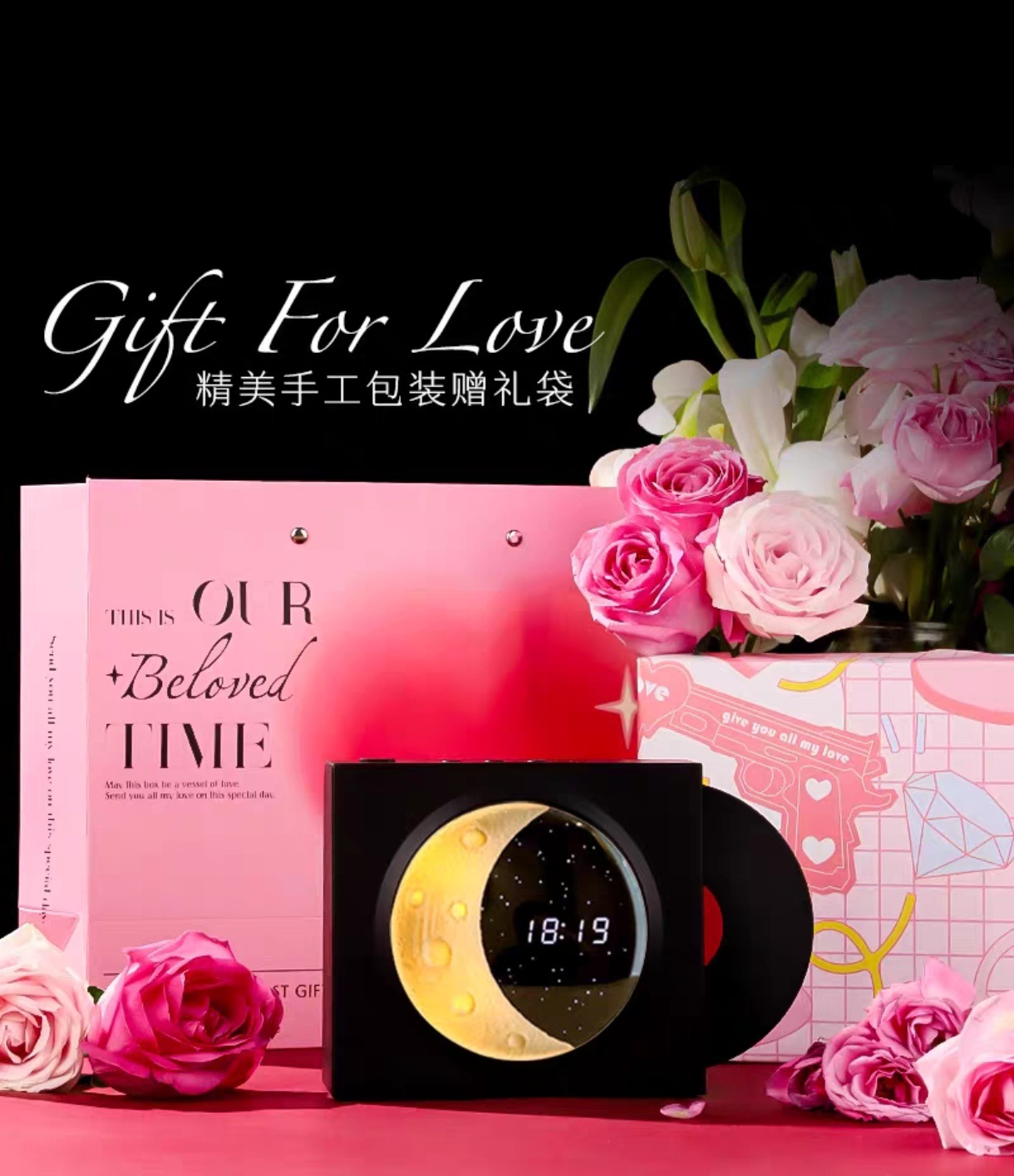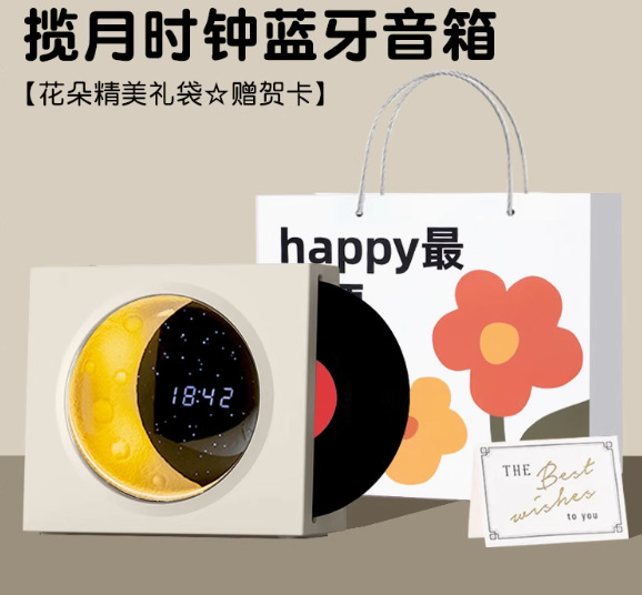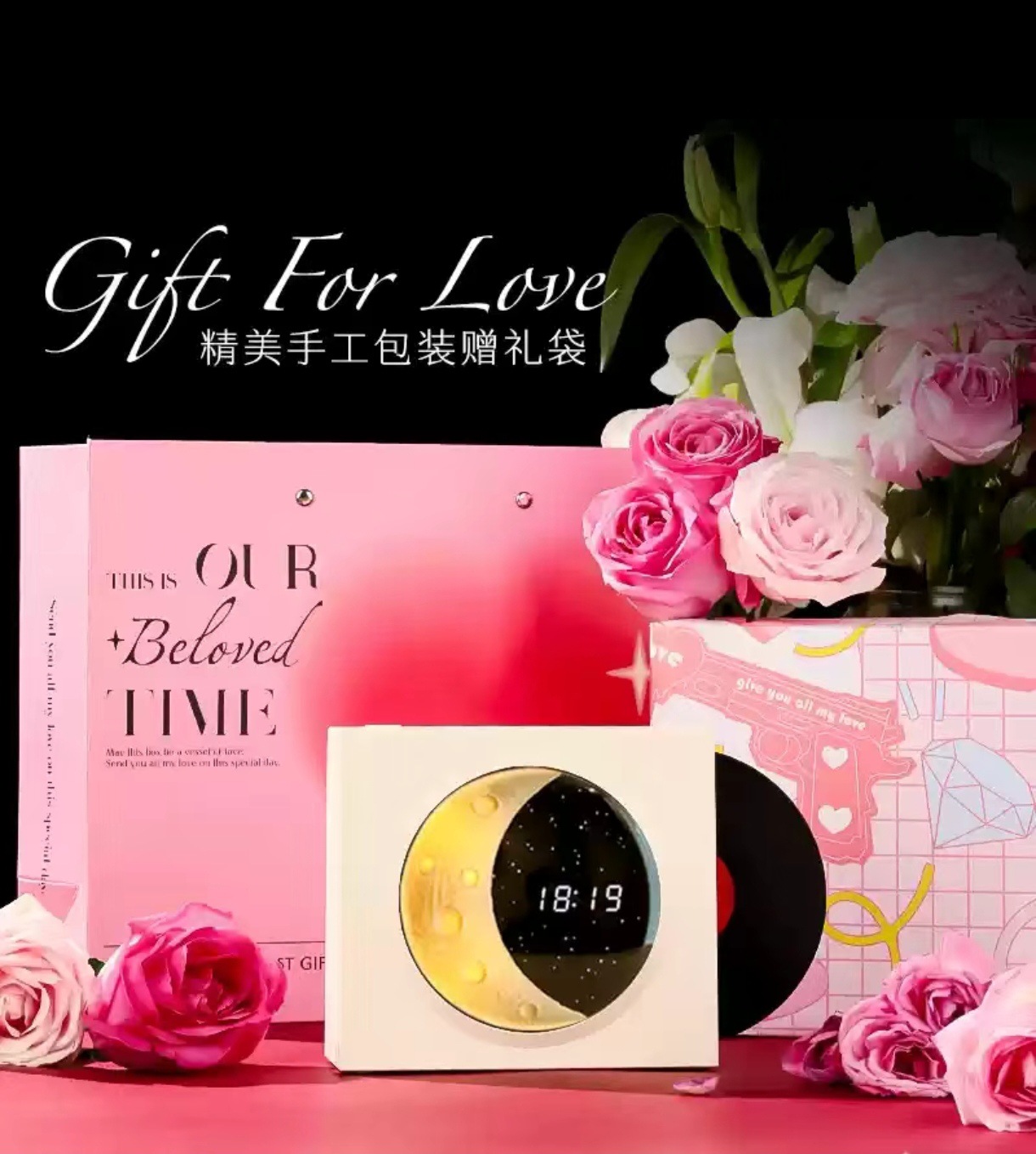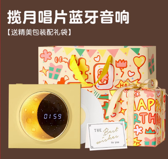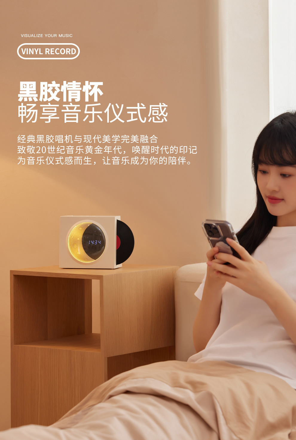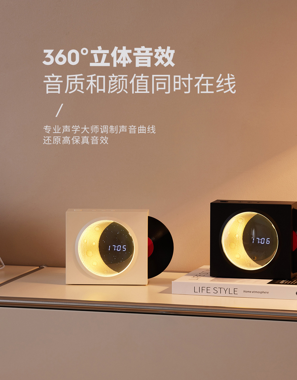 Range Moon Clock Wireless Bluetooth Speaker Retro Vinyl Record Machine Desktop Outdoor Portable Atmosphere Light Small Speaker