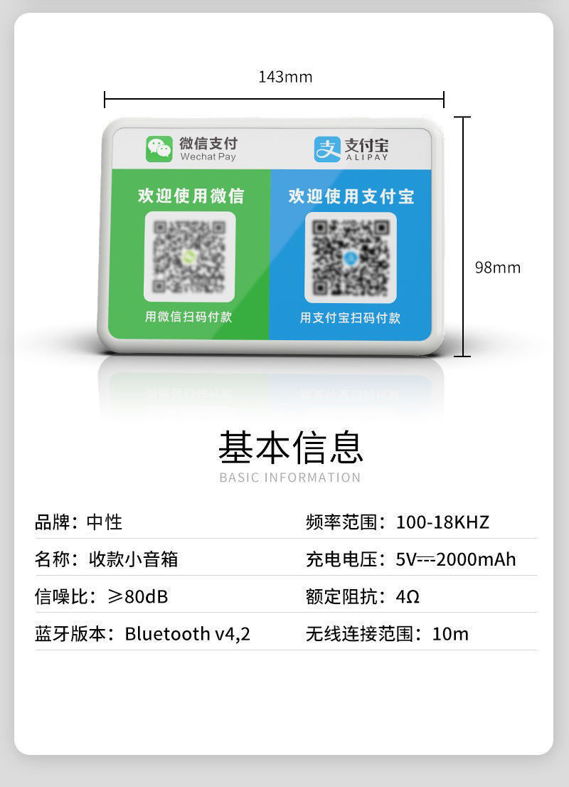 Payment reminder Bluetooth audio QR code collection voice announcer Alipay arrival wireless speaker player