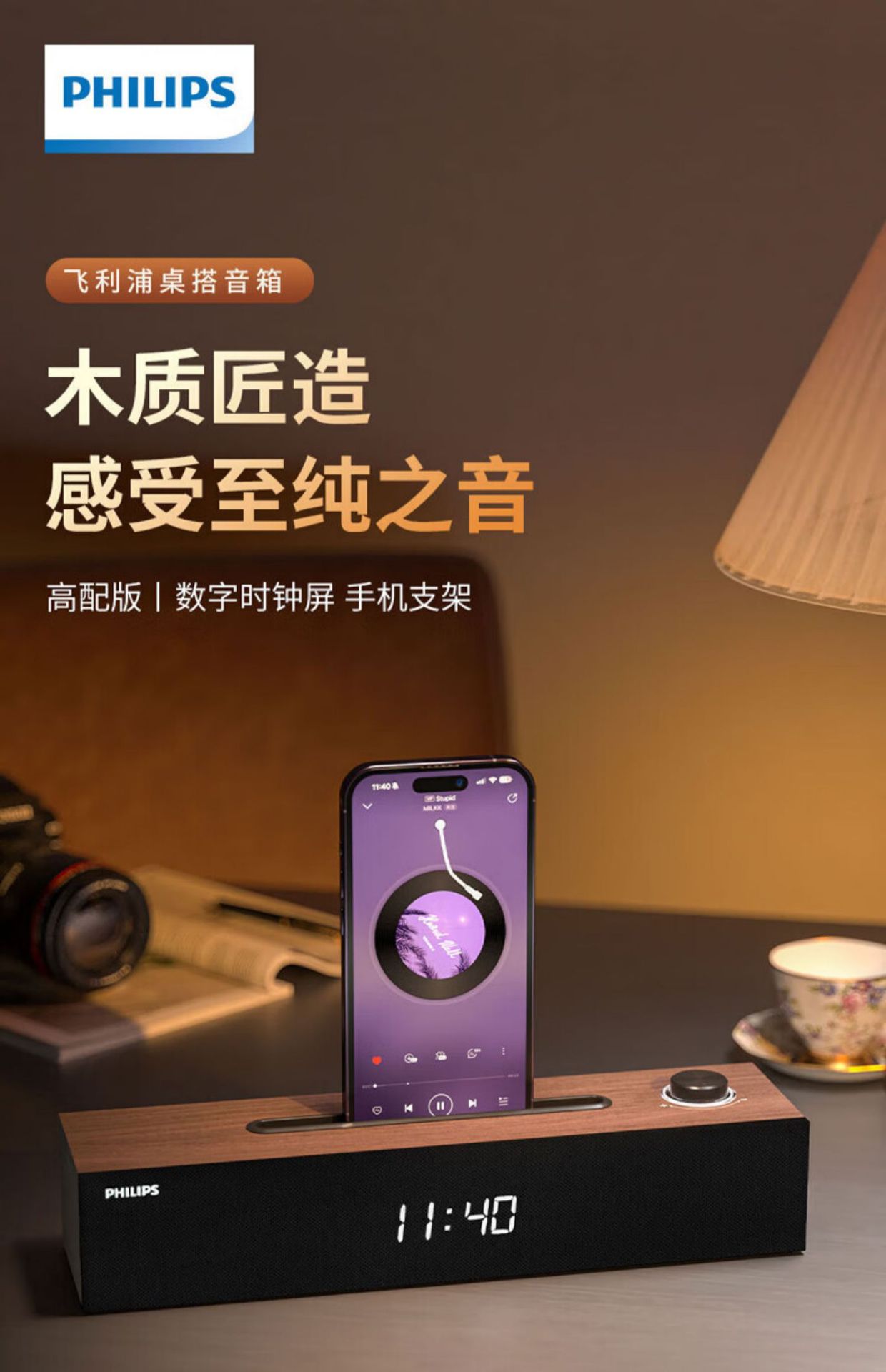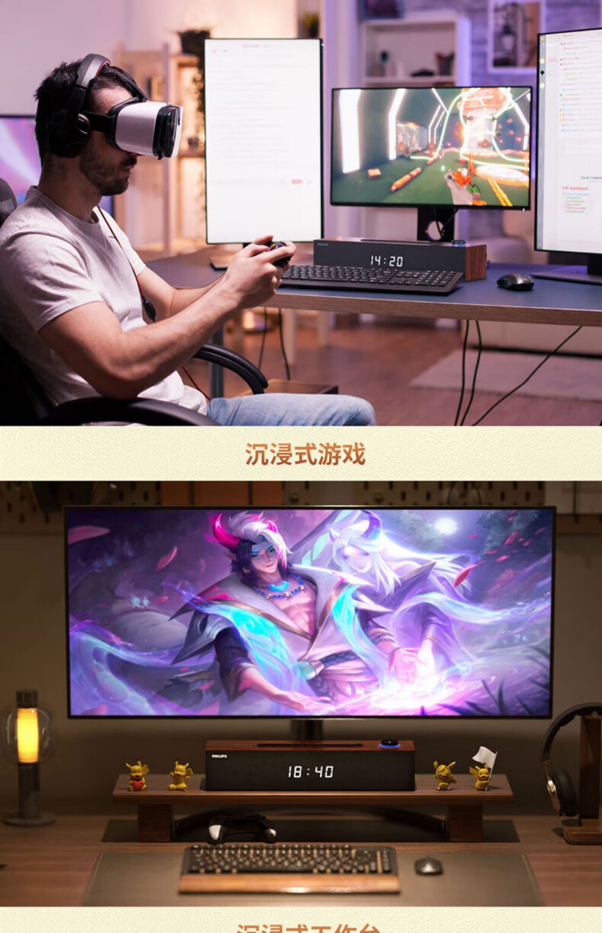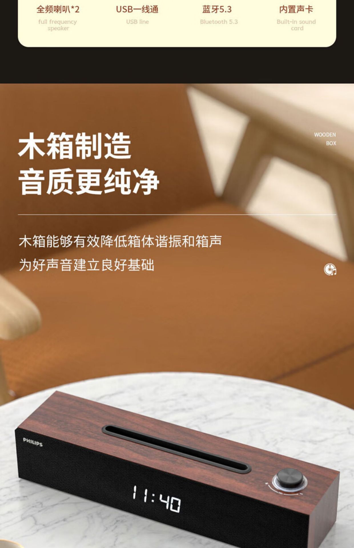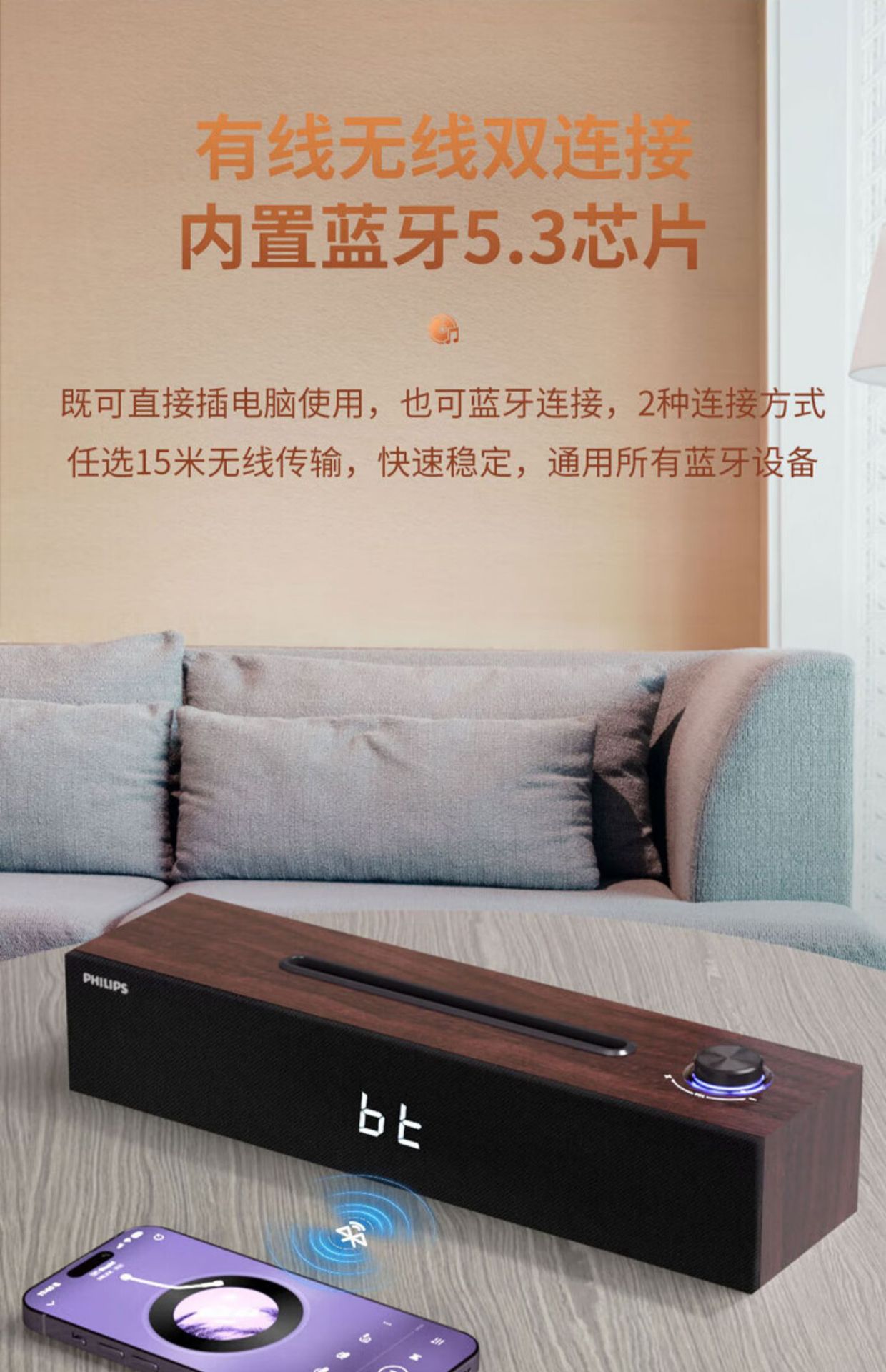 Philips SPA3809 wired Bluetooth dual-mode built-in sound card, drama and gaming speaker, wooden desktop speaker
