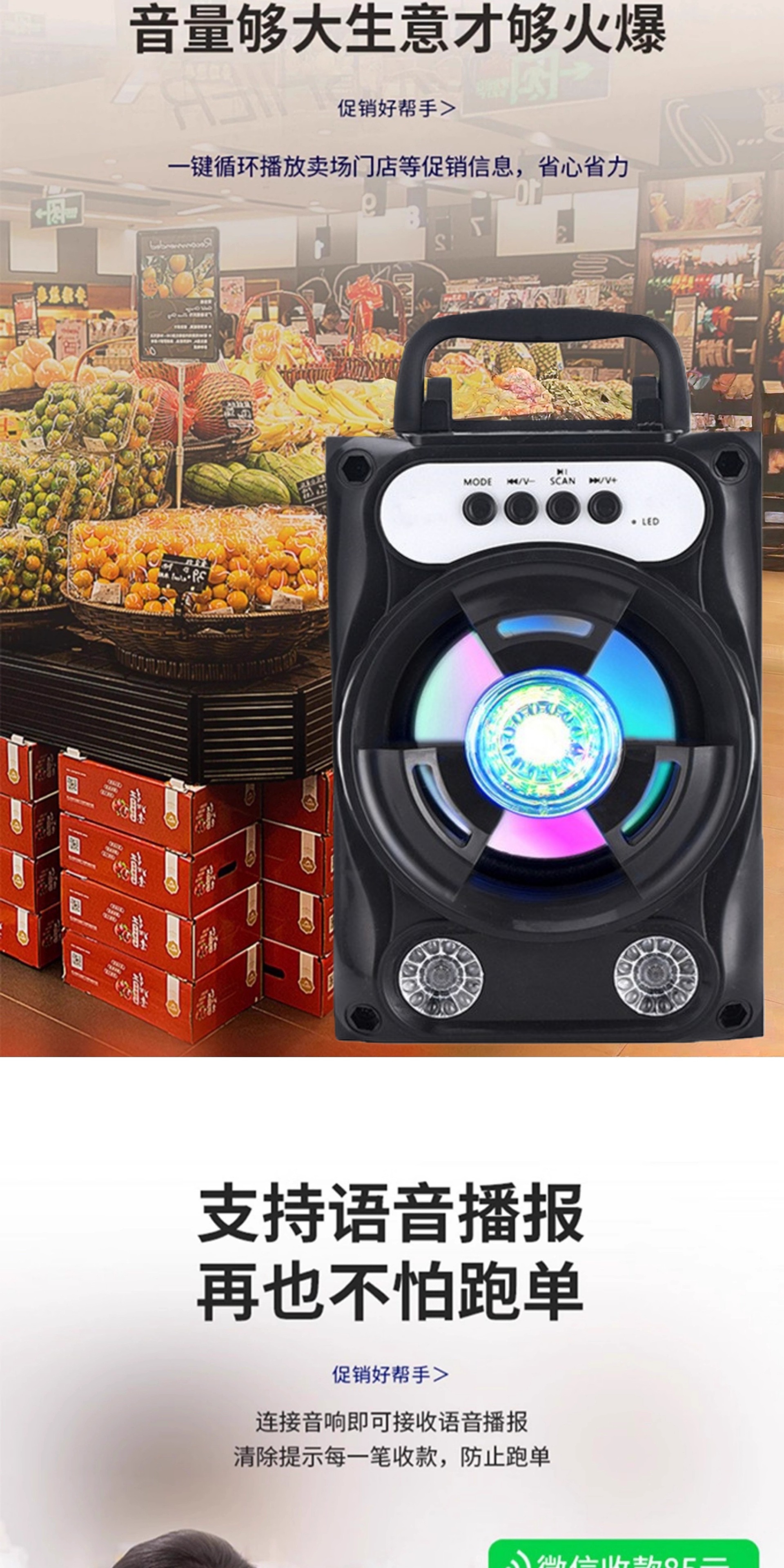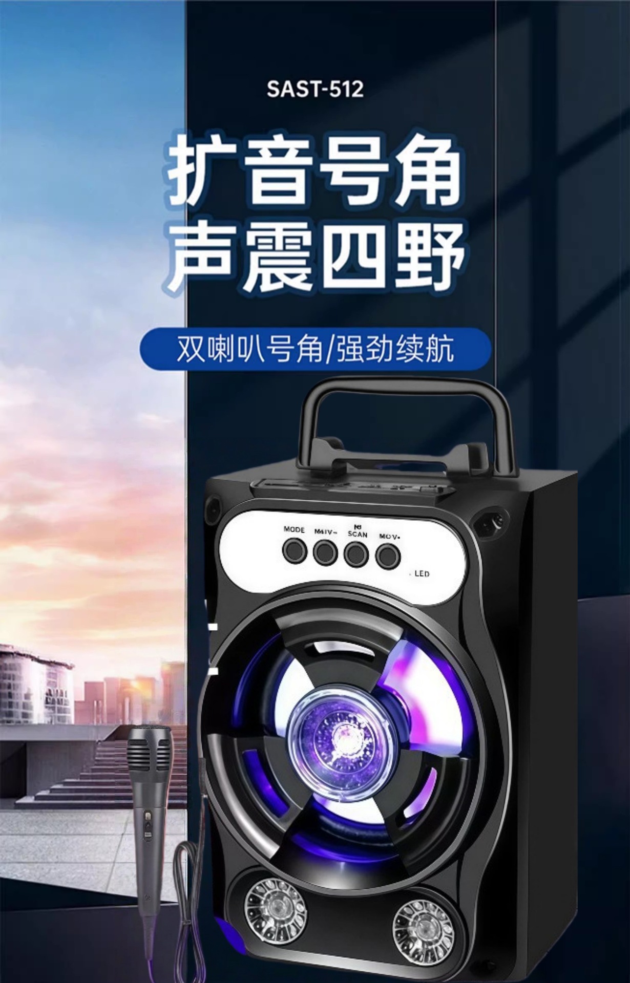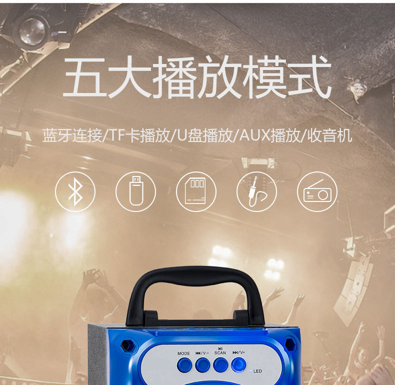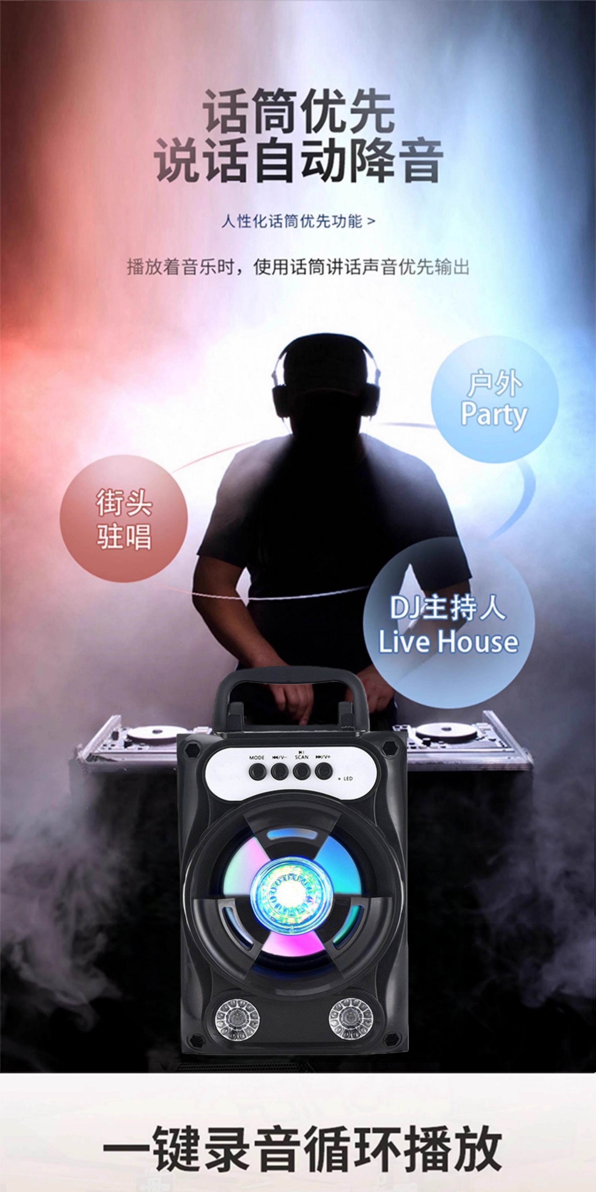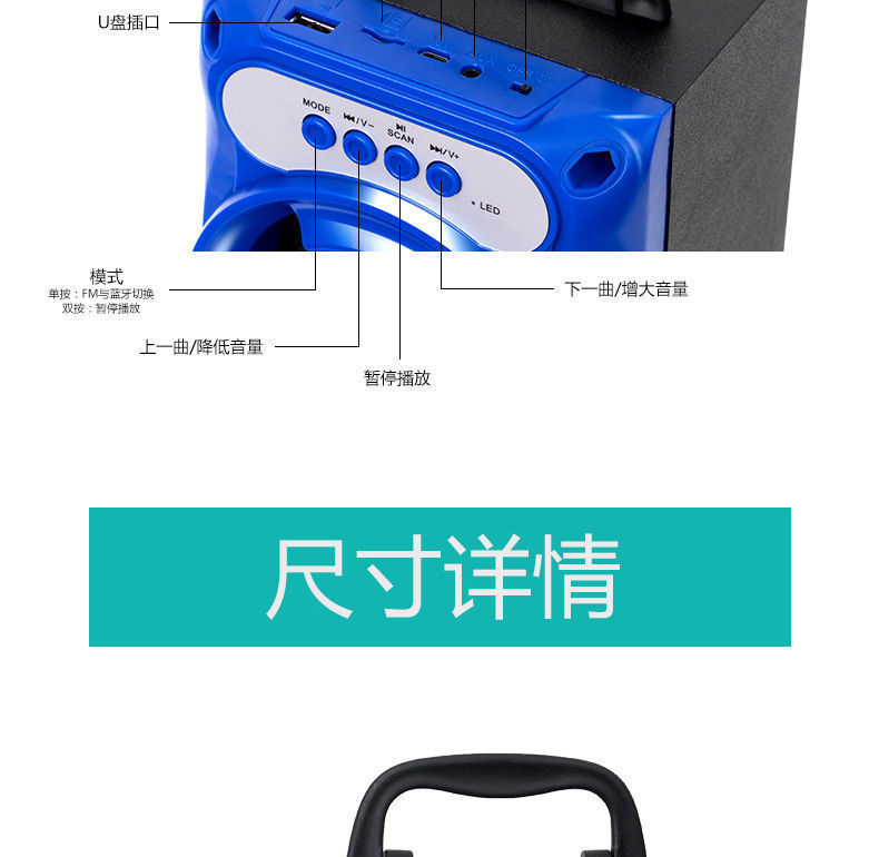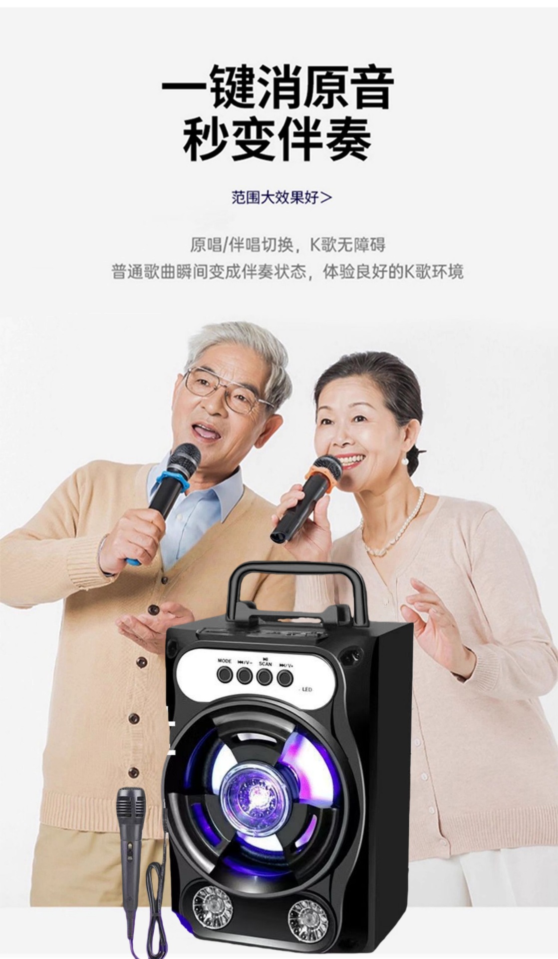 Cross border portable handheld wireless Bluetooth card insertion speaker, home KTV square dance outdoor karaoke Bluetooth speaker