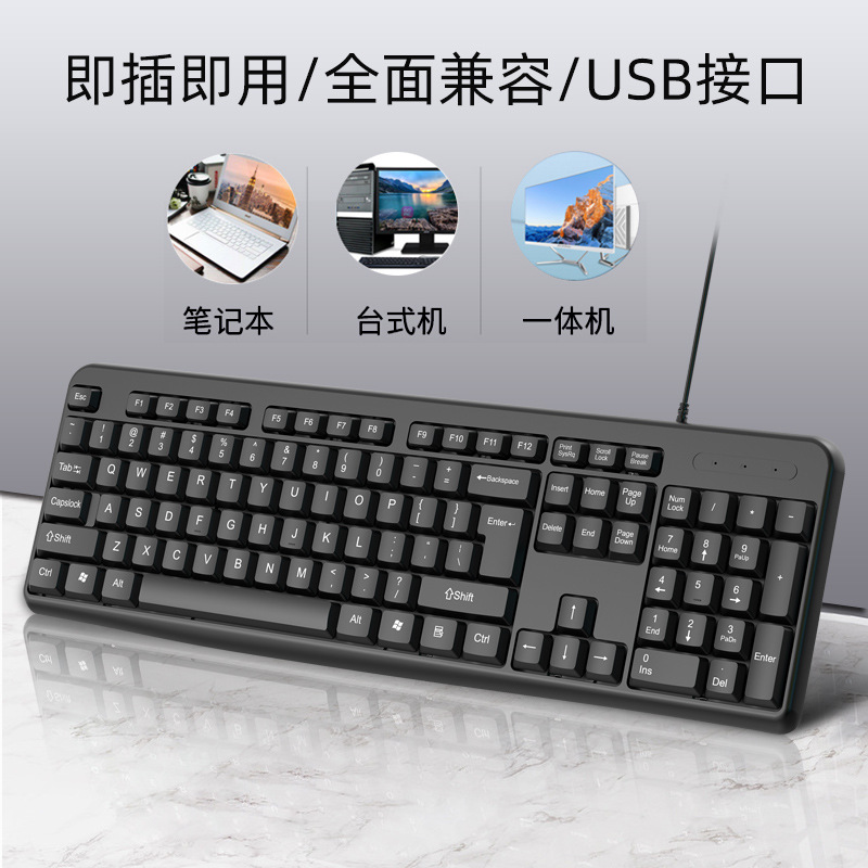 Manufacturer supplied wired keyboard suitable for business, office, home use, lightweight USB desktop computer accessories, keyboard cross-border