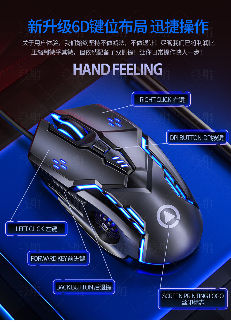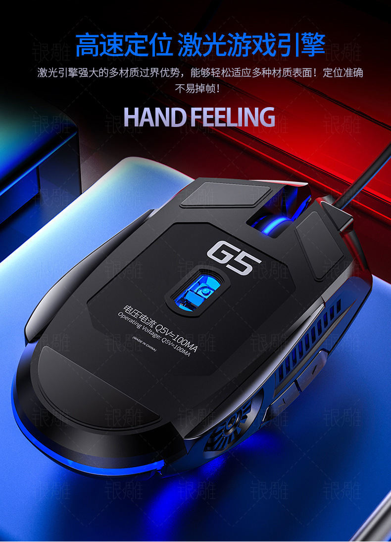 Silver Carving G5 Wired Mouse Light up Gaming Esports Machinery Silent Computer Accessories Cross border Private Model Amazon Wholesale