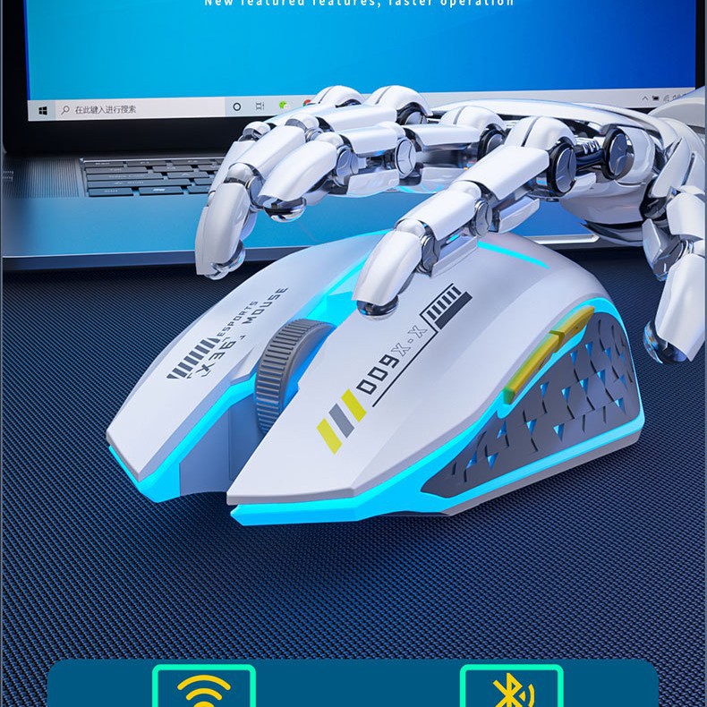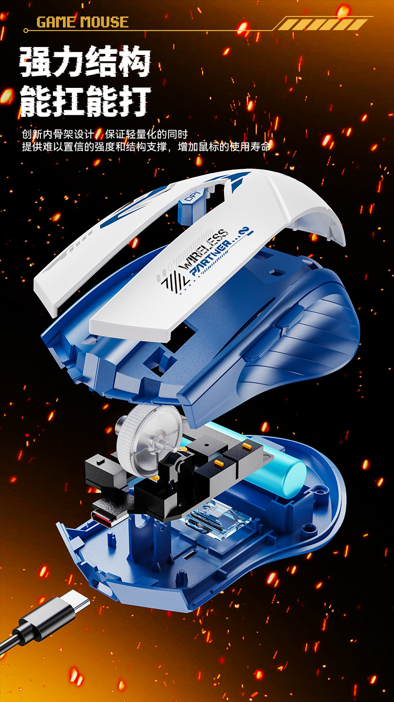 Wireless Mouse Charging Silent Bluetooth Dual Mode Type-C Colorful Crack Light up Gaming Mouse Notebook Accessories