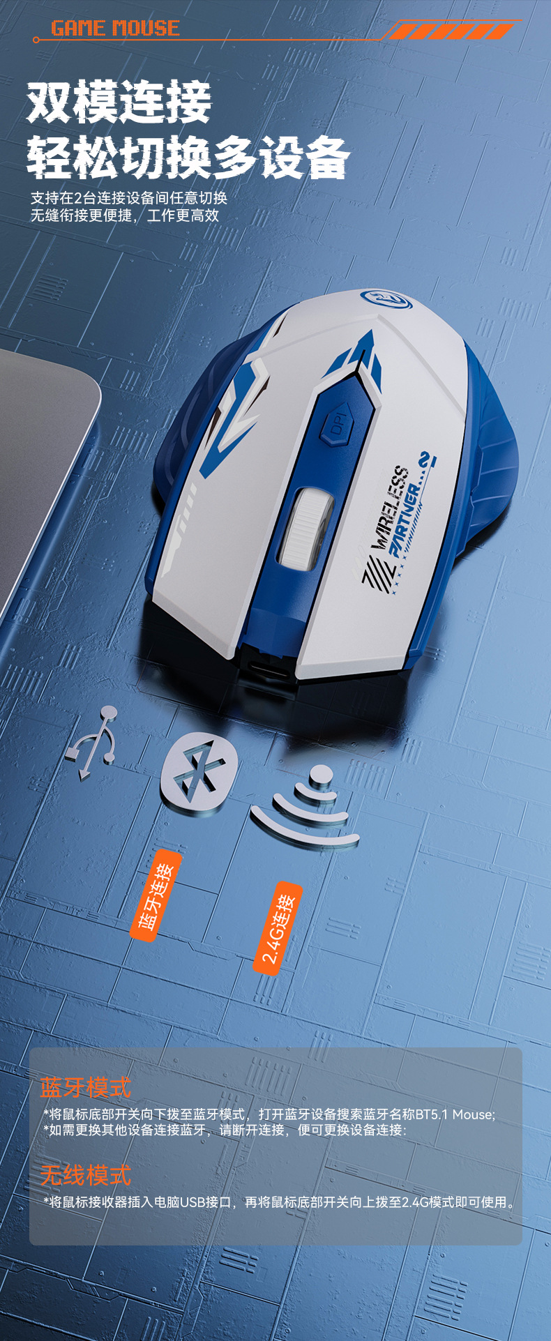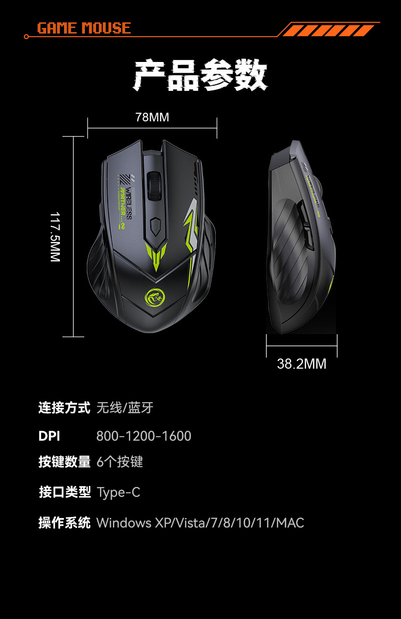 | Connection method with computer | 2.4G+Bluetooth |