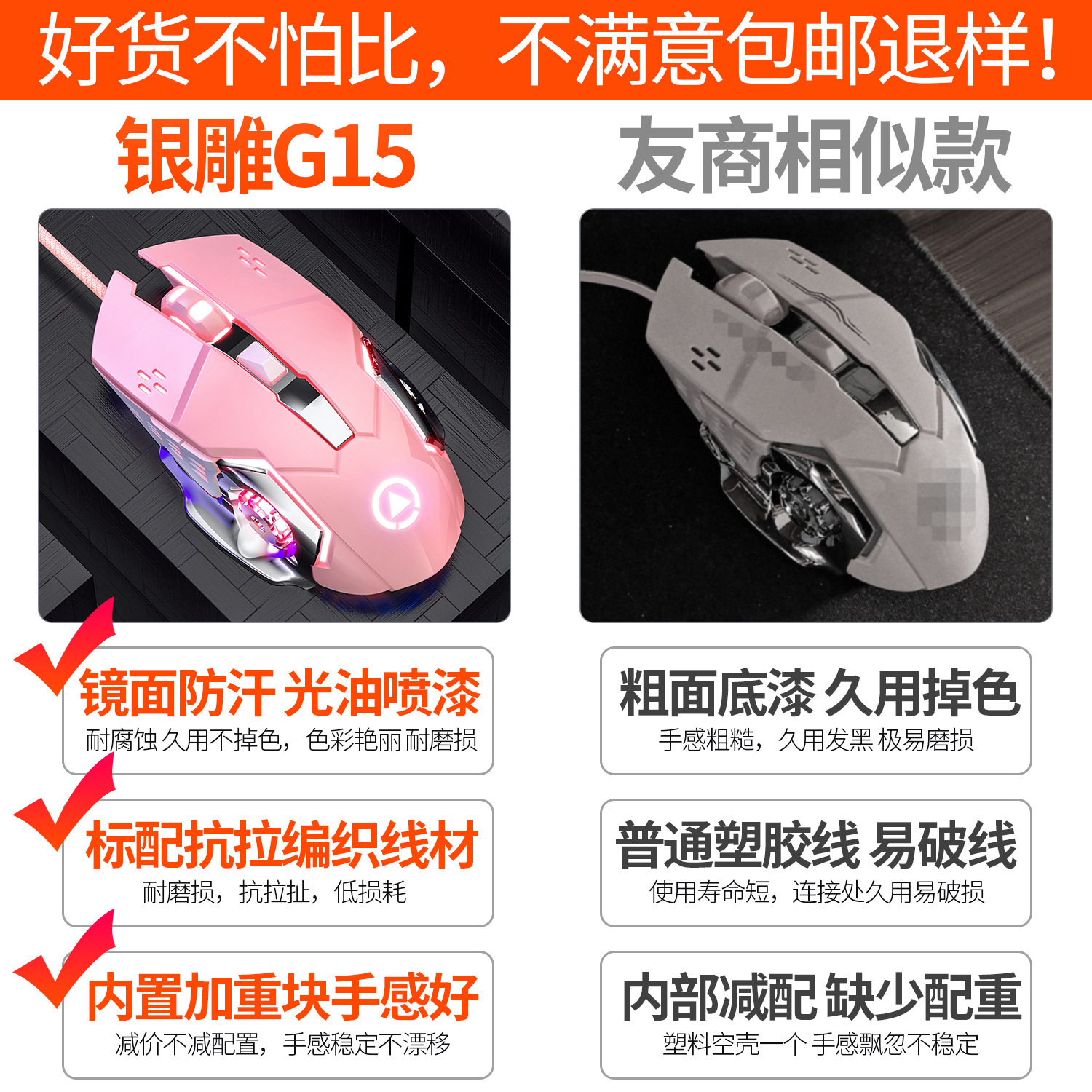 Silver Carving G15 Mechanical Game USB Wired Mouse Mute Luminous Mouse Computer Accessories Amazon Cross border Wholesale
