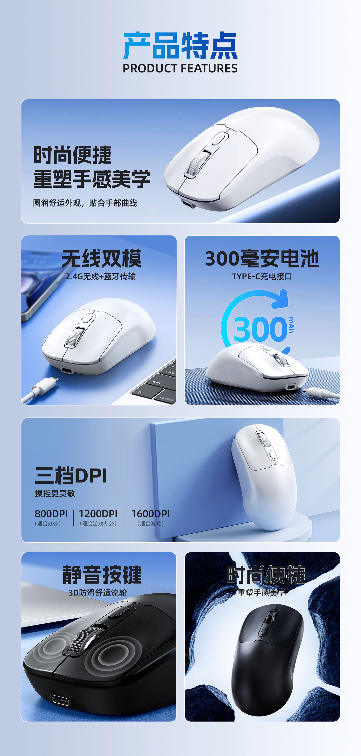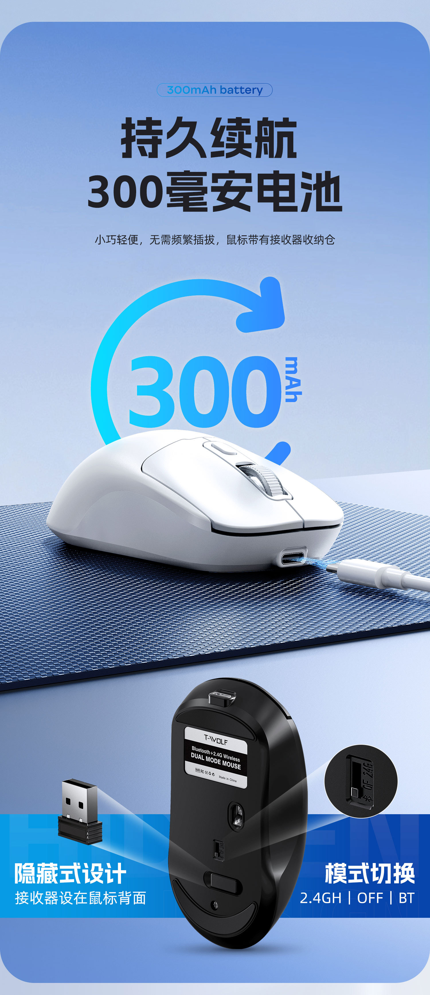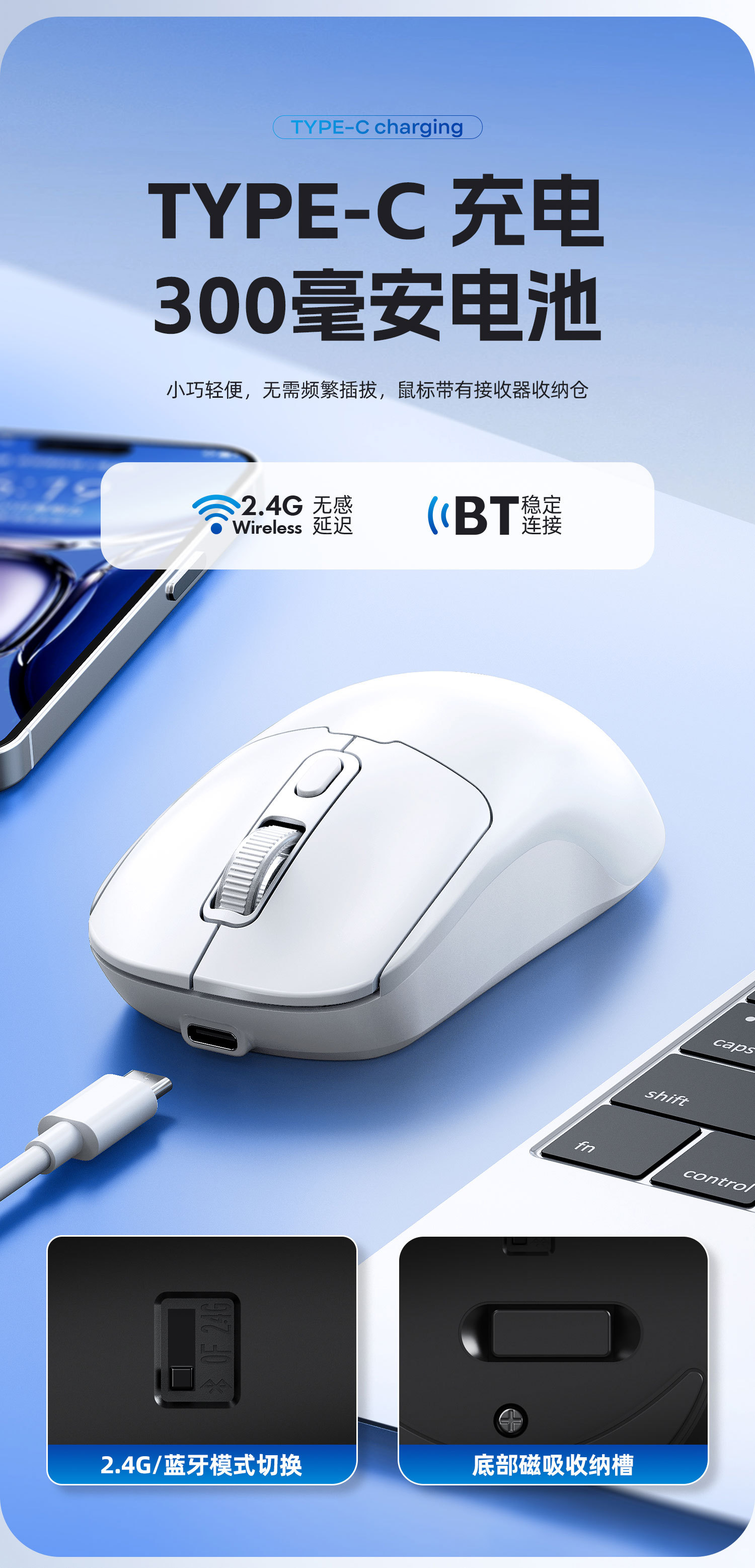 | Connection method with computer | 2.4G+Bluetooth |