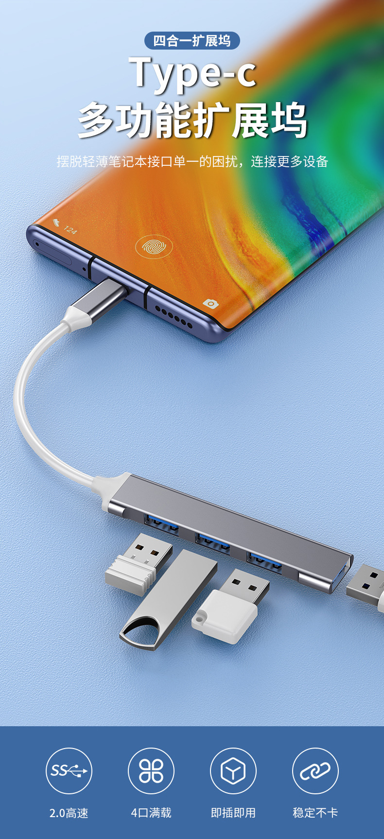 Расширенный док Typec Extender HUB концентратор с адаптером USB для ноутбука Apple Huawei