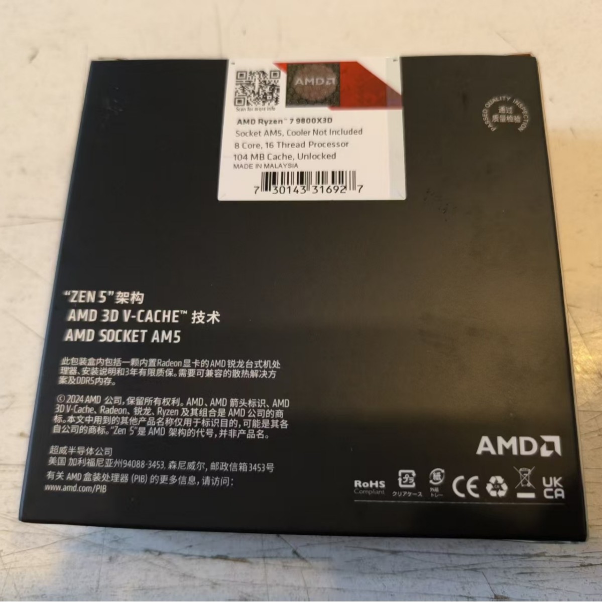 AMD锐龙R7 9800X3D盒装台式处理器CPU处理器 8核16线程适用X870