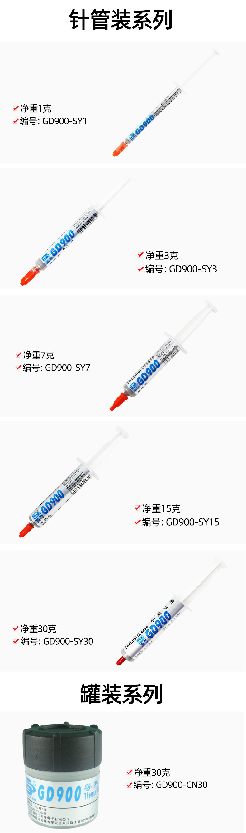 High conductivity net weight 1/3/7/15/30g GD900 computer CPU/GPU thermal grease heat dissipation silicone paste SY/CN