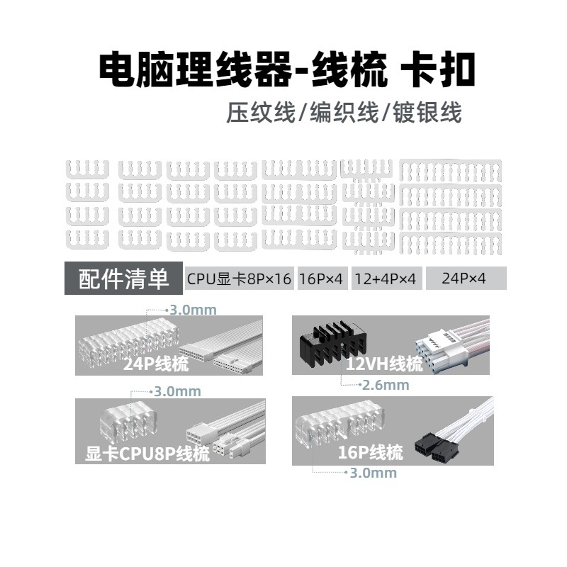 电脑电源模组理线梳 主板24PIN理线器CPU显卡线夹8PIN排线束线器