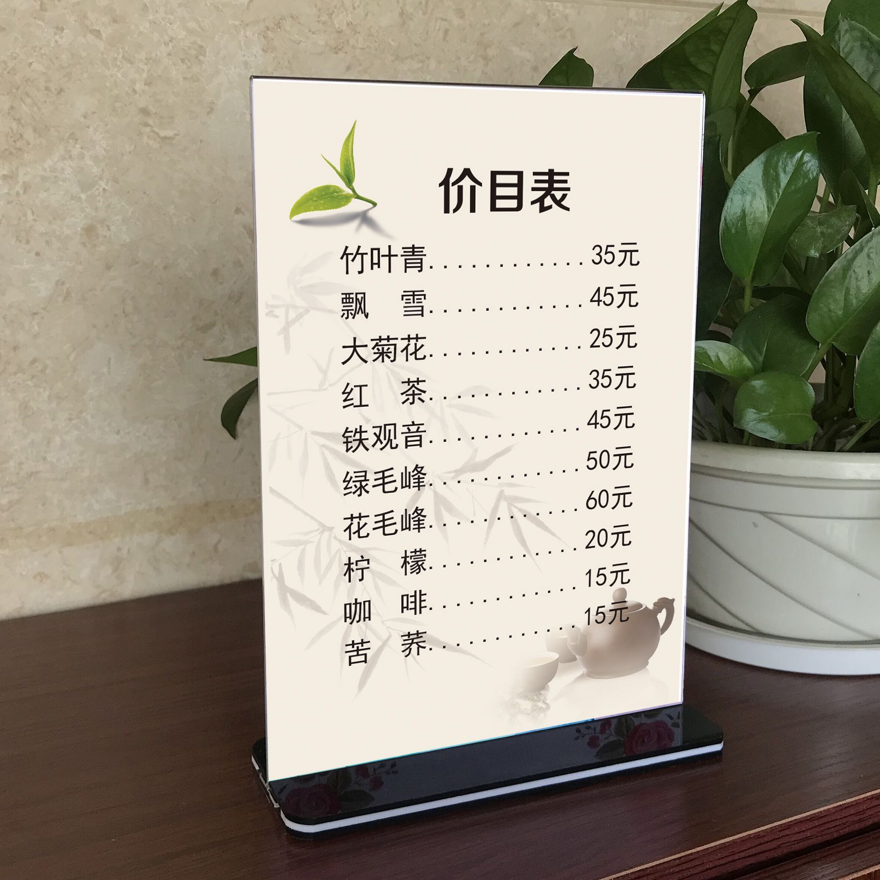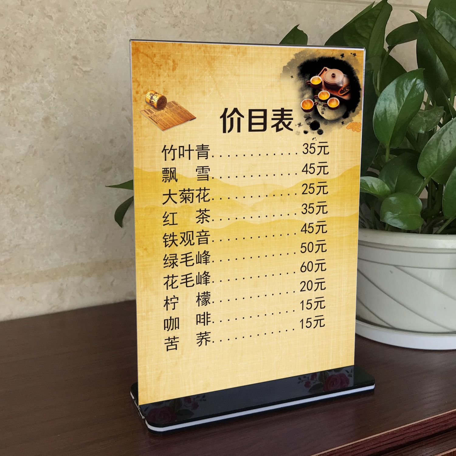 钉制设计酒店茶楼价目表桌牌茶吧菜单台卡茶叶馆酒水价格表台牌