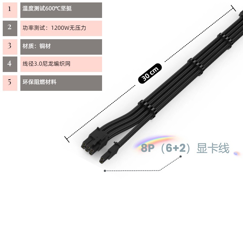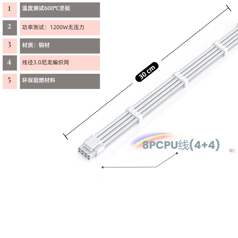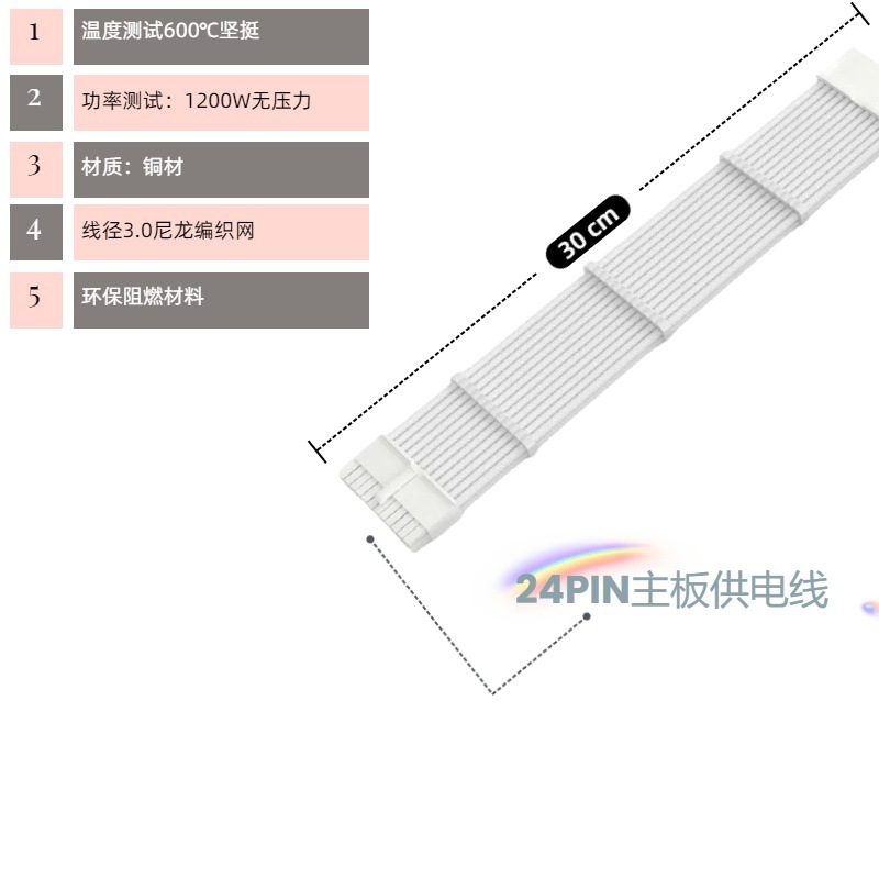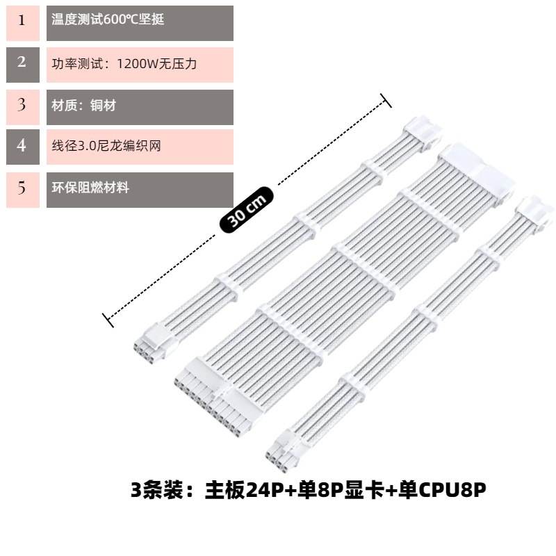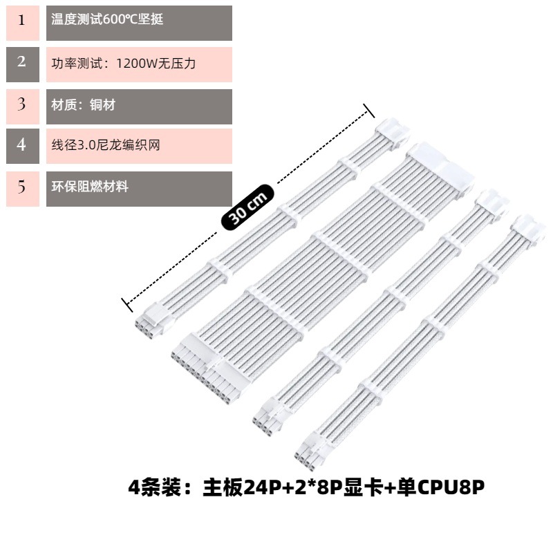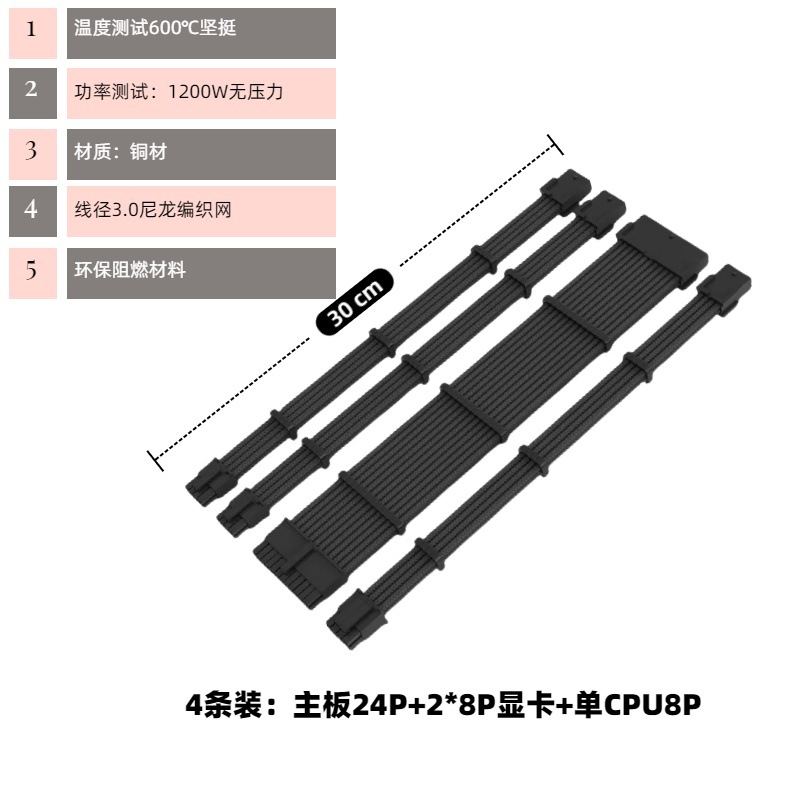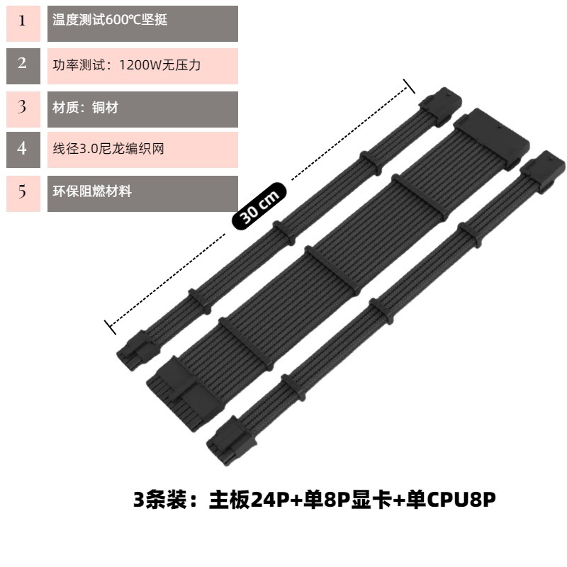 电脑主机机箱主板套餐延长线整理走线24P CPU8P 显卡8P黑白编织线