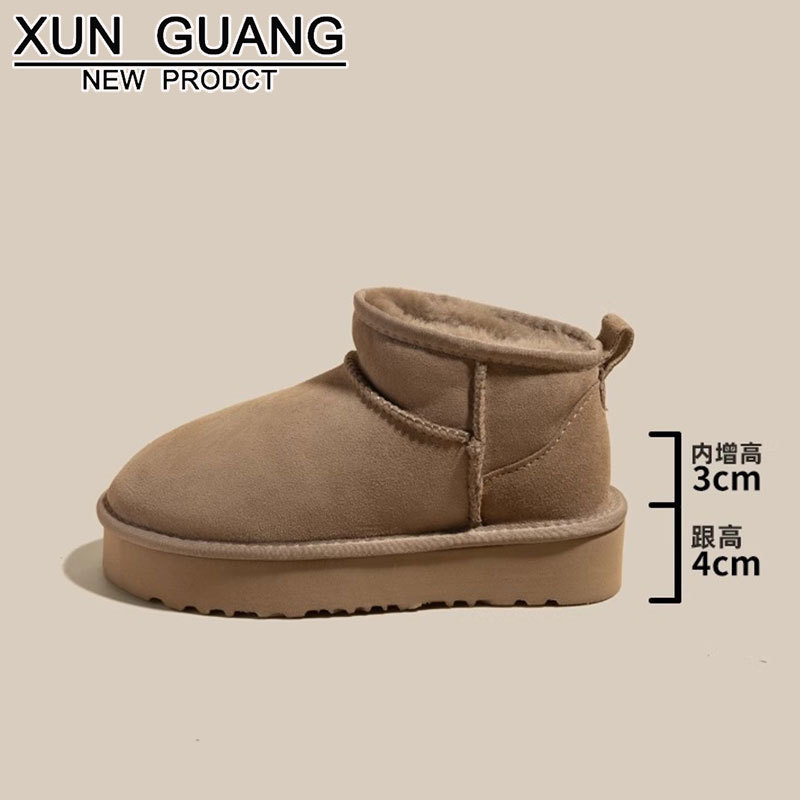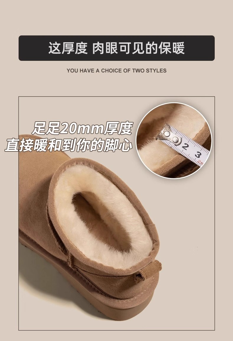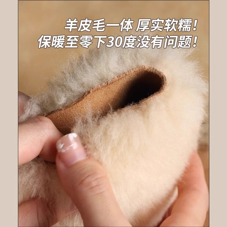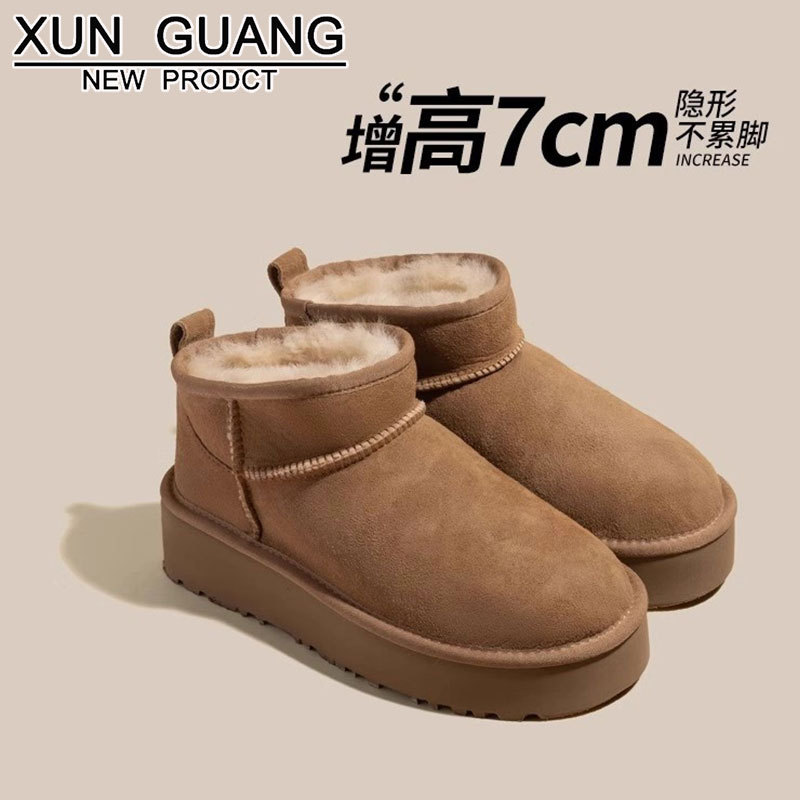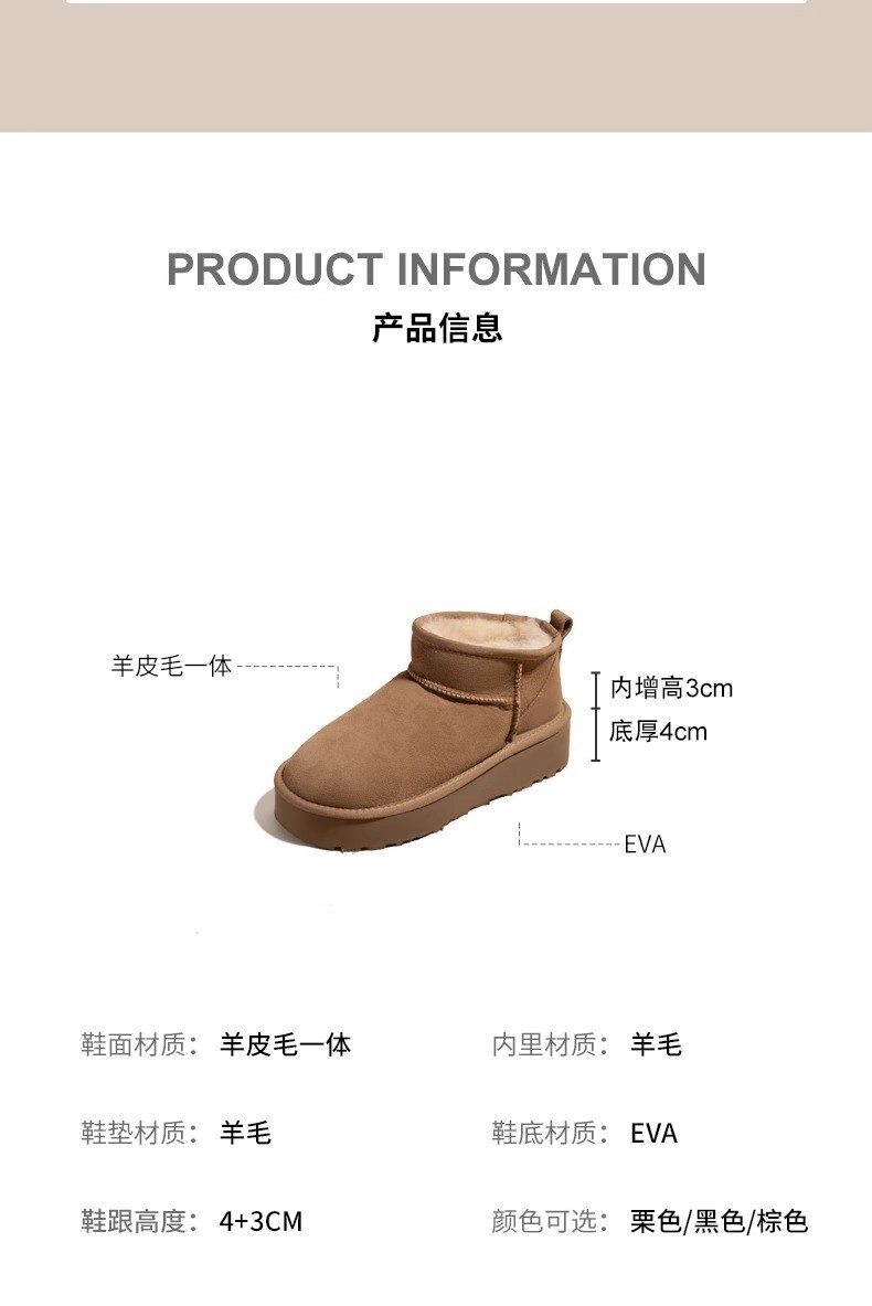 Real fur integrated thick soled snow boots for women, winter new style, with added velvet, thickened waterproof short tube, and increased height cotton shoes inside