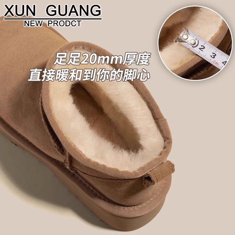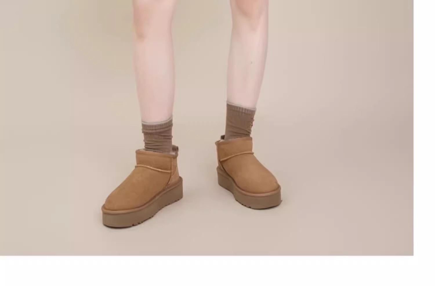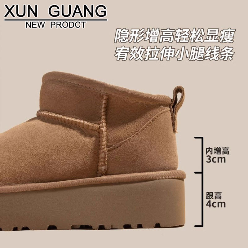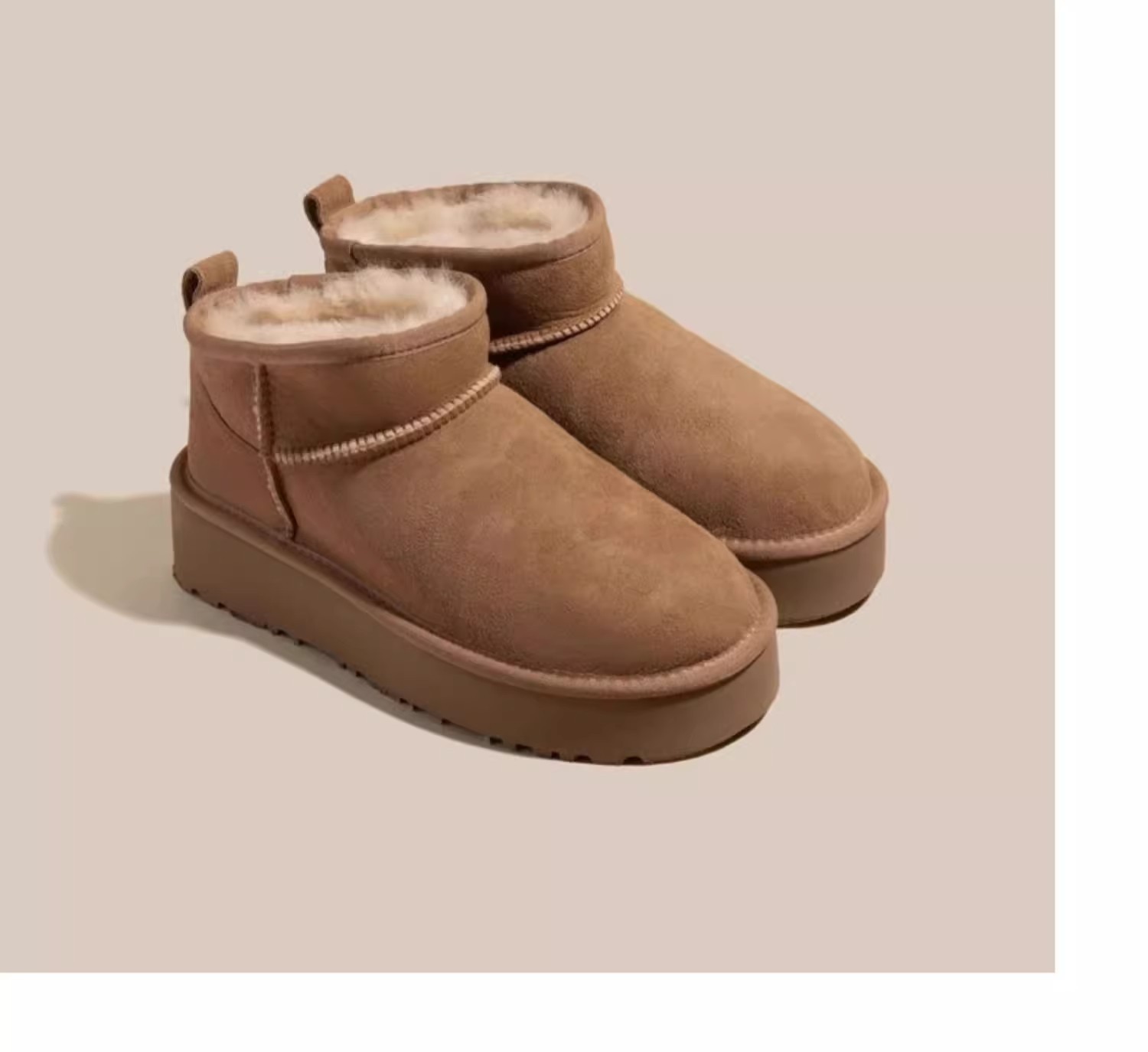 Real fur integrated thick soled snow boots for women, winter new style, with added velvet, thickened waterproof short tube, and increased height cotton shoes inside