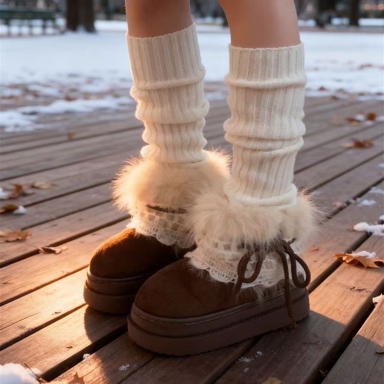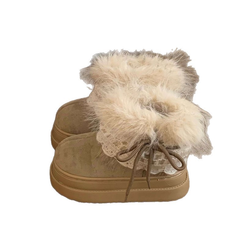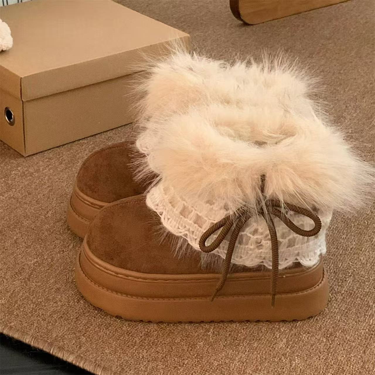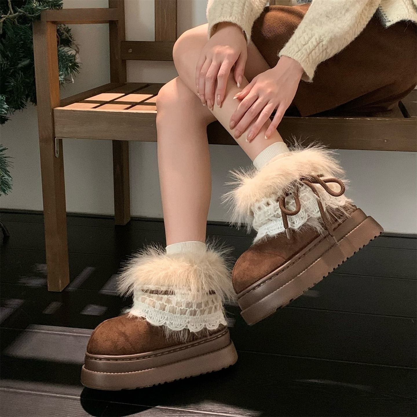Колесо кружева с бархатом, чтобы согреть короткие сапоги, зима 2025 Новый ретро - рост, противоскользящие волосатые снежные сапоги