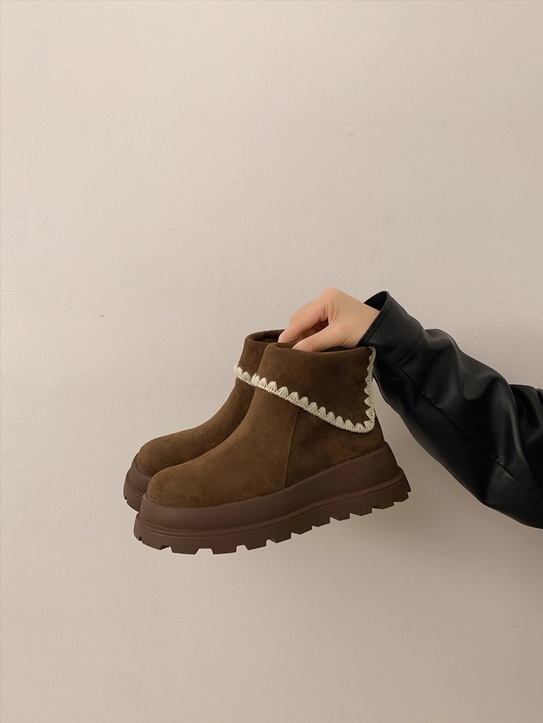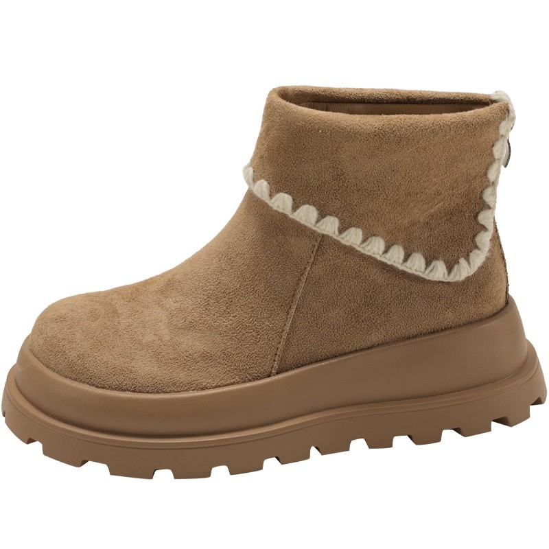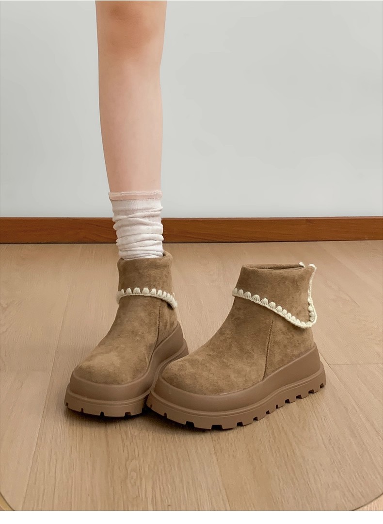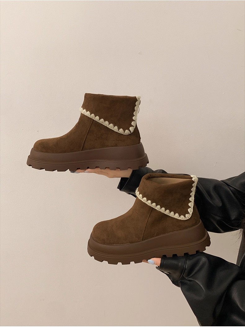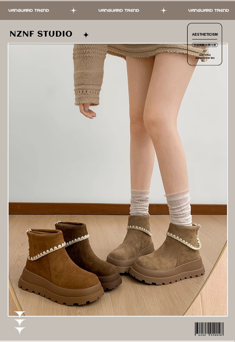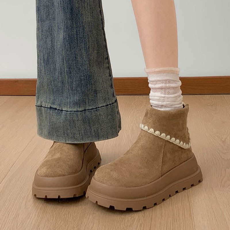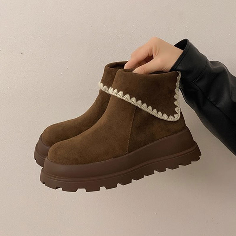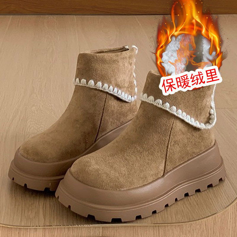 Туфли с толстым дном, высокие снежные сапоги, короткие женские сапоги, зимние плюшевые и теплые 2025 новые хлопчатобумажные туфли