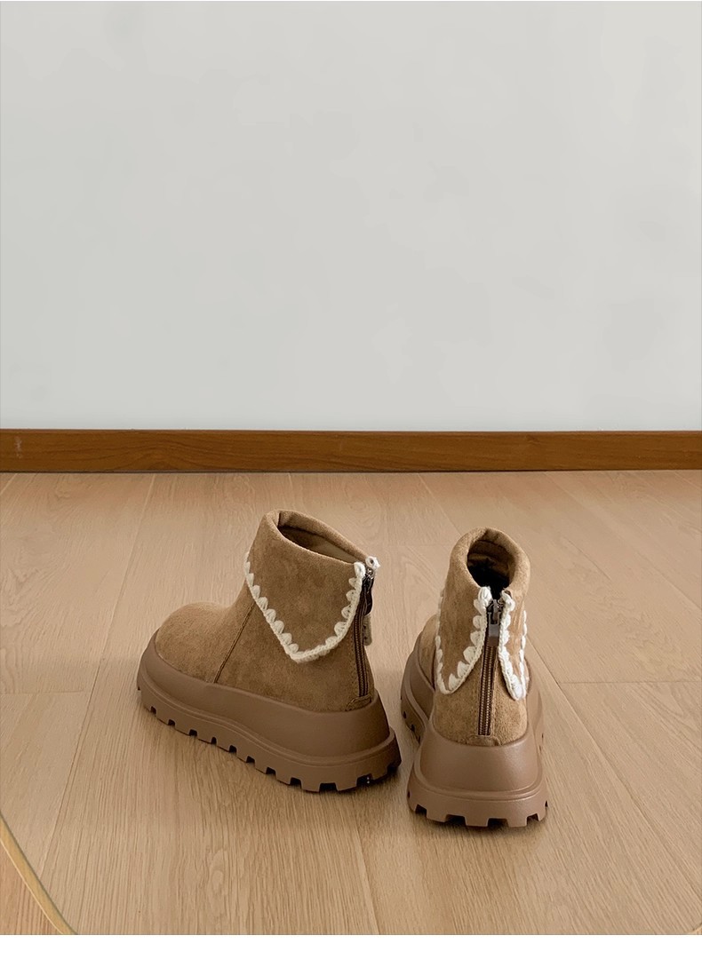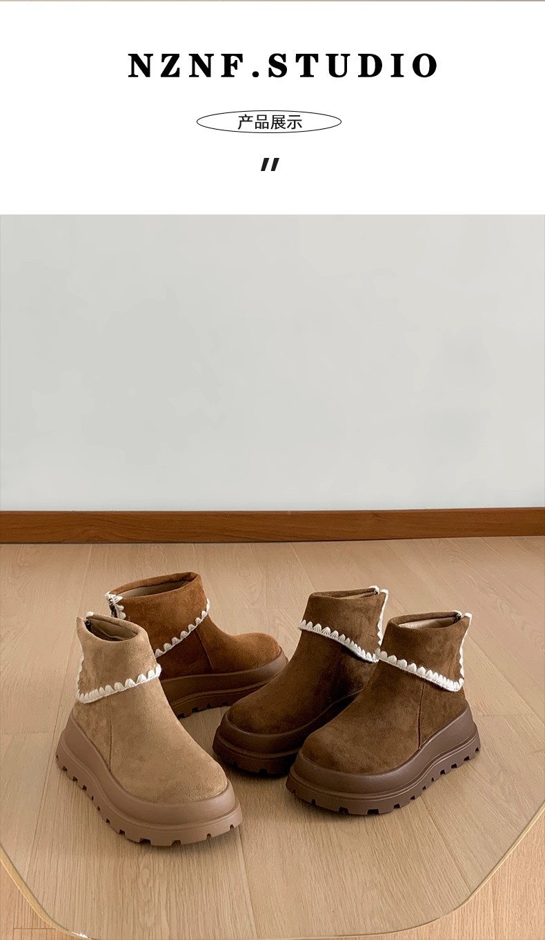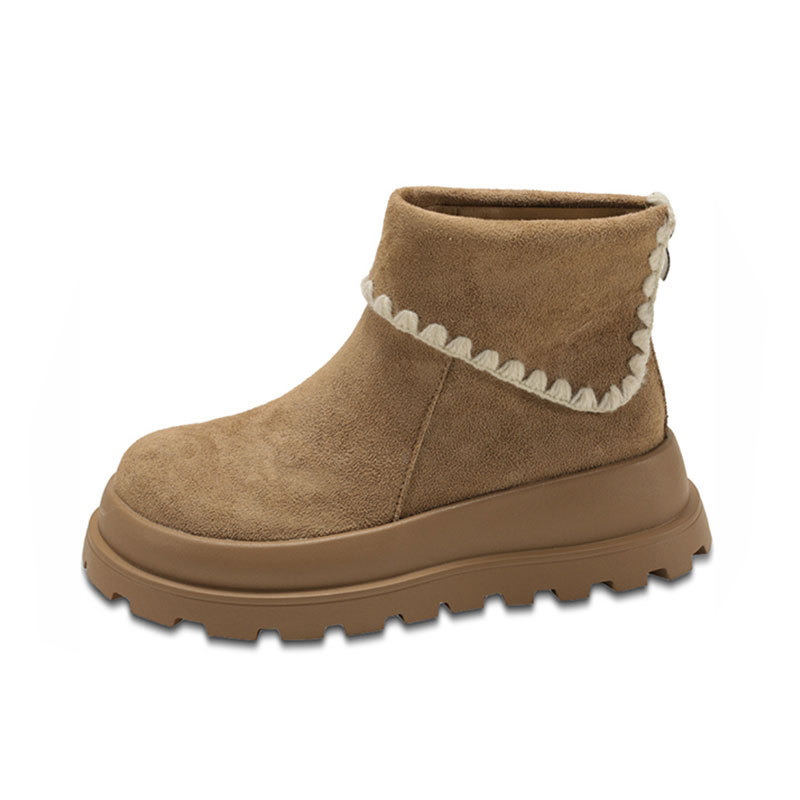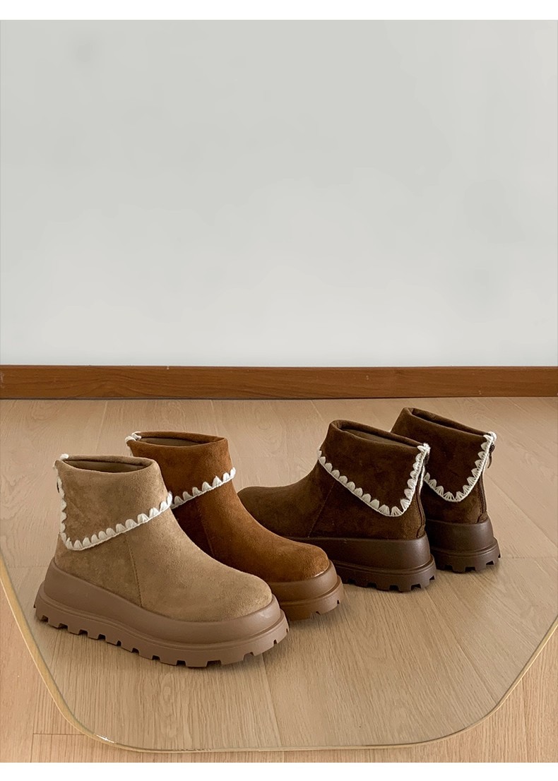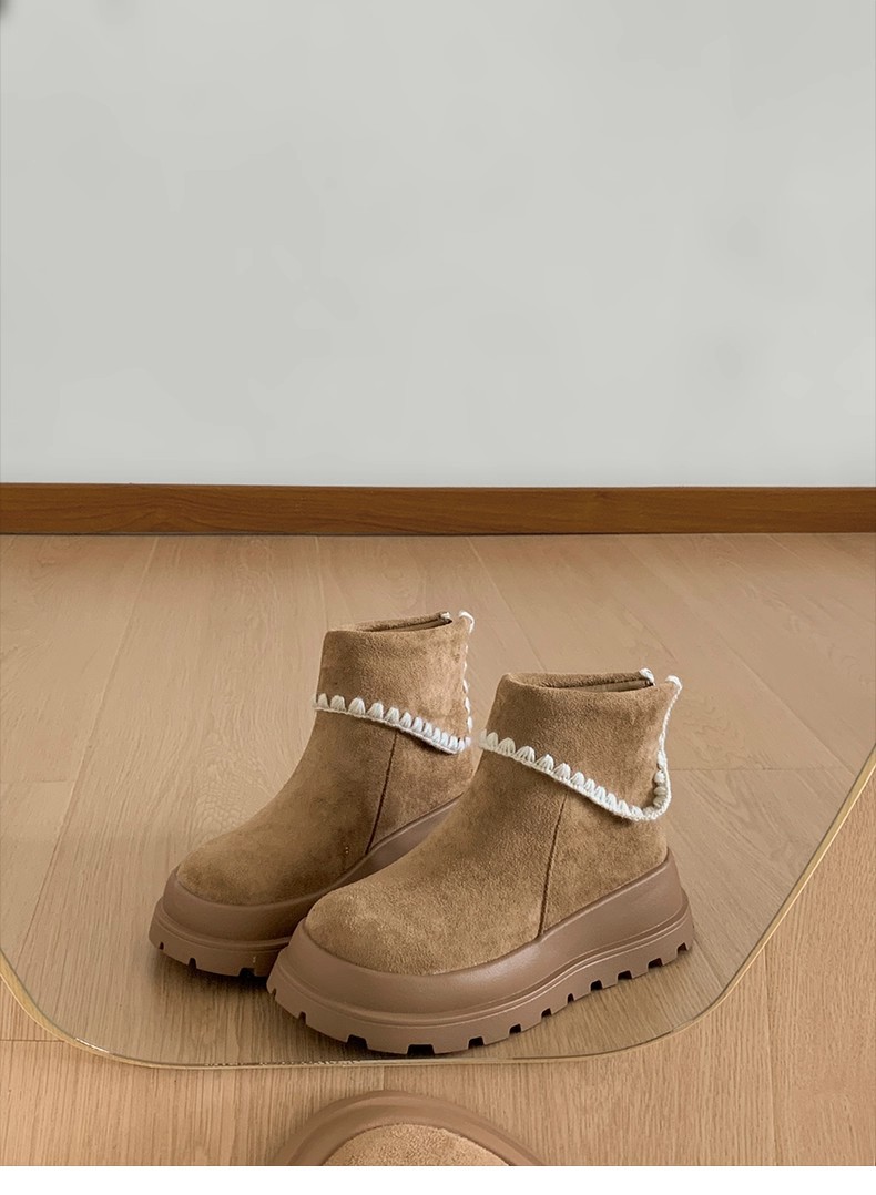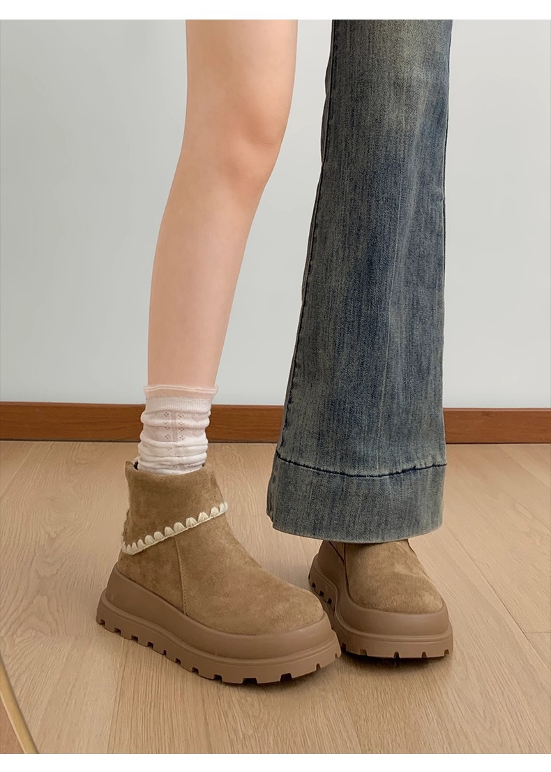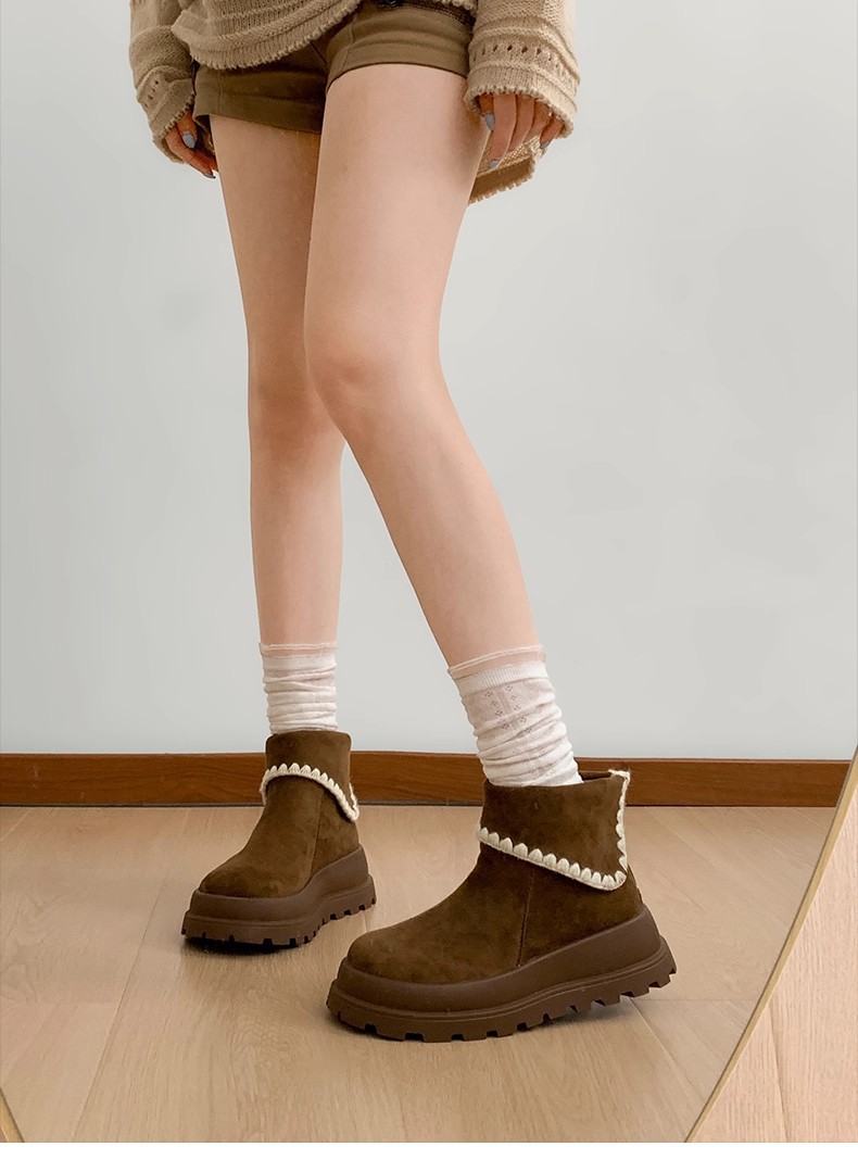 Туфли с толстым дном, высокие снежные сапоги, короткие женские сапоги, зимние плюшевые и теплые 2025 новые хлопчатобумажные туфли