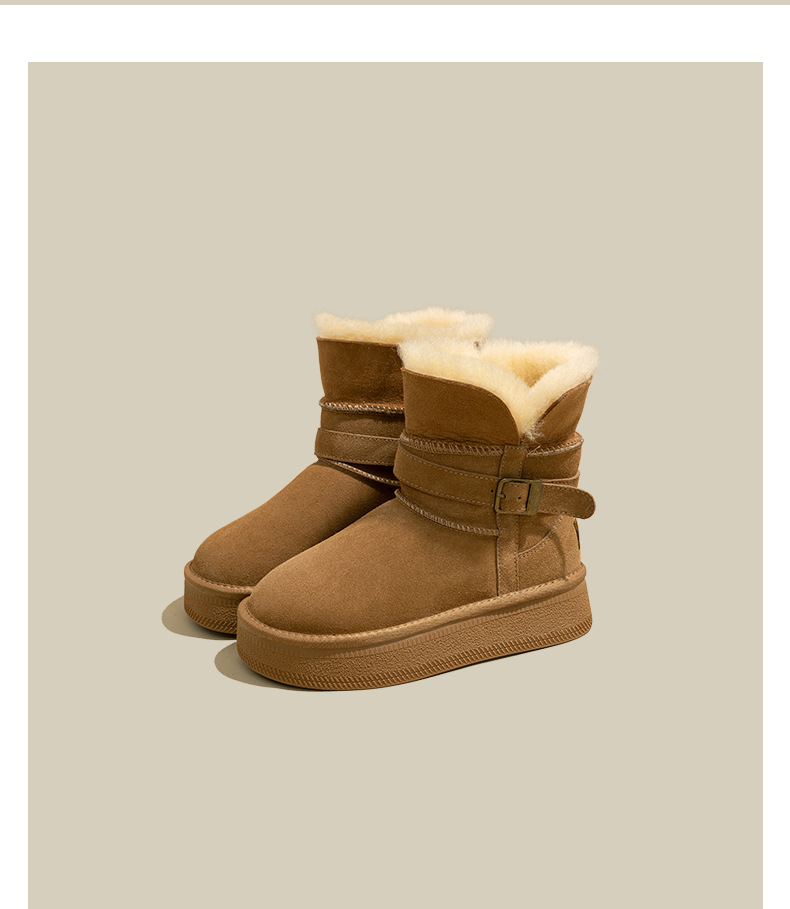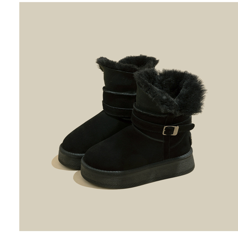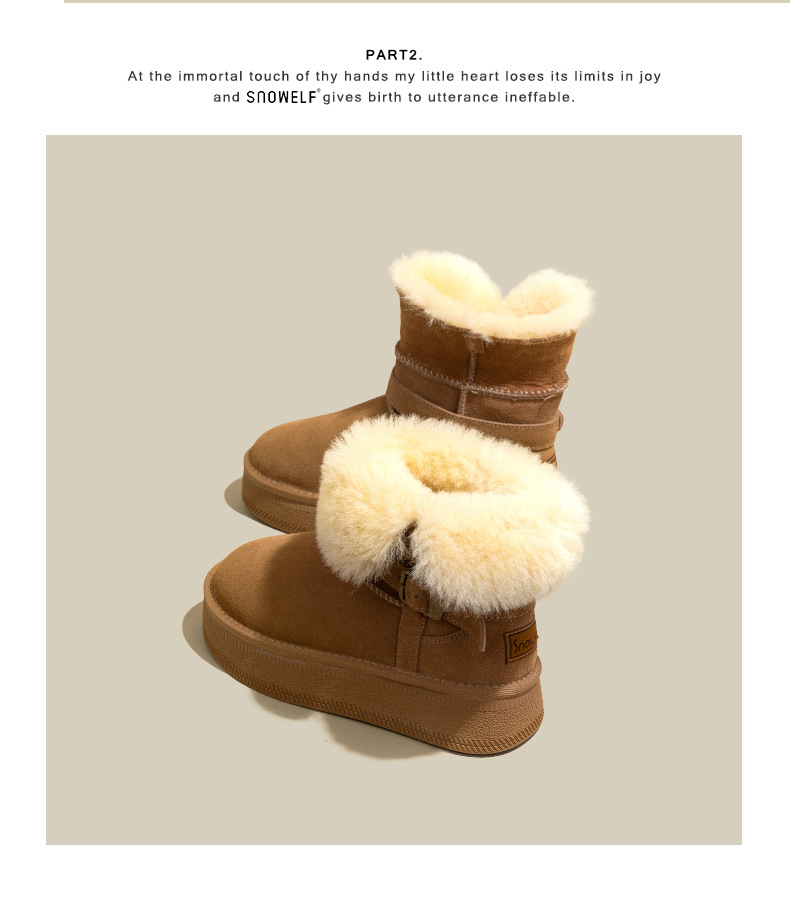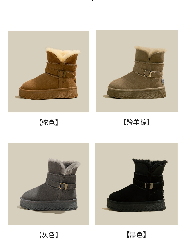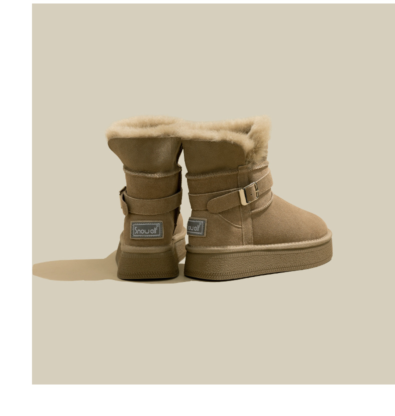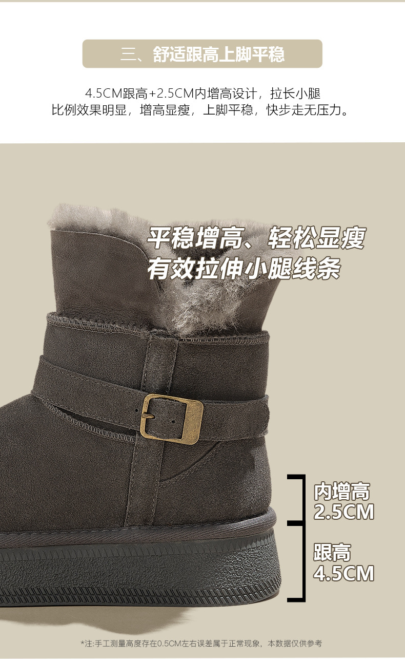 Warm flip over and plush thick soled midsole snow boots for women, height increasing 2025 winter new leather and plush thick cotton shoes