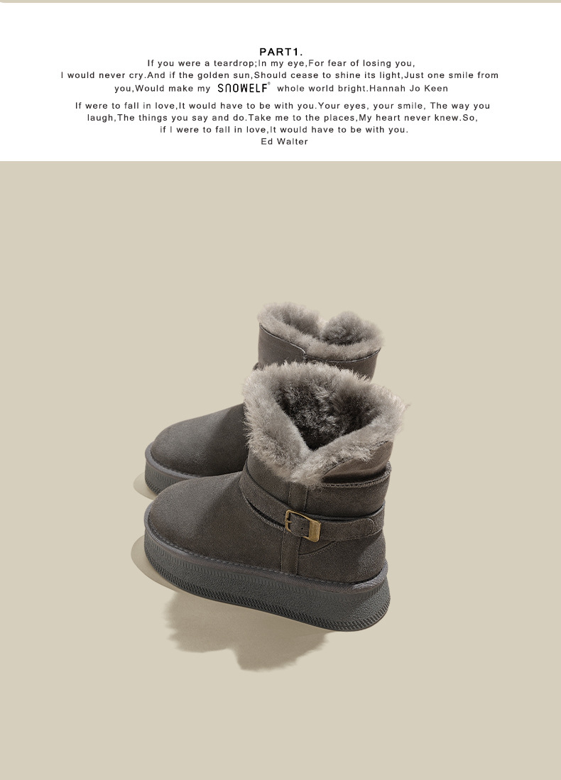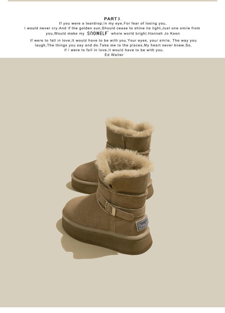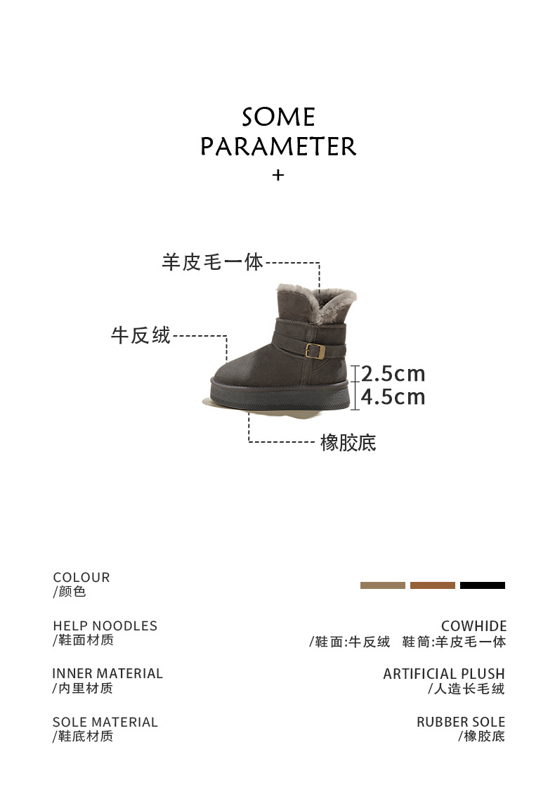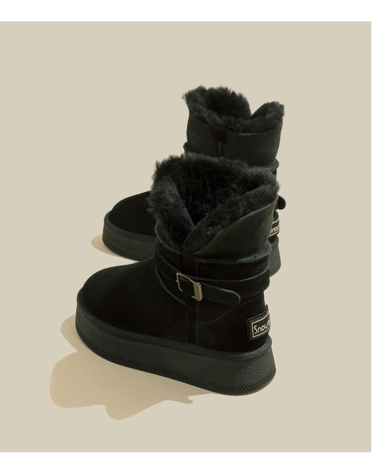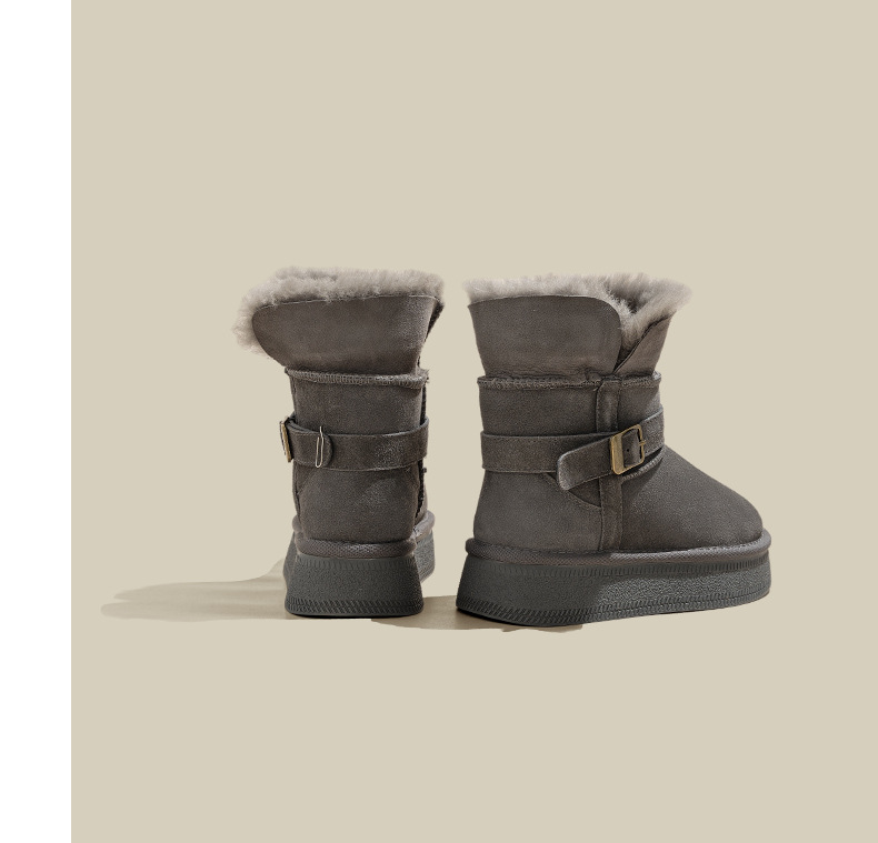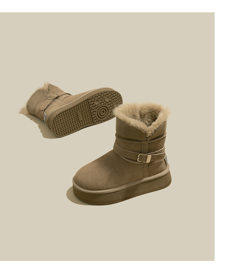 Warm flip over and plush thick soled midsole snow boots for women, height increasing 2025 winter new leather and plush thick cotton shoes