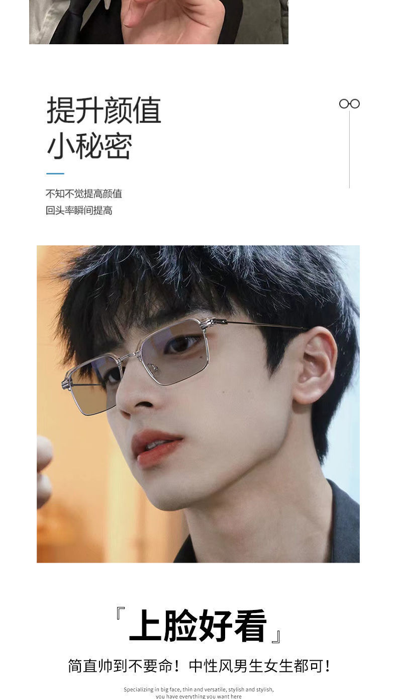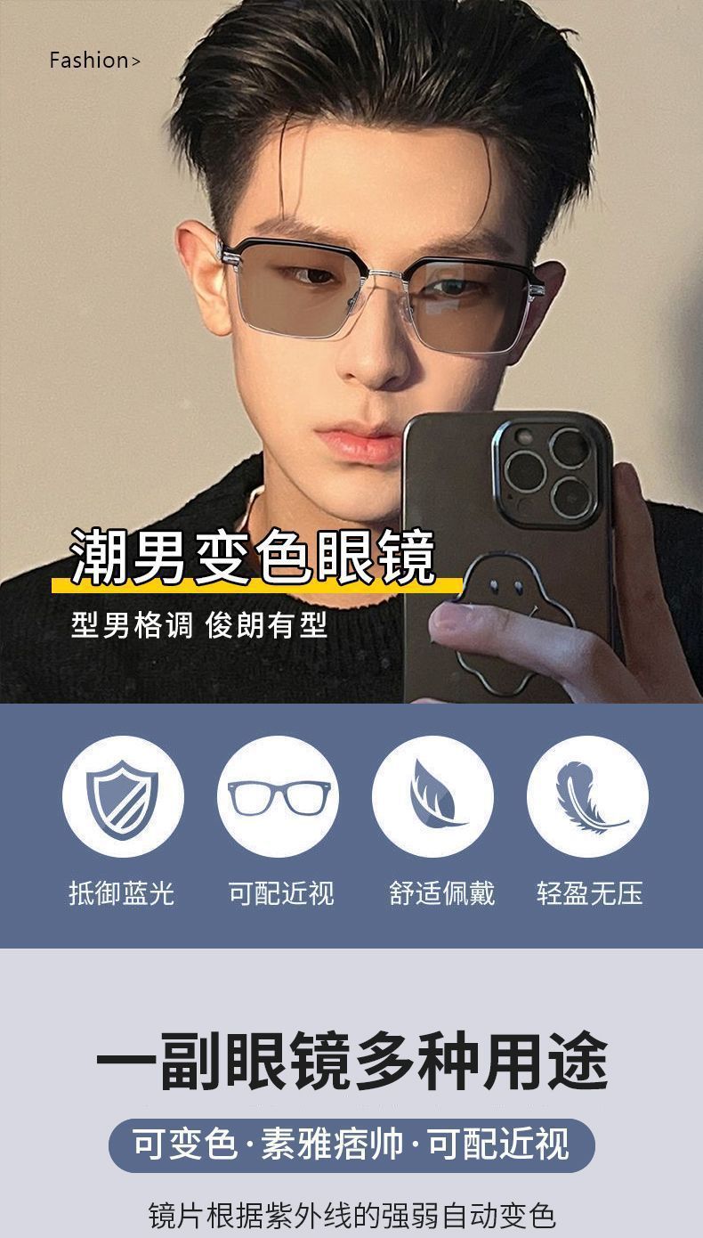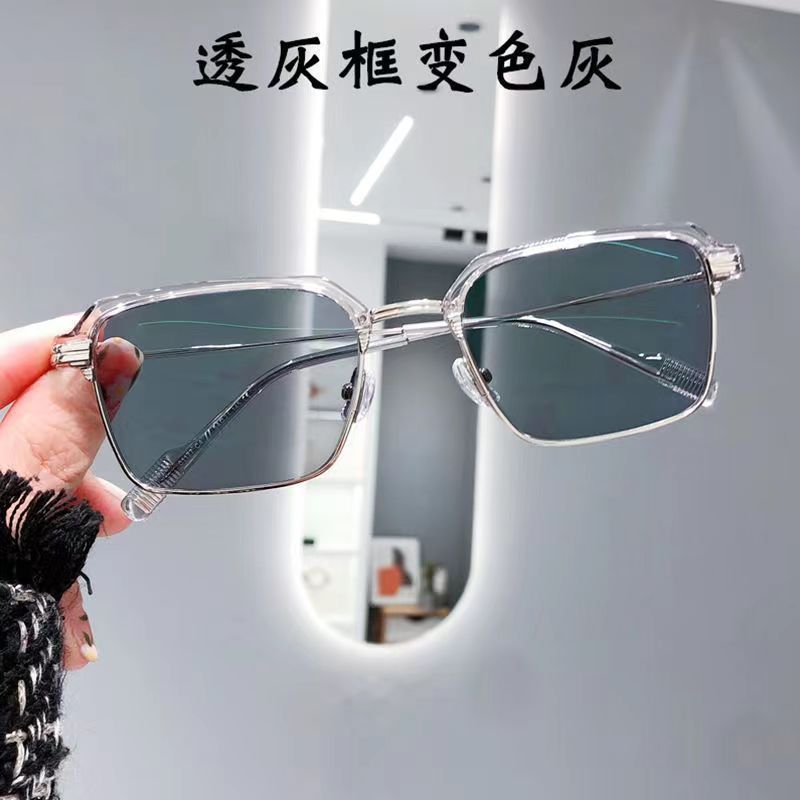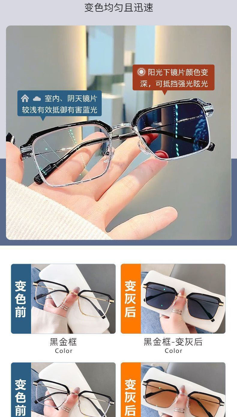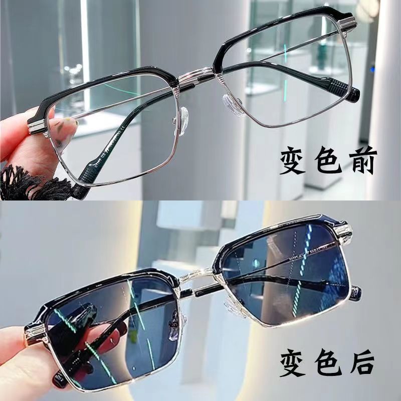 Advanced photosensitive color changing myopia glasses, anti blue light box sunshade, high-end fashion business high-definition flat sunglasses